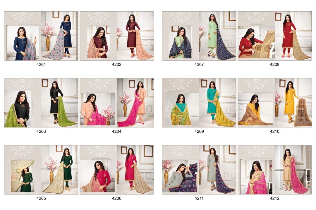 Buy Online Rr Fashion Swarovski 4201 Series Fancy Salwar Kameez Dealer 12 Pcs of Full Catalogue at Wholesale Price. Looking for Rr Fashion Swarovski 4201 Series Fancy Salwar Kameez Dealer Full Catalouge at Best Price? Buy Now Rr Fashion Swarovski 4201 Series Fancy Salwar Kameez Dealer at Wholesale Rate of Rs 10740 with Total 12 Pcs from authroized dealer and supplier of RR fashion Brand. Cost of Each piece is just only Rs 895 which is very low and affordable price to resale the product in your retail store ,This is Surat based Wholesale Supplier & Dealer of RR fashion Brand. Click on Brand name to Know more about RR fashion Brand's products.Call or Whatsapp on 9898838984 for booking or enquiry