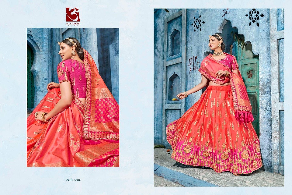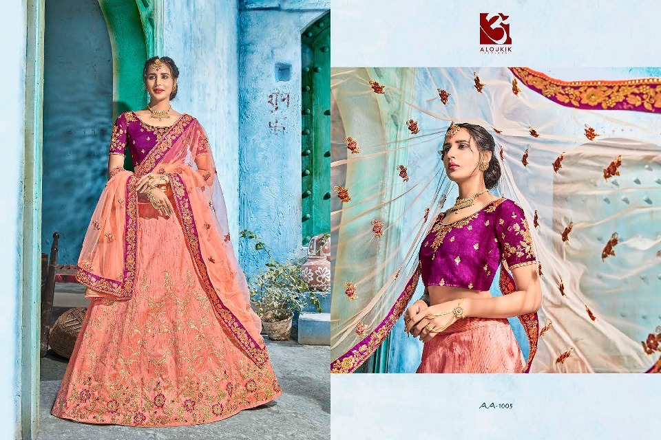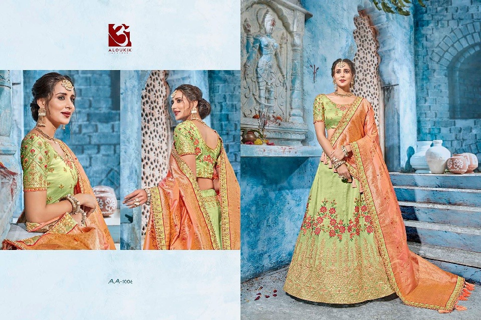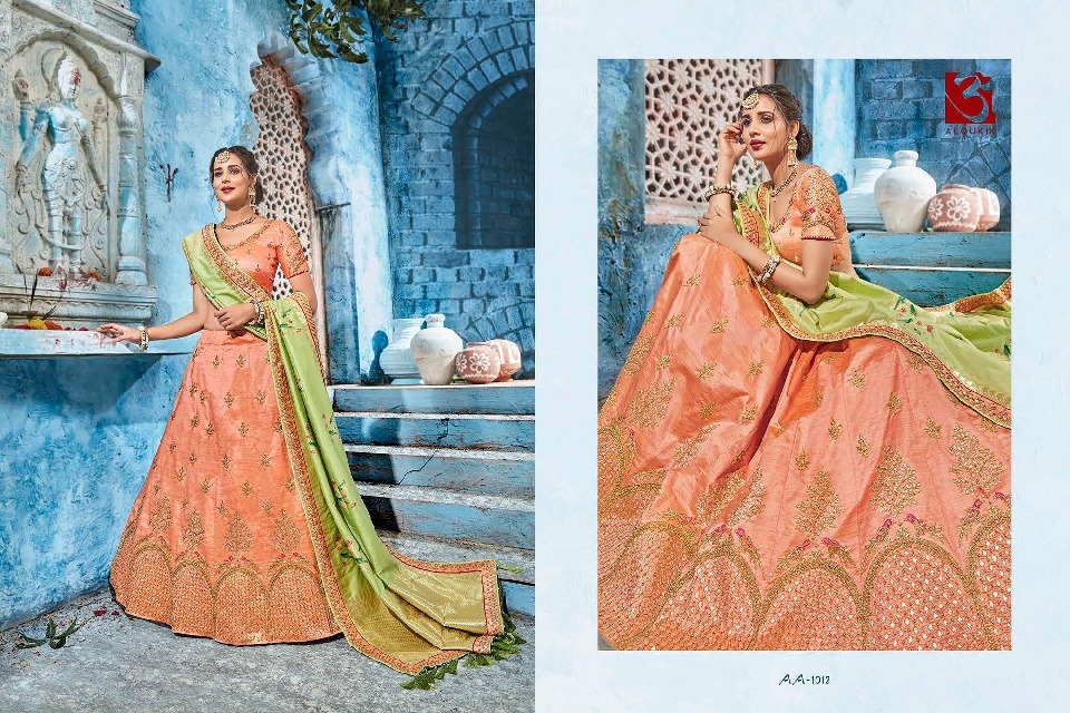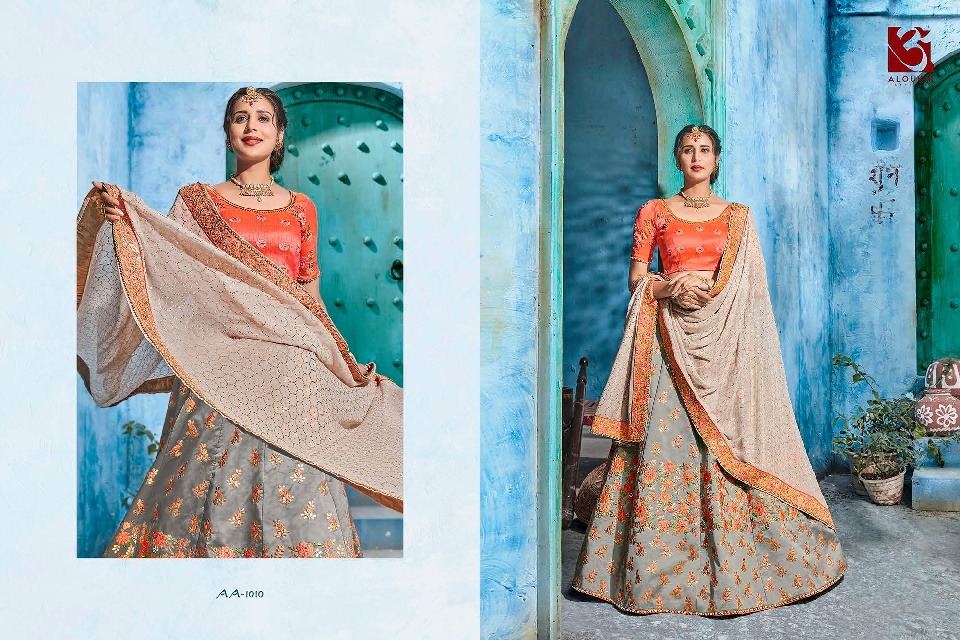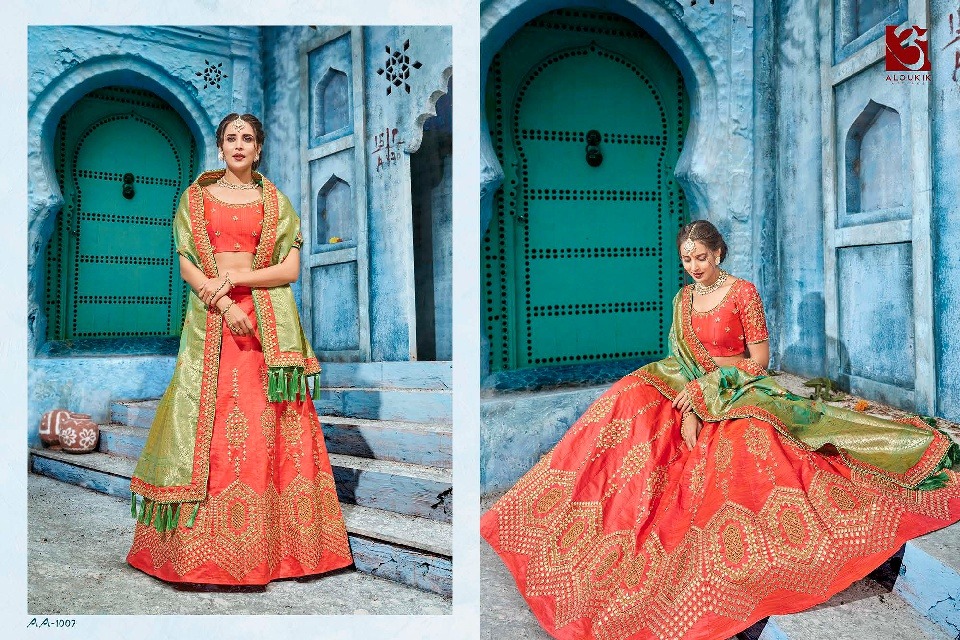 Brand- ALOUKIK. Type - Lehnega . Series -AA 1001 to AA 1012 Set & Loose . GST 12 Percent Extra. Delivery 4-5 days Singles and multipal available Book now For SingleÂ?s price call or whatsapp on +919898838984 |