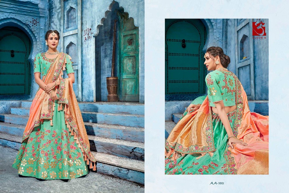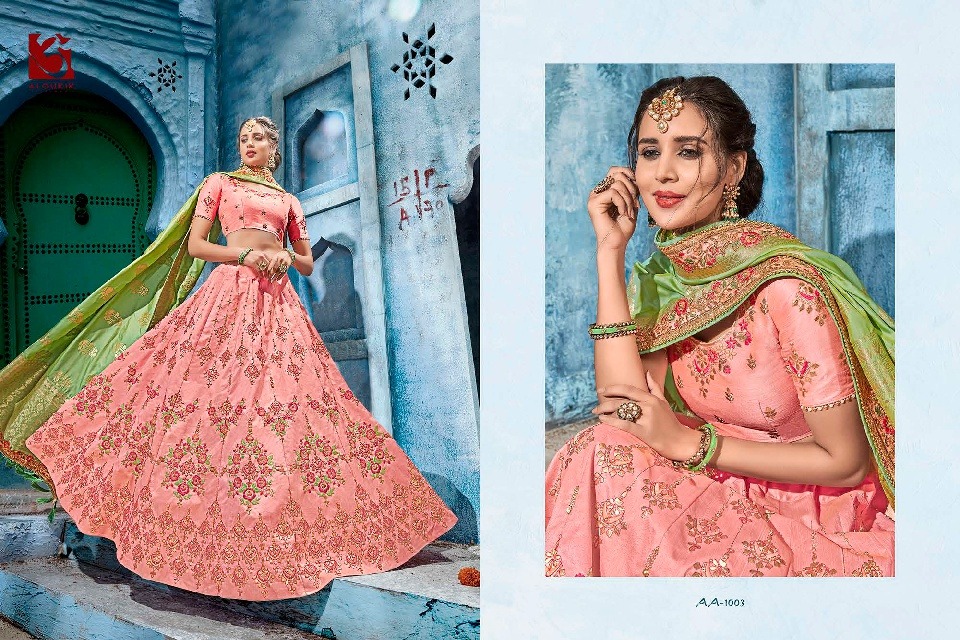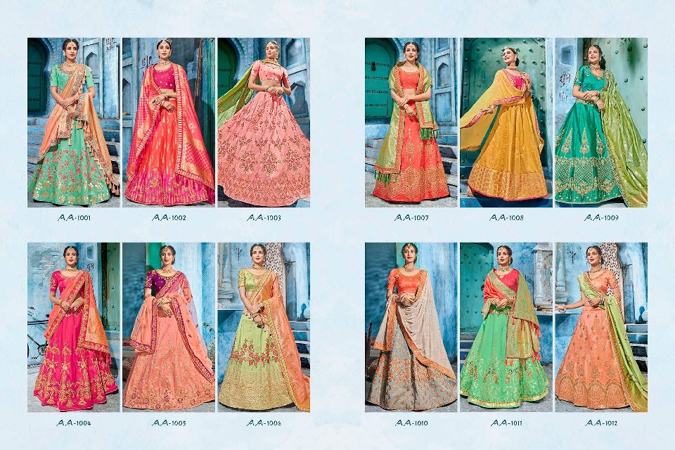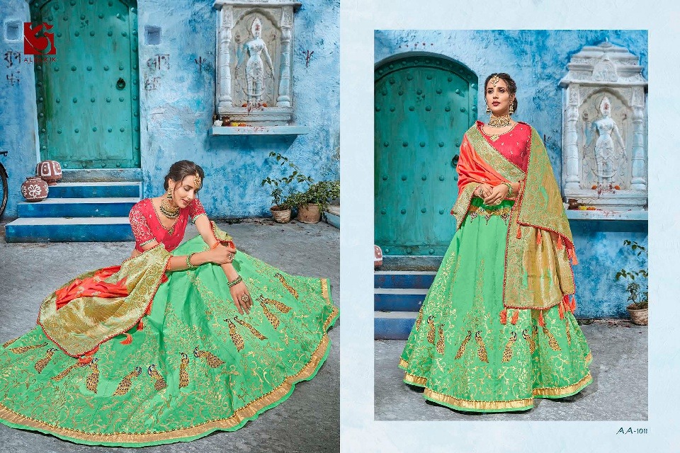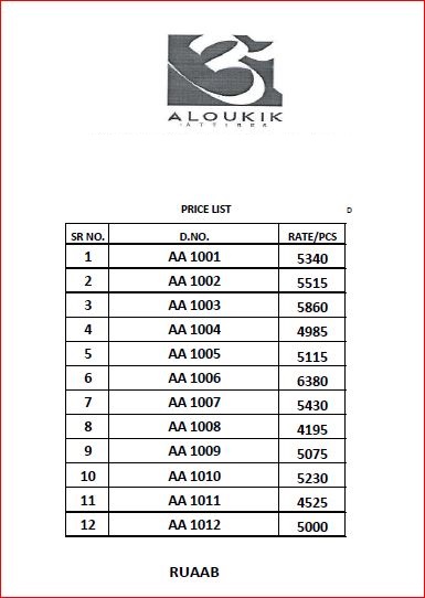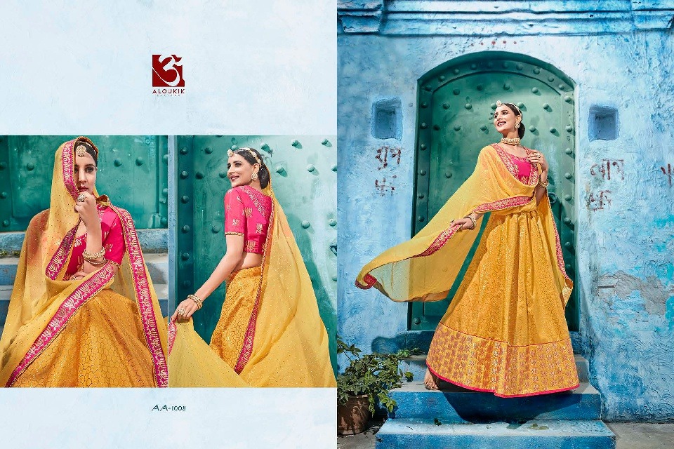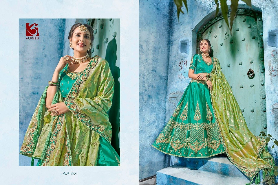 Brand- ALOUKIK. Type - Lehnega . Series -AA 1001 to AA 1012 Set & Loose . GST 12 Percent Extra. Delivery 4-5 days Singles and multipal available Book now For SingleÂ?s price call or whatsapp on +919898838984 |