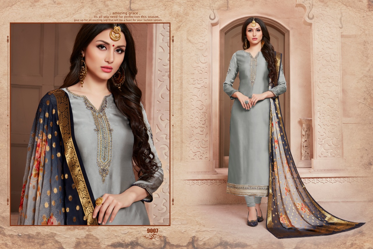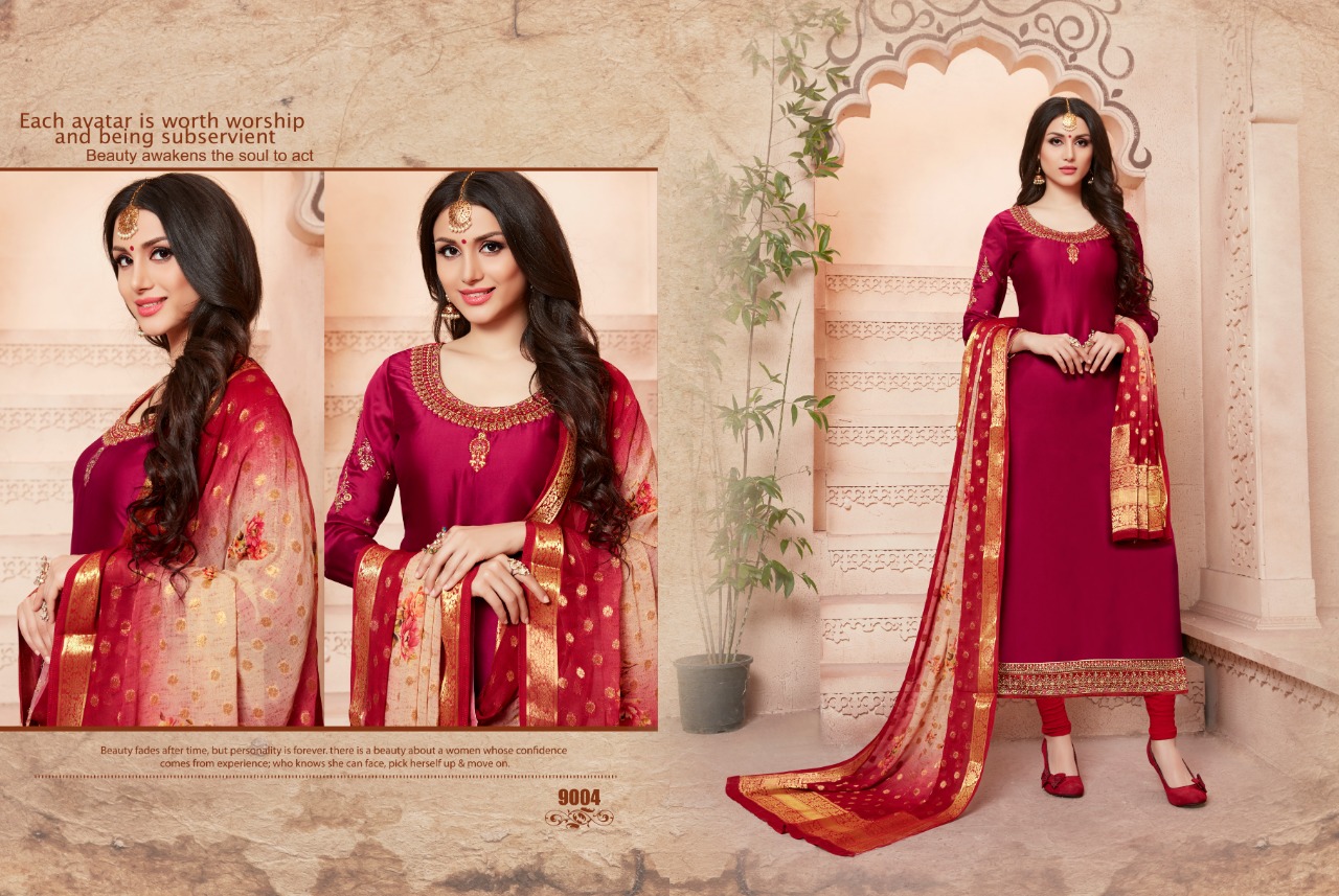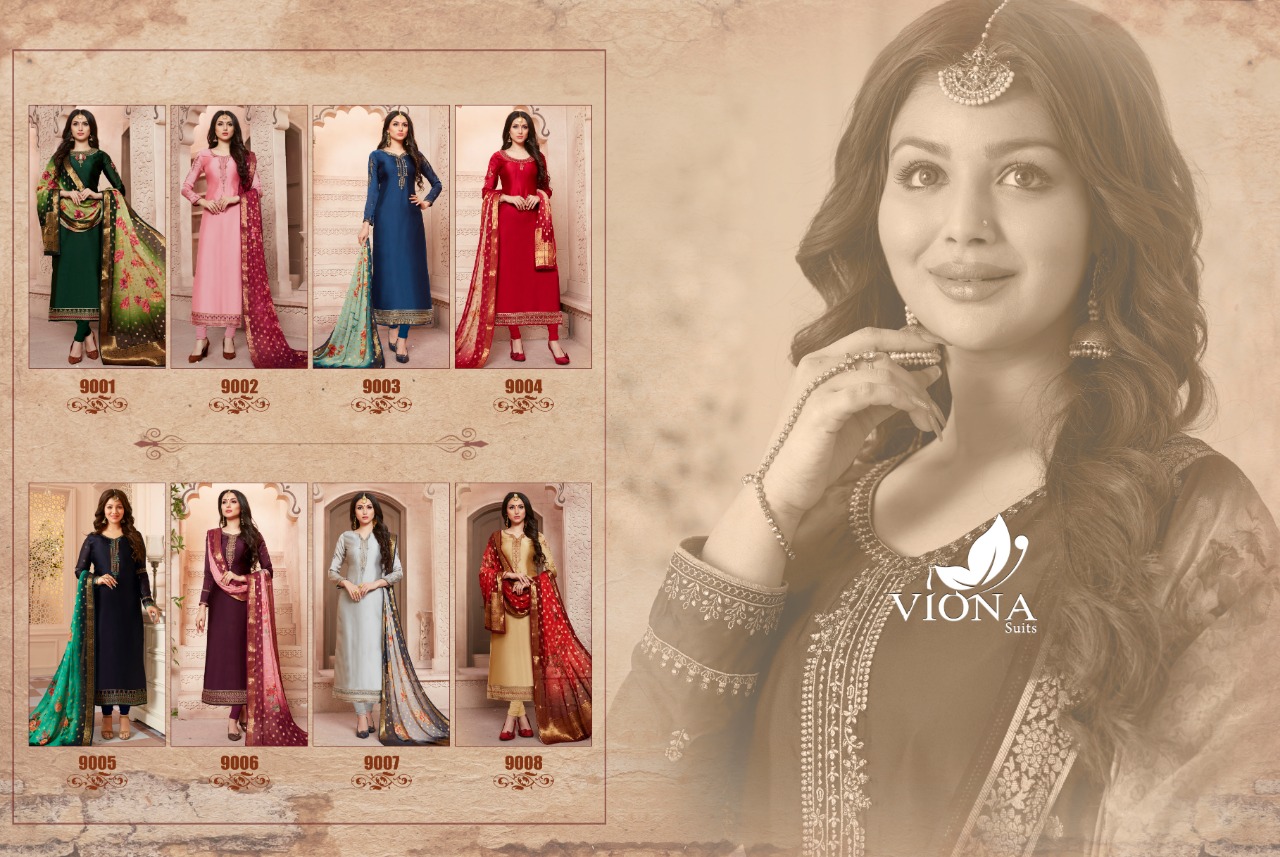 Buy Online Ruab By Viona Suit 9001 Series Fancy Party Wear Satin Georgette Salwar Kameez Catlog Wholesaler Surat 8 Pcs of Full Catalogue at Wholesale Price. Looking for Ruab By Viona Suit 9001 Series Fancy Party Wear Satin Georgette Salwar Kameez Catlog Wholesaler Surat Full Catalouge at Best Price? Buy Now Ruab By Viona Suit 9001 Series Fancy Party Wear Satin Georgette Salwar Kameez Catlog Wholesaler Surat at Wholesale Rate of Rs 14000 with Total 8 Pcs from authroized dealer and supplier of Brand. Cost of Each piece is just only Rs 1750 which is very low and affordable price to resale the product in your retail store ,This is Surat based Wholesale Supplier & Dealer of Brand. Click on Brand name to Know more about Brand's products.Call or Whatsapp on 9898838984 for booking or enquiry