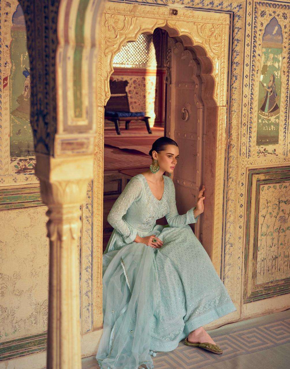 FABRIC - PREMIUM REAL GEROGETTE ( FULL HEAVY LOOK CHIKANKARI EMBROIDERED DRESSES WITH EMBROIDERED DUPATTA )