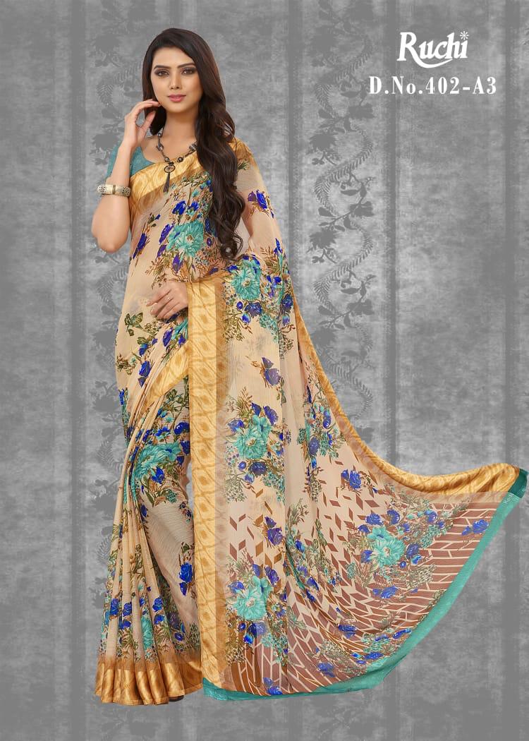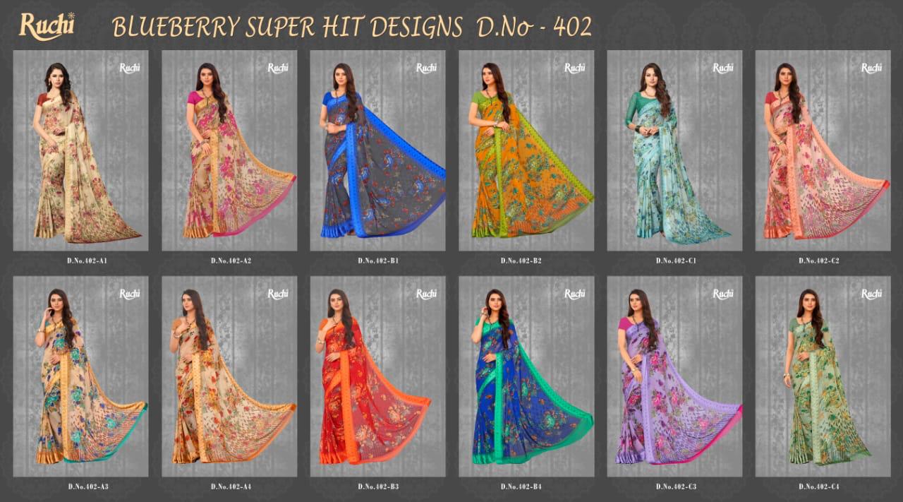 Ruchi Blueberry Hit Design 402 Designer Sarees Wholesale Supplier Gujarat