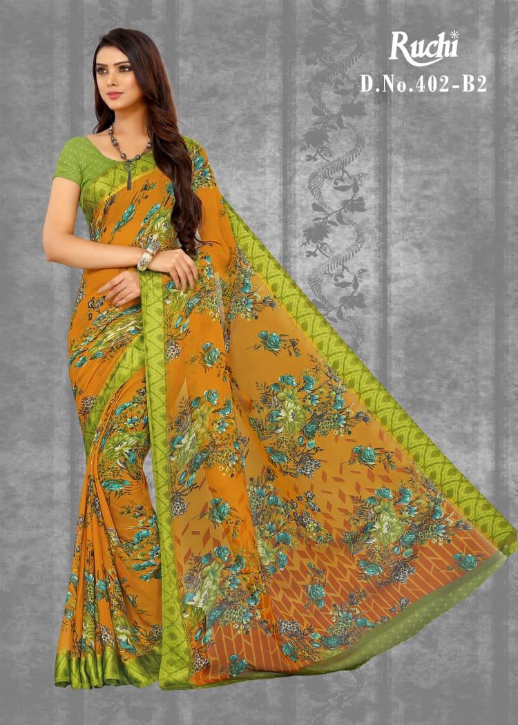 Buy Online Ruchi Blueberry Hit Design 402 Designer Sarees Wholesale Supplier Gujarat 12 Pcs of Full Catalogue at Wholesale Price. Looking for Ruchi Blueberry Hit Design 402 Designer Sarees Wholesale Supplier Gujarat Full Catalouge at Best Price? Buy Now Ruchi Blueberry Hit Design 402 Designer Sarees Wholesale Supplier Gujarat at Wholesale Rate of Rs 5400 with Total 12 Pcs from authroized dealer and supplier of RUCHI SAREE Brand. Cost of Each piece is just only Rs 450 which is very low and affordable price to resale the product in your retail store ,This is Surat based Wholesale Supplier & Dealer of RUCHI SAREE Brand. Click on Brand name to Know more about RUCHI SAREE Brand's products.Call or Whatsapp on 9898838984 for booking or enquiry