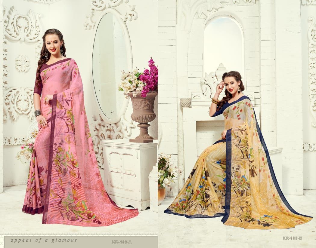 Ruchi Sarees Catalog- Kroma No. Of pcs.- 20. Set to set . Rate -425 per Pcs . Set to set . GST 5 Percent Extra. Delivery from tomorrow . order and inquiry +919898838984 |