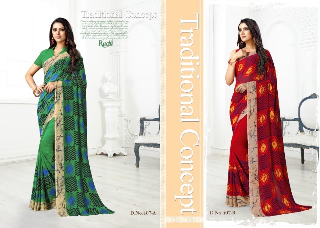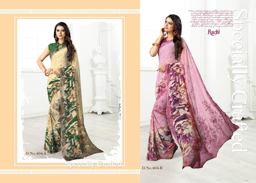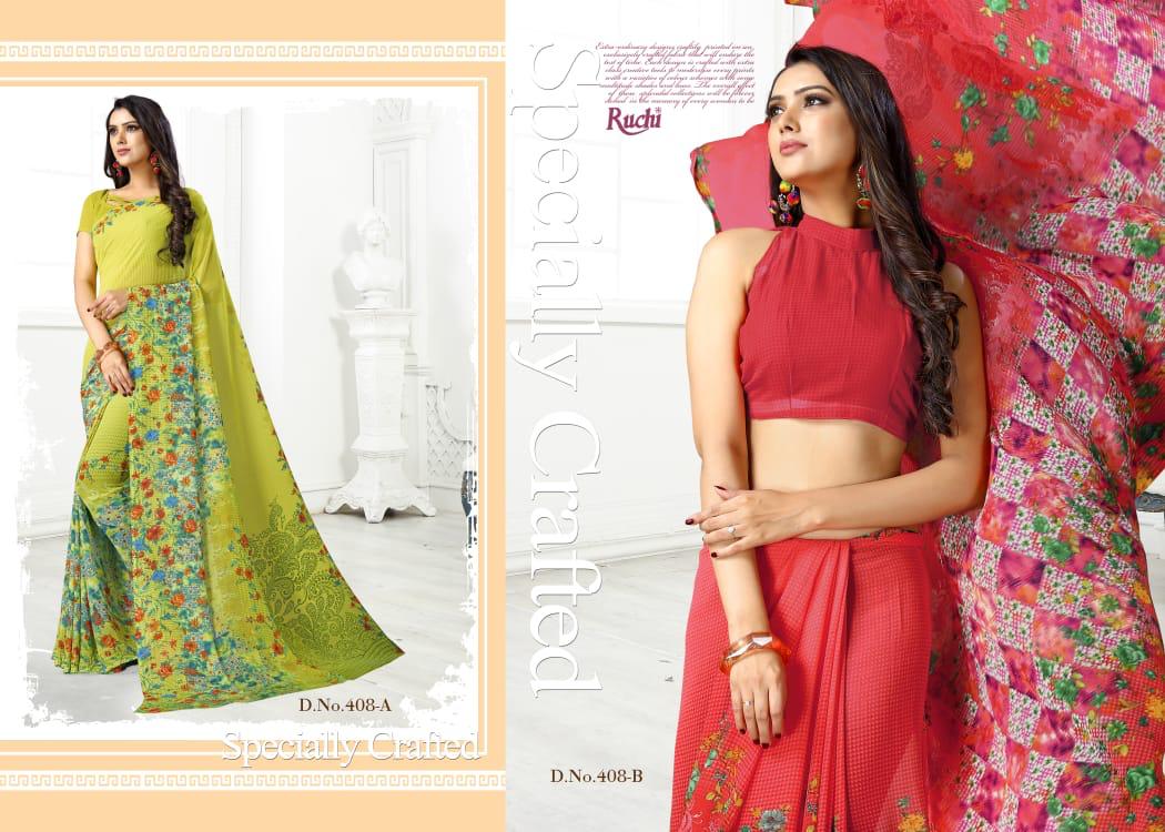 Buy Online Ruchi Raaga Georgette Vol 04 Sarees Wholesale Supplier Gujarat 20 Pcs of Full Catalogue at Wholesale Price. Looking for Ruchi Raaga Georgette Vol 04 Sarees Wholesale Supplier Gujarat Full Catalouge at Best Price? Buy Now Ruchi Raaga Georgette Vol 04 Sarees Wholesale Supplier Gujarat at Wholesale Rate of Rs 9000 with Total 20 Pcs from authroized dealer and supplier of RUCHI SAREE Brand. Cost of Each piece is just only Rs 450 which is very low and affordable price to resale the product in your retail store ,This is Surat based Wholesale Supplier & Dealer of RUCHI SAREE Brand. Click on Brand name to Know more about RUCHI SAREE Brand's products.Call or Whatsapp on 9898838984 for booking or enquiry