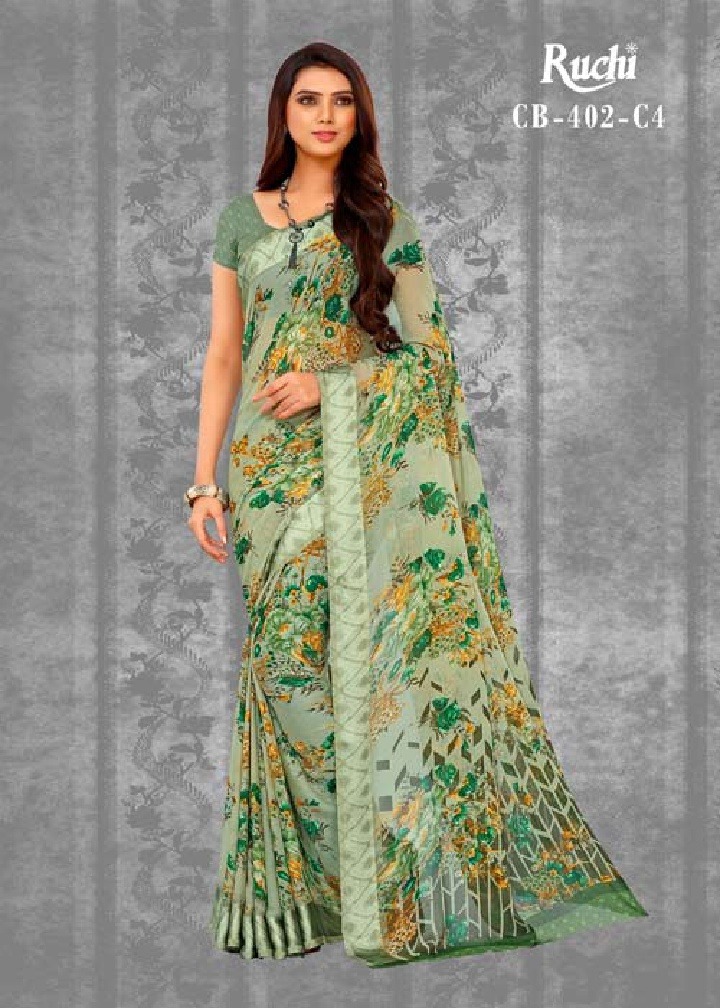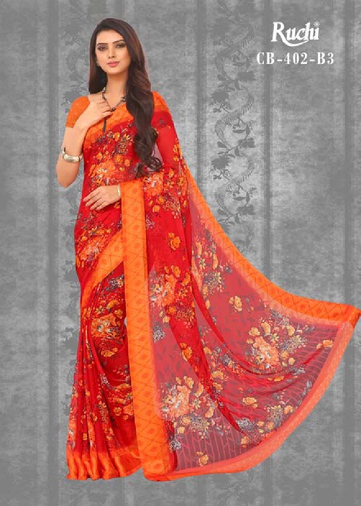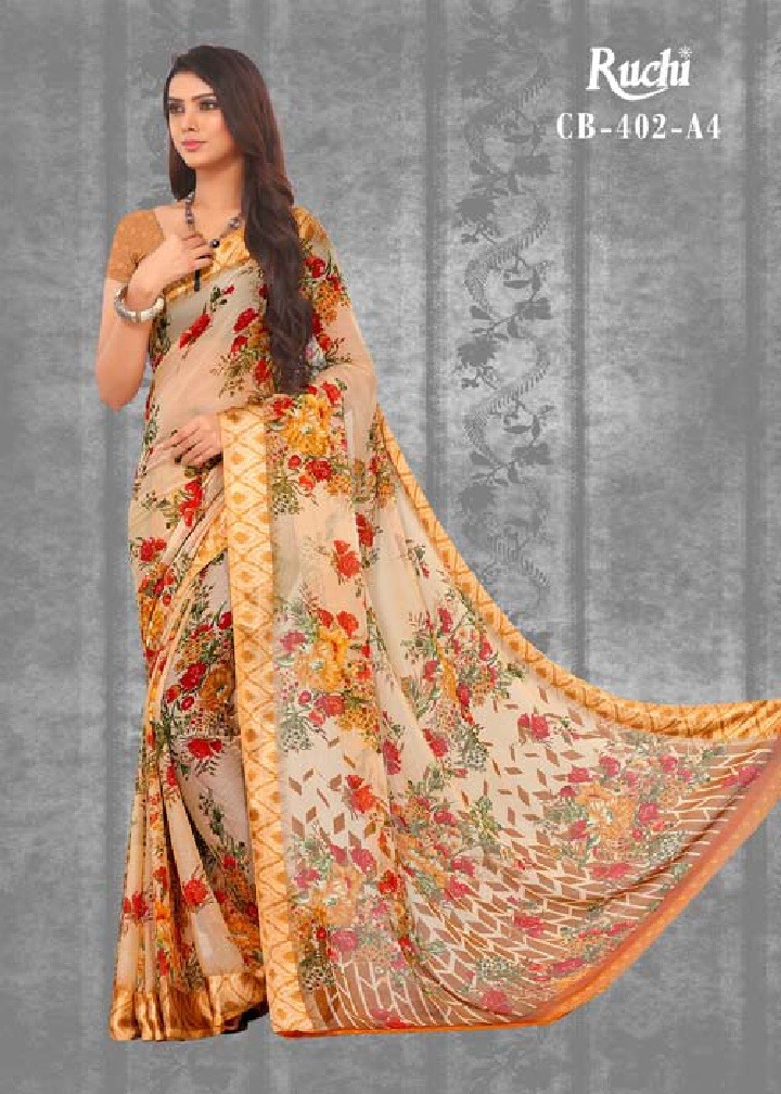 Ruchi Saree Fancy Chiffon Satin Patta Printed Saree Catlog Wholesale Dealer Surat