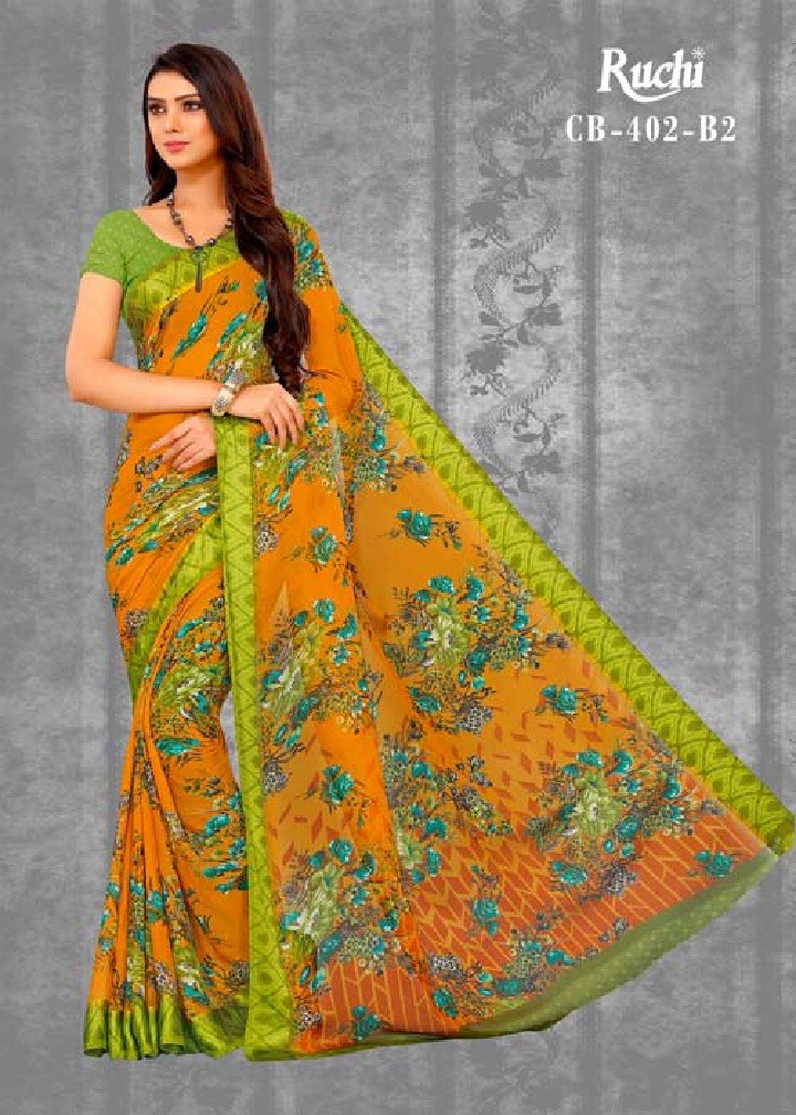 Buy Online Ruchi Saree Fancy Chiffon Satin Patta Printed Saree Catlog Wholesale Dealer Surat 12 Pcs of Full Catalogue at Wholesale Price. Looking for Ruchi Saree Fancy Chiffon Satin Patta Printed Saree Catlog Wholesale Dealer Surat Full Catalouge at Best Price? Buy Now Ruchi Saree Fancy Chiffon Satin Patta Printed Saree Catlog Wholesale Dealer Surat at Wholesale Rate of Rs 5100 with Total 12 Pcs from authroized dealer and supplier of RUCHI SAREE Brand. Cost of Each piece is just only Rs 425 which is very low and affordable price to resale the product in your retail store ,This is Surat based Wholesale Supplier & Dealer of RUCHI SAREE Brand. Click on Brand name to Know more about RUCHI SAREE Brand's products.Call or Whatsapp on 9898838984 for booking or enquiry