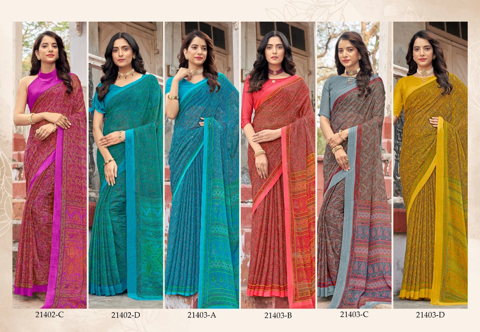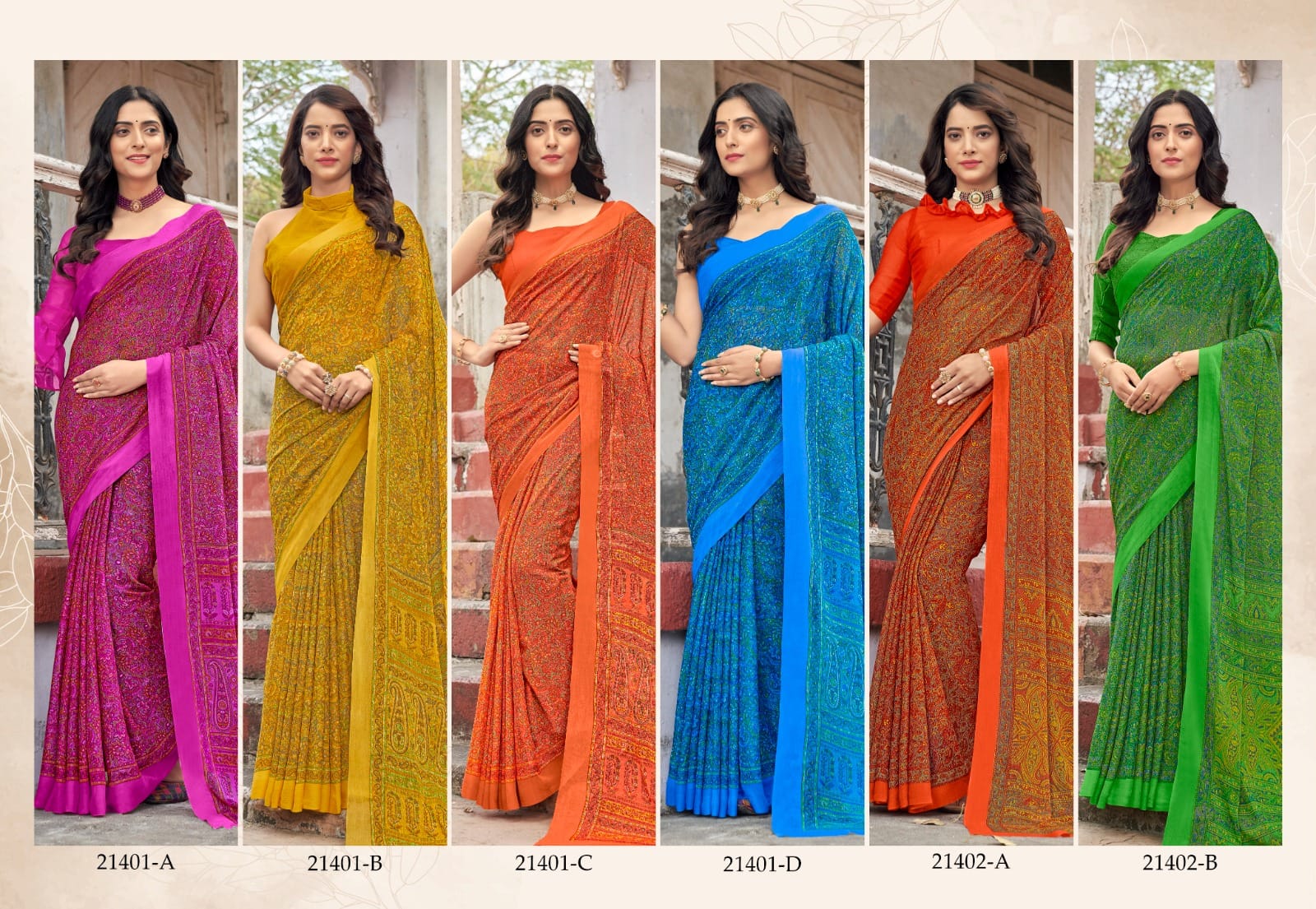 *? BRAND : RUCHI ?* *?CATALOG : STAR CHIFFON (21401 SERIES) ?* *? FABRIC : CHIFFON PRINTED SAREE ?* *? PRICE : 417+5% GST EXTRA ?* *SINGLES & SET WISE AVAILABLE ?* *READY TO SHIP* *OCCATION: DAILY WEAR, OFFICE WEAR, UNIFORM WEAR* 100+Singles |