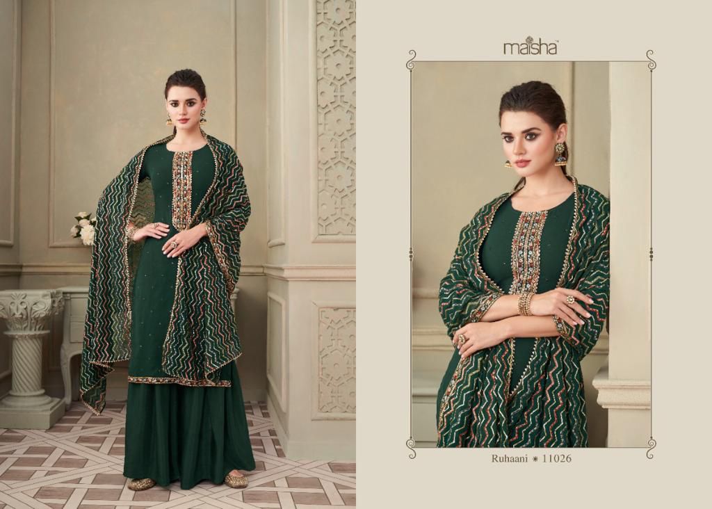 Buy Online Ruhaani By Maisha Designer Suits Wholesale Suppliers And Dealer From India 6 Pcs of Full Catalogue at Wholesale Price. Looking for Ruhaani By Maisha Designer Suits Wholesale Suppliers And Dealer From India Full Catalouge at Best Price? Buy Now Ruhaani By Maisha Designer Suits Wholesale Suppliers And Dealer From India at Wholesale Rate of Rs 12270 with Total 6 Pcs from authroized dealer and supplier of MAISHA Brand. Cost of Each piece is just only Rs 2045 which is very low and affordable price to resale the product in your retail store ,This is Surat based Wholesale Supplier & Dealer of MAISHA Brand. Click on Brand name to Know more about MAISHA Brand's products.Call or Whatsapp on 9898838984 for booking or enquiry