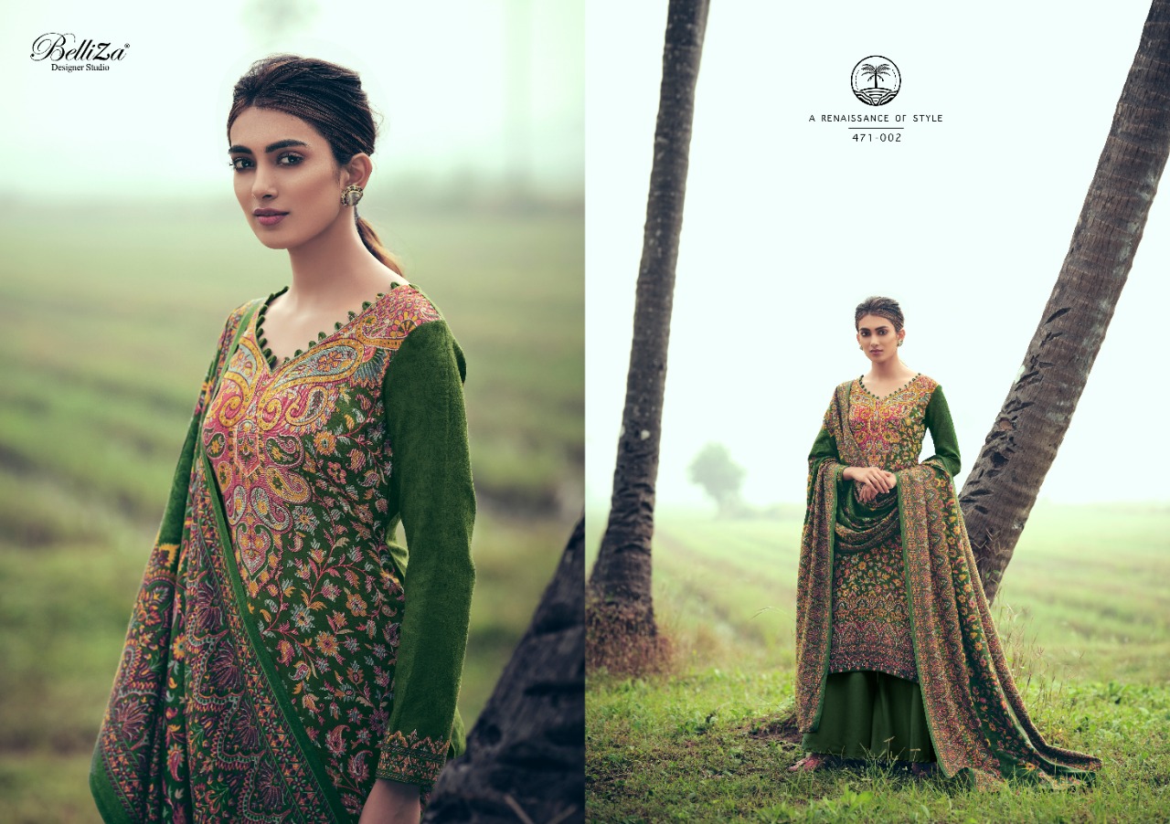 # RUHANI Vol 3 # Pure Pashmina Collection _*......BelliZa DesigNer StuDio......*_ _presents_ *"RUHANI"* _designer woollen collection_ Vol 3 ??Top: 100% Pure Pashmina Digital Style Print (2.50 mtrs) ??Dupatta: Pure Pashmina Shawl (2.30 mtr) ??Bottom: Pure Pashmina Spun (3 mtrs apx) ??Pcs: 10 ??Selling Rate: 485/- (GST extra) # Book Now At Belliza, Quality Pashmina Fabrics with Exquisite Designing at Best Price is our 'Cherished Legacy'. |