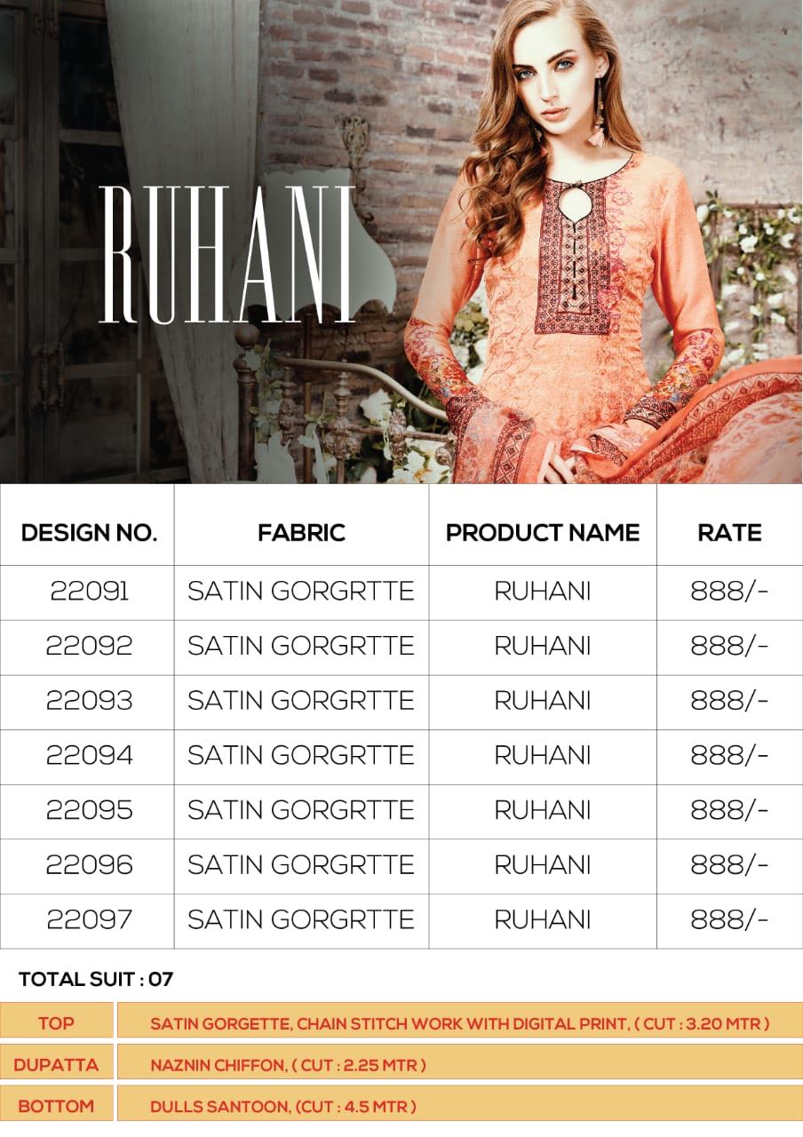 Buy Online Ruhani By Fiona Satin Printed Suits Wholesale Supplier And Dealer Gujarat 7 Pcs of Full Catalogue at Wholesale Price. Looking for Ruhani By Fiona Satin Printed Suits Wholesale Supplier And Dealer Gujarat Full Catalouge at Best Price? Buy Now Ruhani By Fiona Satin Printed Suits Wholesale Supplier And Dealer Gujarat at Wholesale Rate of Rs 6216 with Total 7 Pcs from authroized dealer and supplier of FIONA Brand. Cost of Each piece is just only Rs 888 which is very low and affordable price to resale the product in your retail store ,This is Surat based Wholesale Supplier & Dealer of FIONA Brand. Click on Brand name to Know more about FIONA Brand's products.Call or Whatsapp on 9898838984 for booking or enquiry