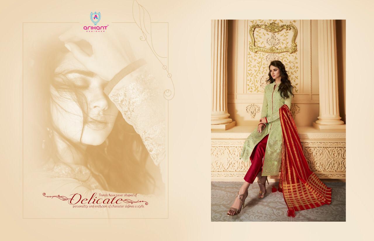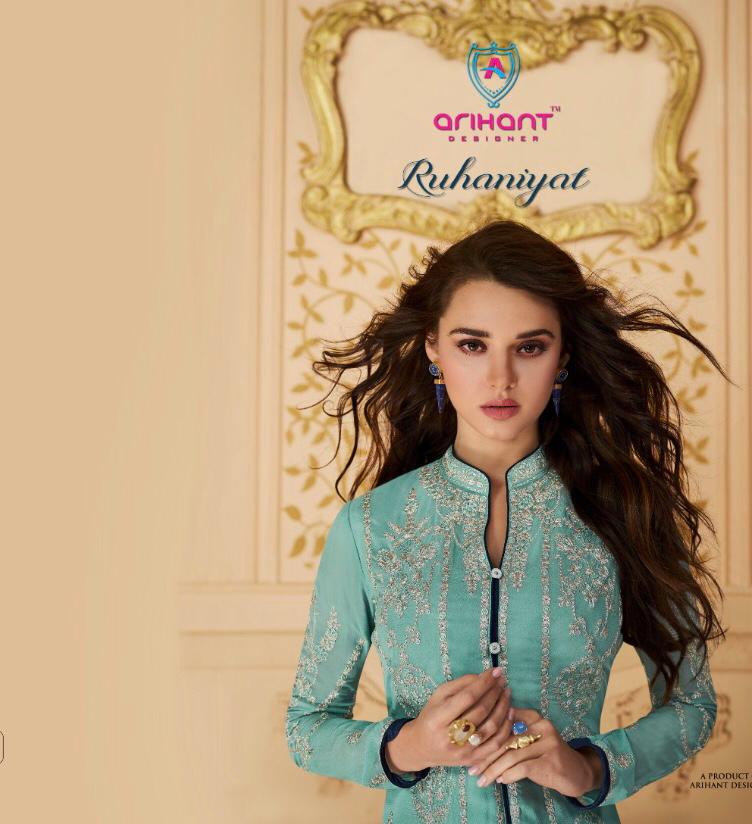 ARIHANT DesignerÂ?? Present New Catlog ?RUHANIYAT? ? FabRics Detail? ?Top:Apple Jorjat ?Inner&Bottom:-Dull Santoon Duppta:-ORGANZA JEQARD Des.5 Pcs Rate-1?2?5?0?/-( Avarage ) GST 5 Percent Extra Disptch Date- Next Week Regard:- Arihant DesignerÂ?? |