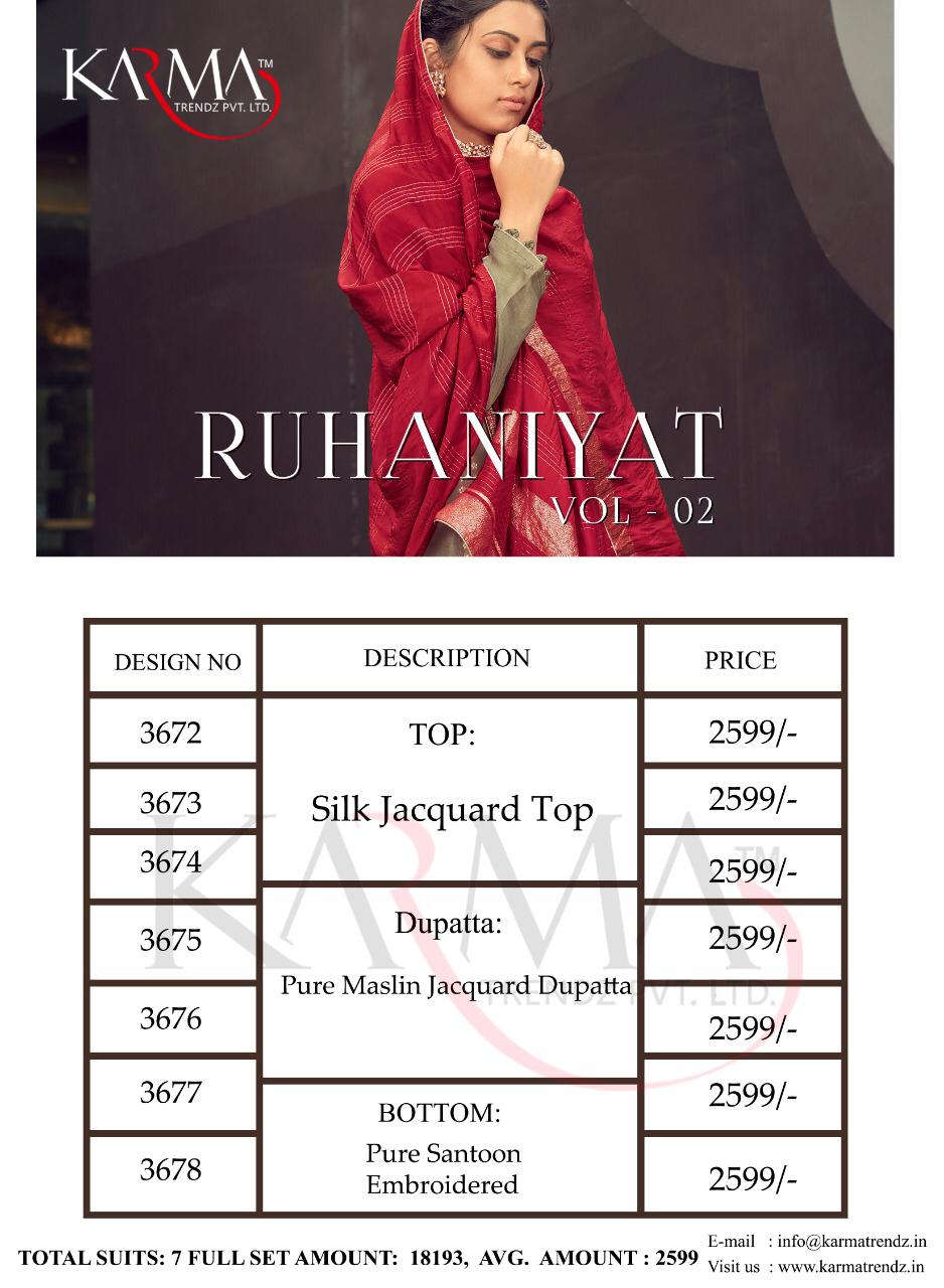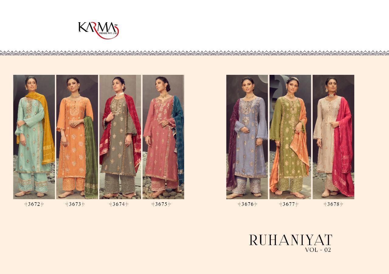 Brand - Karma . Catlog name - RUHANIYAT VOL -2. Series - 3672 to 3678. * set & loose & Singel * Delivery * 30 March * Book your order now 100+single |