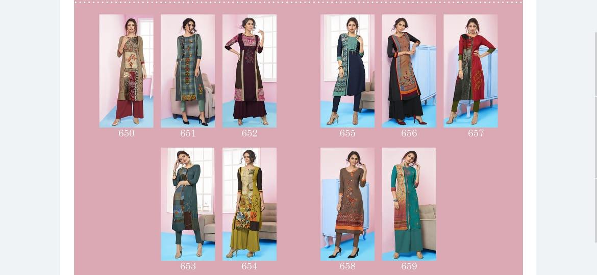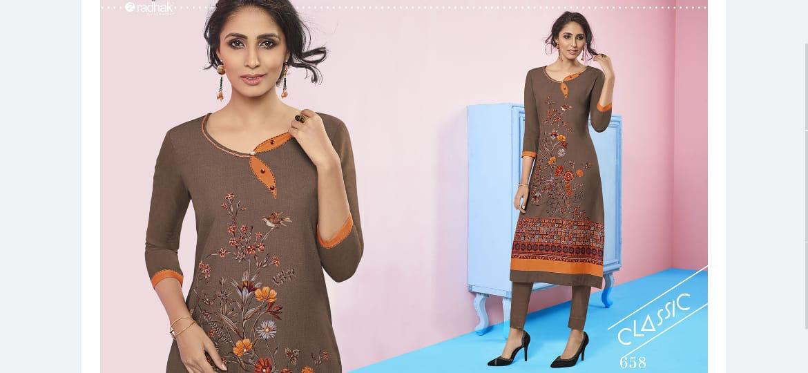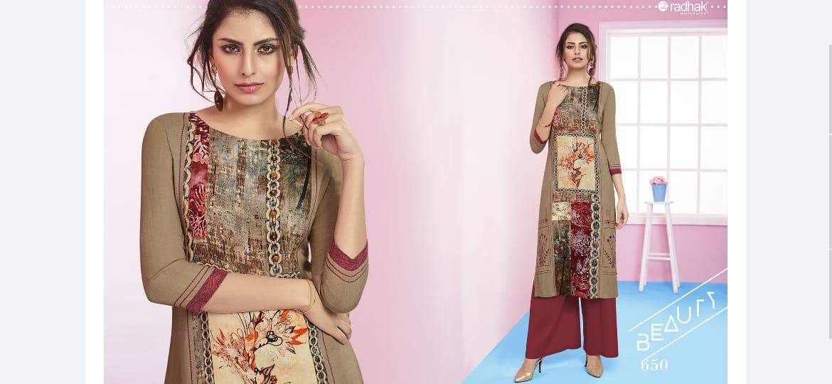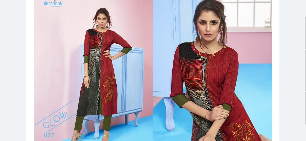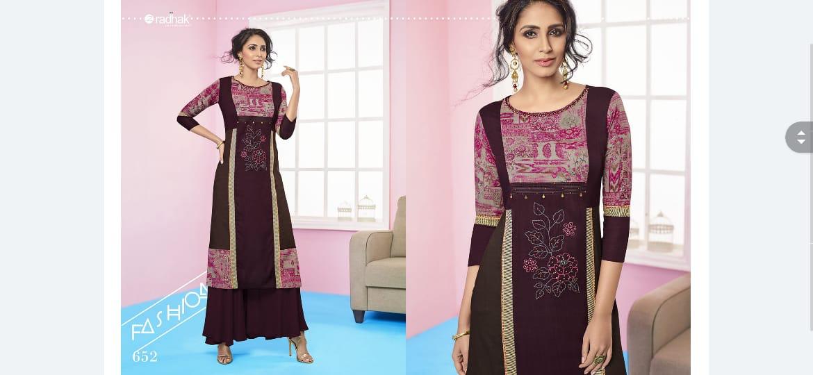 Buy Online Rukmee Vol 6 By Radhak 650 Series Fancy Printed Kurti Catlog Wholesaler Surat 10 Pcs of Full Catalogue at Wholesale Price. Looking for Rukmee Vol 6 By Radhak 650 Series Fancy Printed Kurti Catlog Wholesaler Surat Full Catalouge at Best Price? Buy Now Rukmee Vol 6 By Radhak 650 Series Fancy Printed Kurti Catlog Wholesaler Surat at Wholesale Rate of Rs 5950 with Total 10 Pcs from authroized dealer and supplier of RADHAK FASHION Brand. Cost of Each piece is just only Rs 595 which is very low and affordable price to resale the product in your retail store ,This is Surat based Wholesale Supplier & Dealer of RADHAK FASHION Brand. Click on Brand name to Know more about RADHAK FASHION Brand's products.Call or Whatsapp on 9898838984 for booking or enquiry