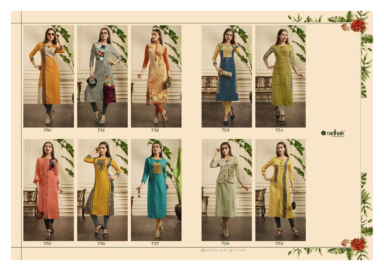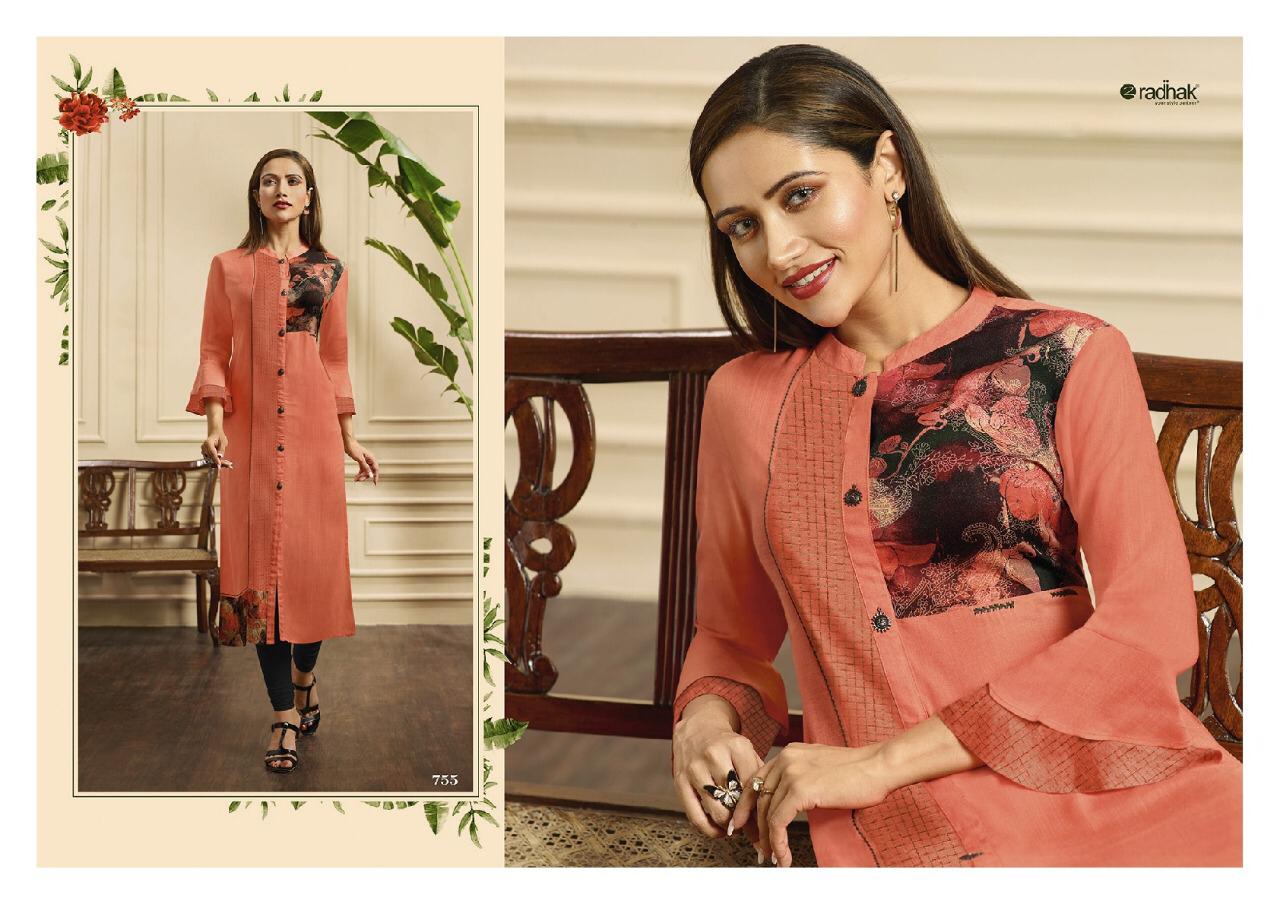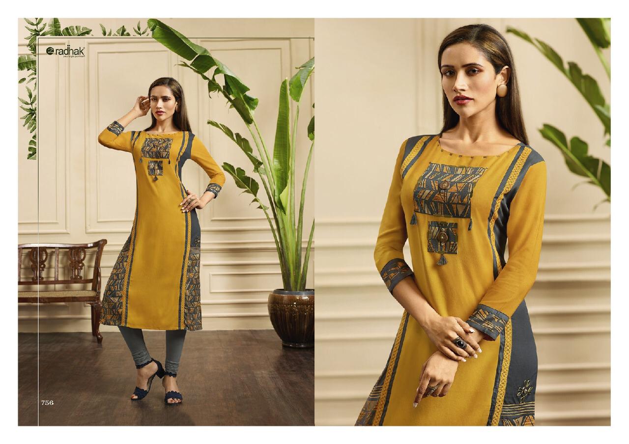 Rukmee Vol 7 By Radhak 750 Series Fancy Reyon Printed Kurti Catlog Wholesale Dealer Surat