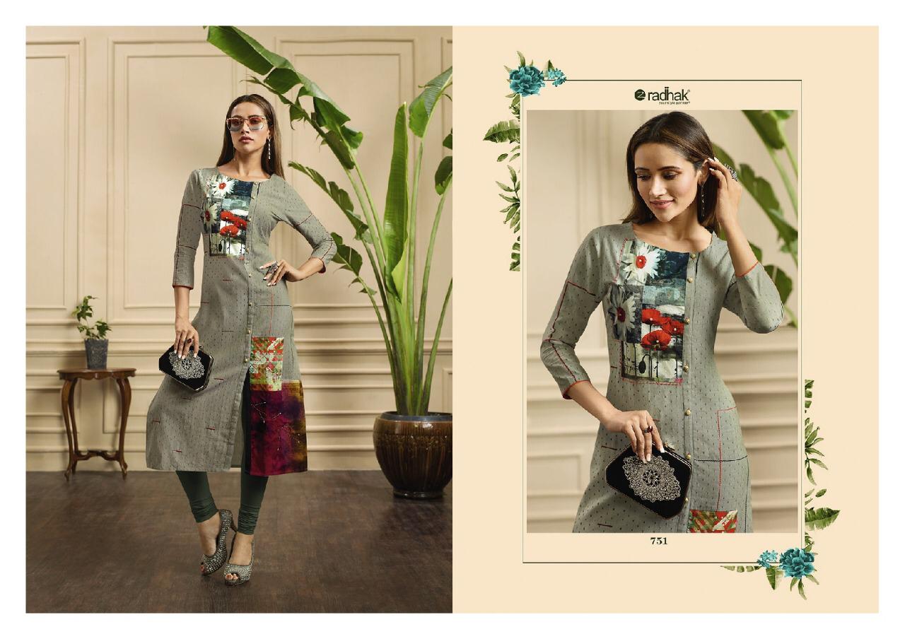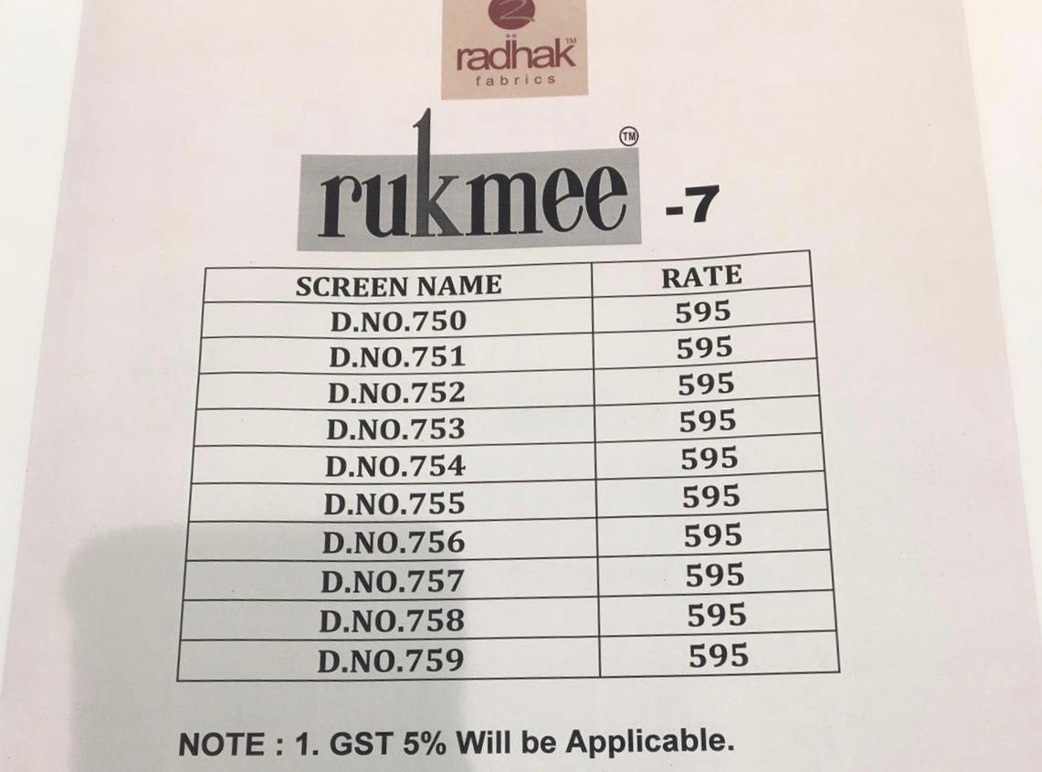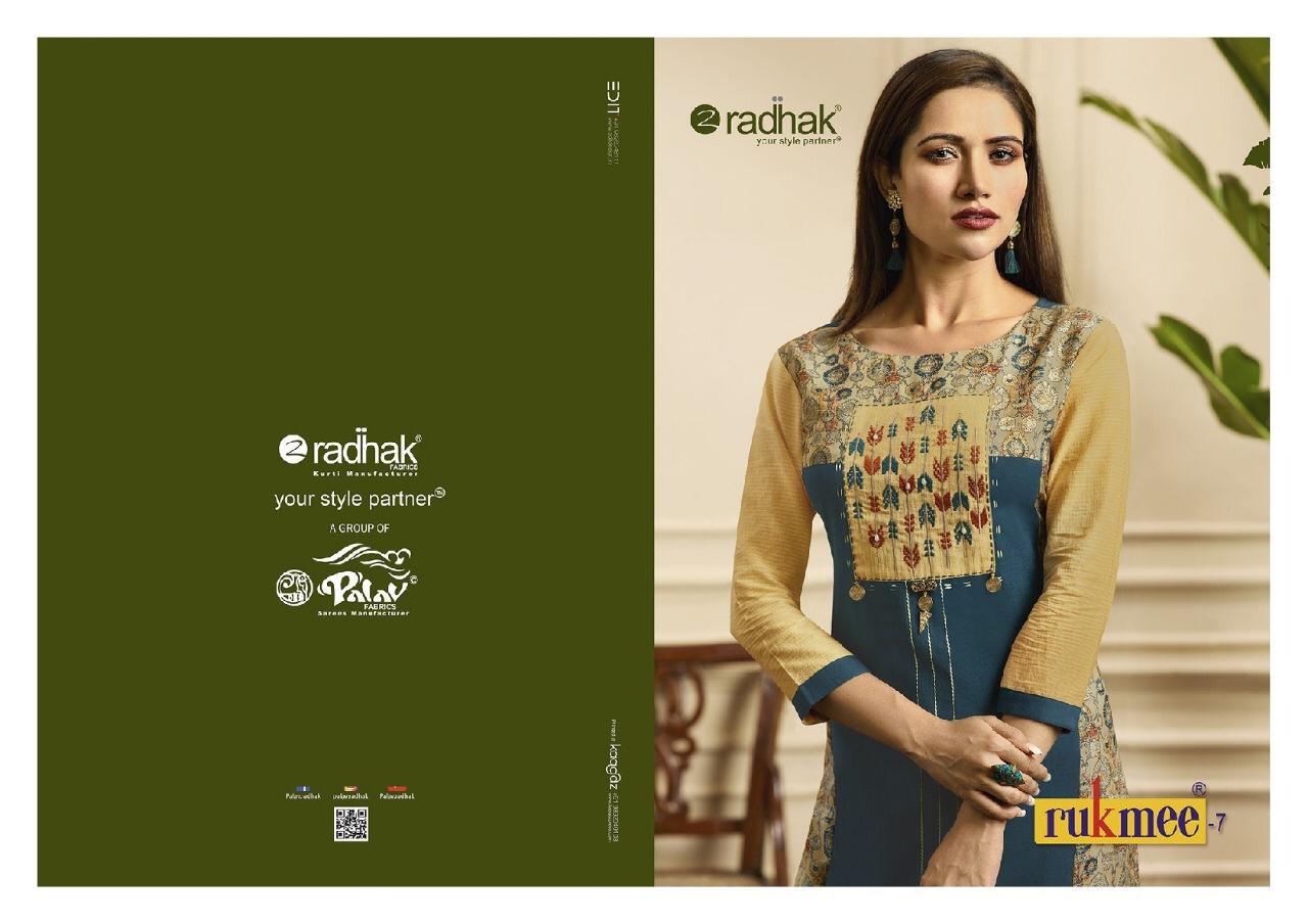 Buy Online Rukmee Vol 7 By Radhak 750 Series Fancy Reyon Printed Kurti Catlog Wholesale Dealer Surat 10 Pcs of Full Catalogue at Wholesale Price. Looking for Rukmee Vol 7 By Radhak 750 Series Fancy Reyon Printed Kurti Catlog Wholesale Dealer Surat Full Catalouge at Best Price? Buy Now Rukmee Vol 7 By Radhak 750 Series Fancy Reyon Printed Kurti Catlog Wholesale Dealer Surat at Wholesale Rate of Rs 5950 with Total 10 Pcs from authroized dealer and supplier of RADHAK FASHION Brand. Cost of Each piece is just only Rs 595 which is very low and affordable price to resale the product in your retail store ,This is Surat based Wholesale Supplier & Dealer of RADHAK FASHION Brand. Click on Brand name to Know more about RADHAK FASHION Brand's products.Call or Whatsapp on 9898838984 for booking or enquiry