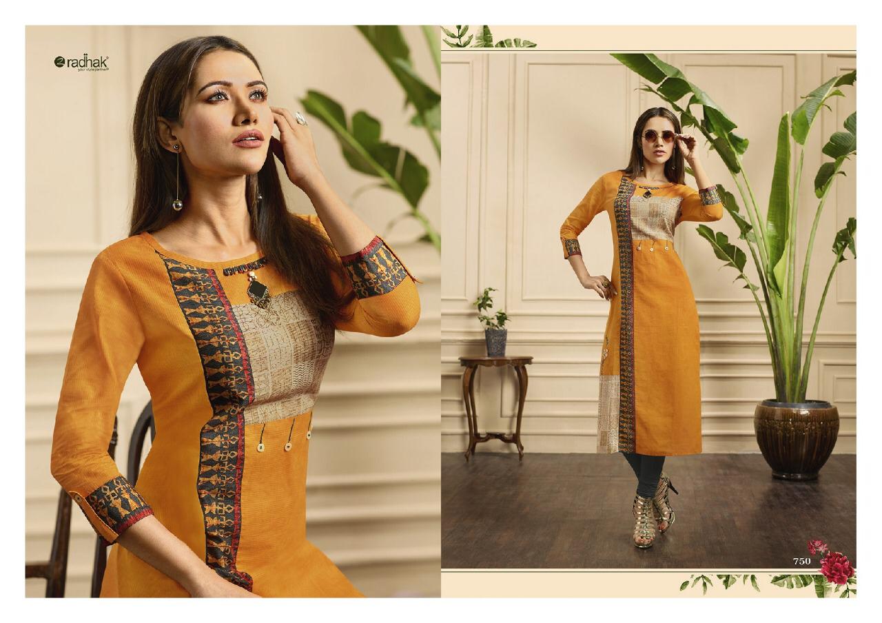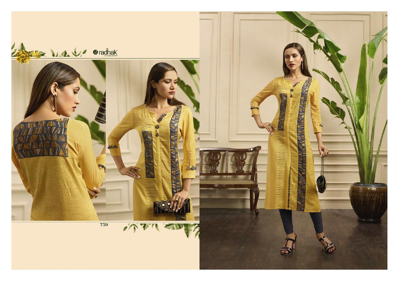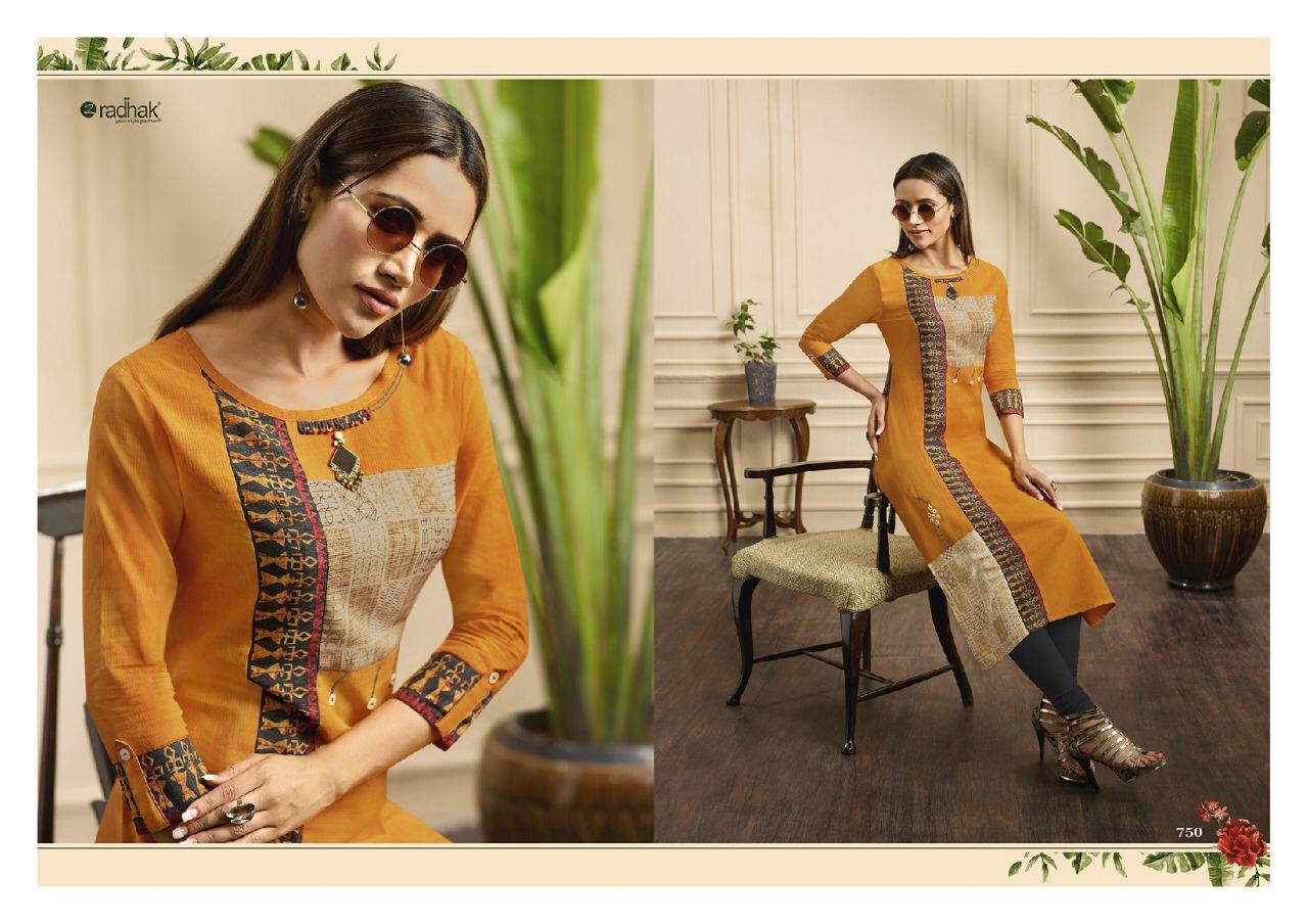 Buy Online Rukmee Vol 7 By Radhak 750 Series Fancy Reyon Printed Kurti Catlog Wholesale Dealer Surat 10 Pcs of Full Catalogue at Wholesale Price. Looking for Rukmee Vol 7 By Radhak 750 Series Fancy Reyon Printed Kurti Catlog Wholesale Dealer Surat Full Catalouge at Best Price? Buy Now Rukmee Vol 7 By Radhak 750 Series Fancy Reyon Printed Kurti Catlog Wholesale Dealer Surat at Wholesale Rate of Rs 5950 with Total 10 Pcs from authroized dealer and supplier of RADHAK FASHION Brand. Cost of Each piece is just only Rs 595 which is very low and affordable price to resale the product in your retail store ,This is Surat based Wholesale Supplier & Dealer of RADHAK FASHION Brand. Click on Brand name to Know more about RADHAK FASHION Brand's products.Call or Whatsapp on 9898838984 for booking or enquiry