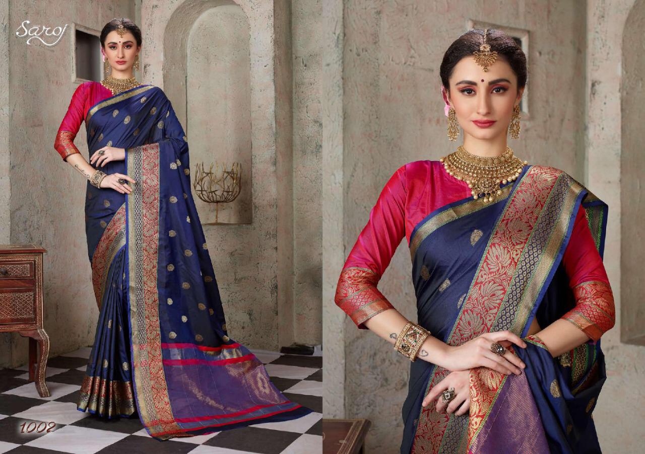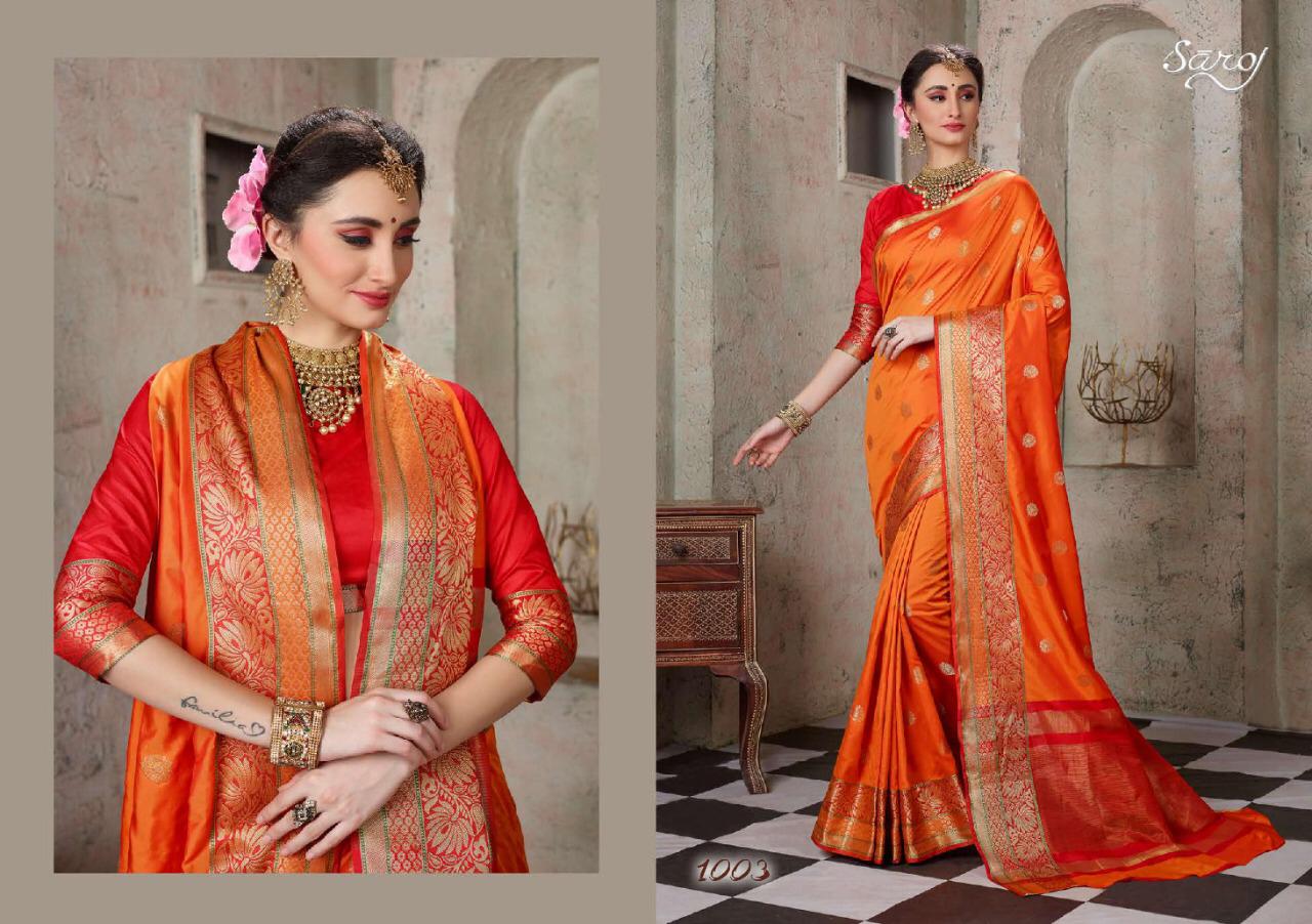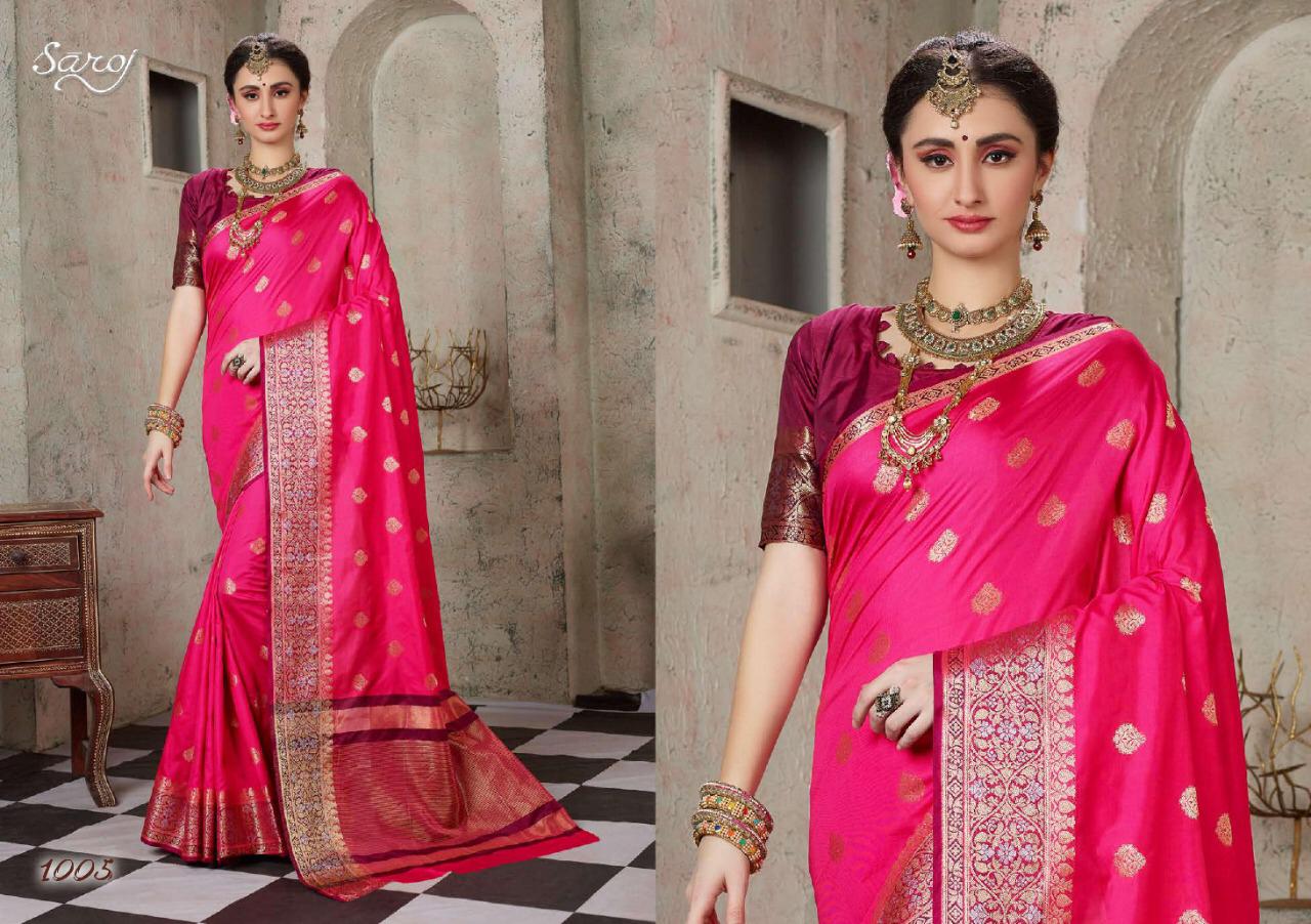 Buy Online Rumani By Saroj Weaving Silk Sarees Wholesale Supplier And Dealer Surat 6 Pcs of Full Catalogue at Wholesale Price. Looking for Rumani By Saroj Weaving Silk Sarees Wholesale Supplier And Dealer Surat Full Catalouge at Best Price? Buy Now Rumani By Saroj Weaving Silk Sarees Wholesale Supplier And Dealer Surat at Wholesale Rate of Rs 4590 with Total 6 Pcs from authroized dealer and supplier of SAROJ SAREE Brand. Cost of Each piece is just only Rs 765 which is very low and affordable price to resale the product in your retail store ,This is Surat based Wholesale Supplier & Dealer of SAROJ SAREE Brand. Click on Brand name to Know more about SAROJ SAREE Brand's products.Call or Whatsapp on 9898838984 for booking or enquiry