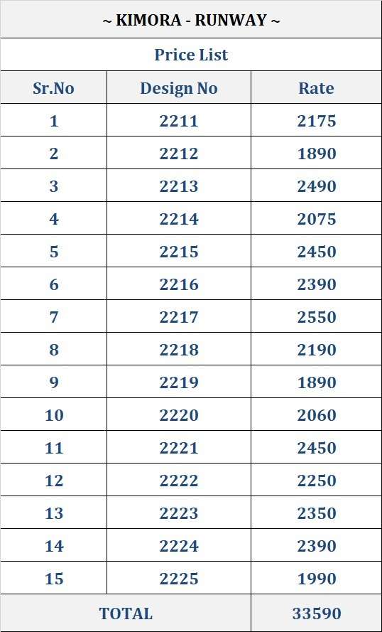 *➡️Design No = Rate* ~S- 2211 = 2175+5% ~S- 2212 =1890+5% ~S- 2213 =2490+5% ~S- 2214 =2075+5% ~S- 2215 = 2450+5% ~S- 2216 =2390+5% ~S- 2217 = 2550+5% ~S- 2218 = 2190+5% ~S- 2219 = 1890+5% ~S- 2220=2060+5% ~S- 2221 = 2450+5% ~S- 2222= 2250+5% ~S- 2223= 2350+5% ~S- 2224= 2390+5% ~S- 2225= 1990+5%
