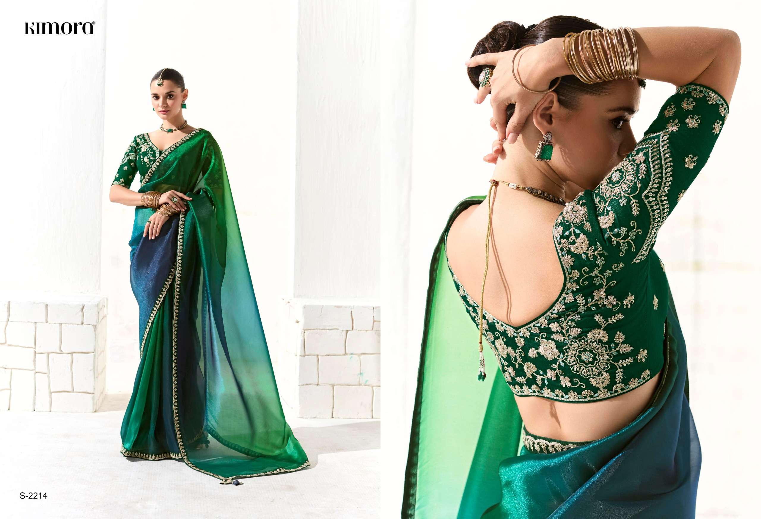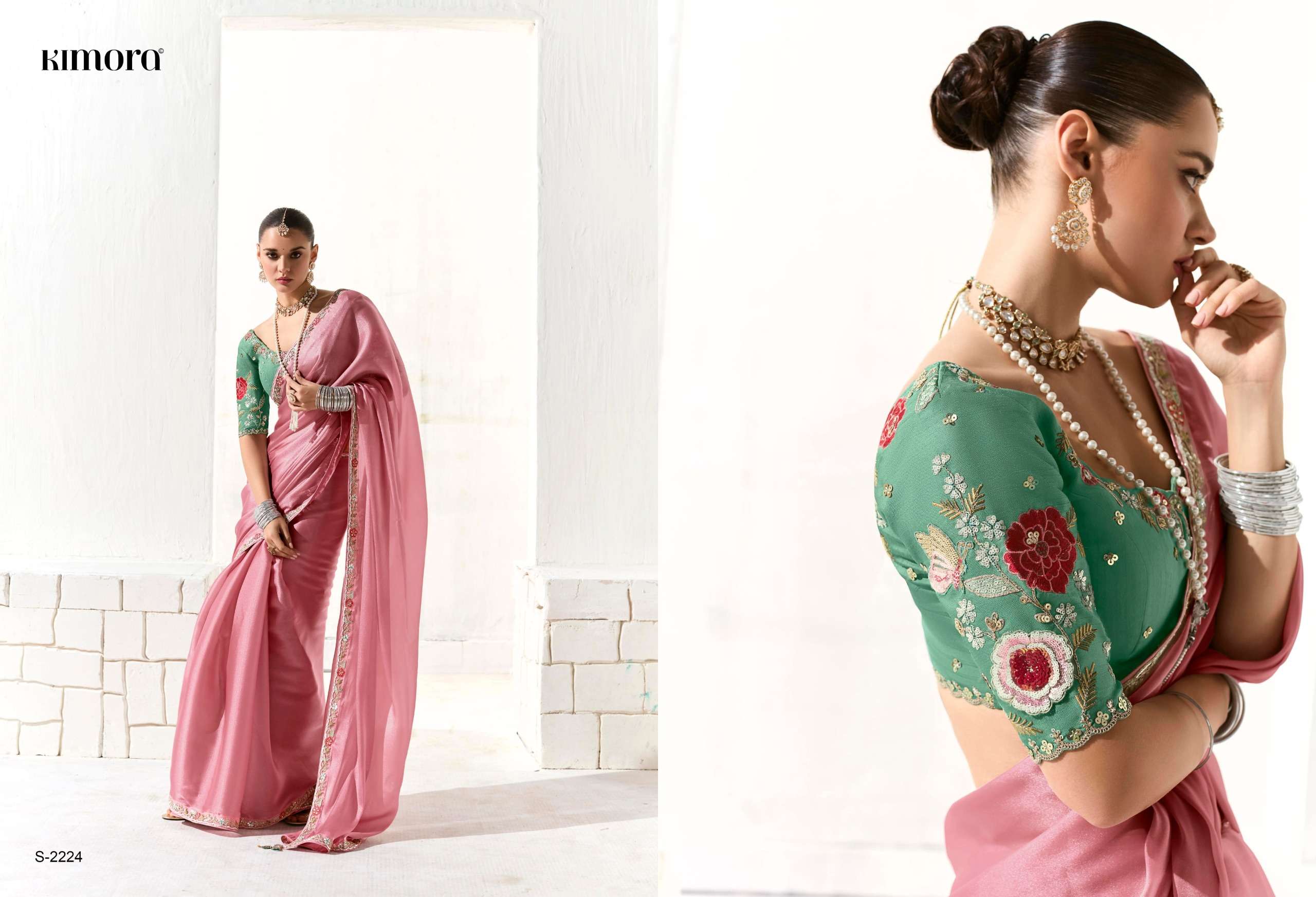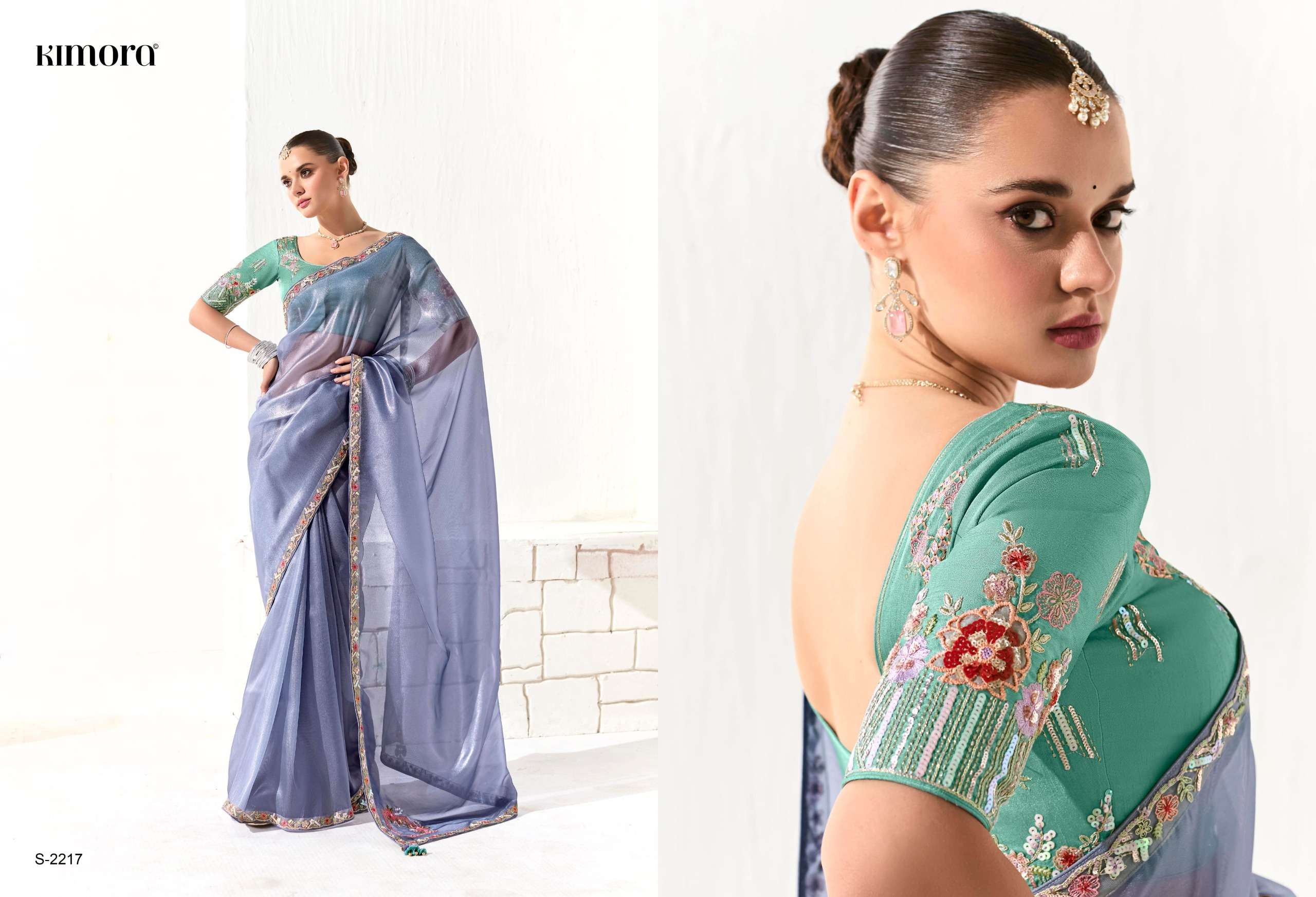 *Brand - Kimora* *▶️Fabric - Pure Fancy* *Tissue based Fabric with* *Designer Cobtrast Hand work Blouse* *Catlog Name - Runway*