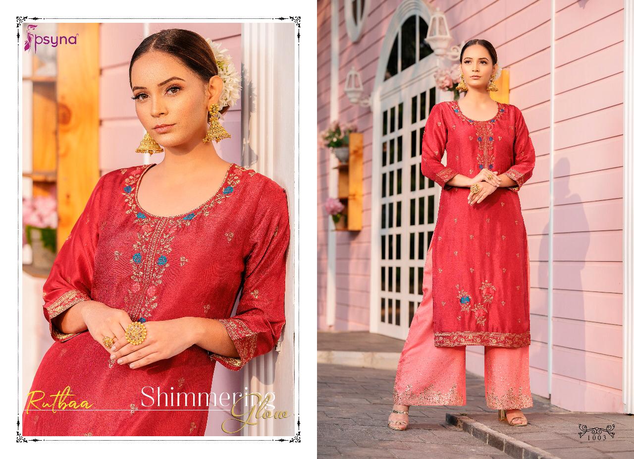 Buy Online Rutba By Psyna Dolla Silk Kurtis With Plazzo Wholesale Supplier Surat And Dealer Surat 1399 Pcs of Full Catalogue at Wholesale Price. Looking for Rutba By Psyna Dolla Silk Kurtis With Plazzo Wholesale Supplier Surat And Dealer Surat Full Catalouge at Best Price? Buy Now Rutba By Psyna Dolla Silk Kurtis With Plazzo Wholesale Supplier Surat And Dealer Surat at Wholesale Rate of Rs 6995 with Total 1399 Pcs from authroized dealer and supplier of PSYNA Brand. Cost of Each piece is just only Rs 5 which is very low and affordable price to resale the product in your retail store ,This is Surat based Wholesale Supplier & Dealer of PSYNA Brand. Click on Brand name to Know more about PSYNA Brand's products.Call or Whatsapp on 9898838984 for booking or enquiry