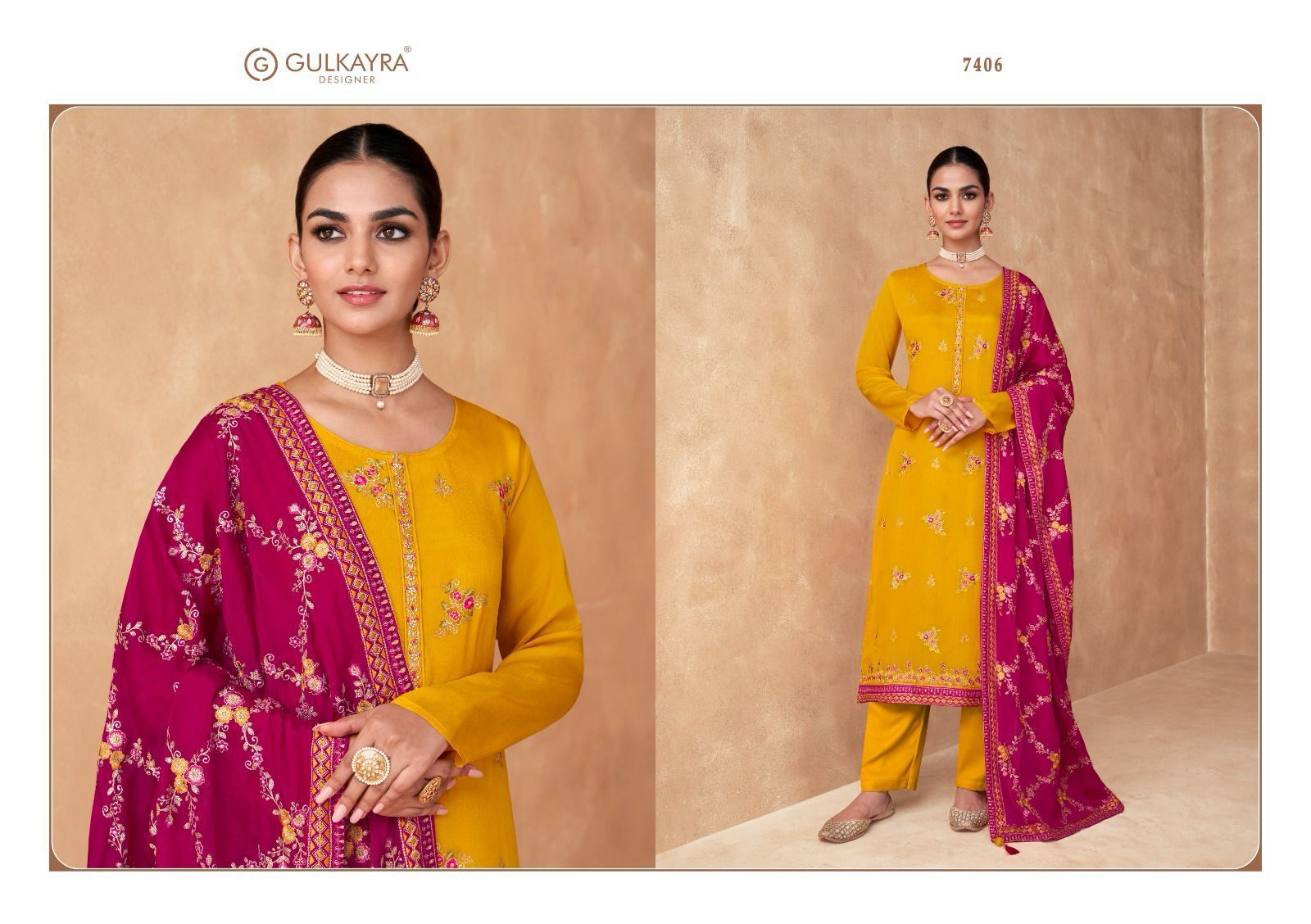 Buy Online Rutba Gulkayra Designer Real Chinon Suits 4 Pcs of Full Catalogue at Wholesale Price. Looking for Rutba Gulkayra Designer Real Chinon Suits Full Catalouge at Best Price? Buy Now Rutba Gulkayra Designer Real Chinon Suits at Wholesale Rate of Rs 6796 with Total 4 Pcs from authroized dealer and supplier of Brand. Cost of Each piece is just only Rs 1699 which is very low and affordable price to resale the product in your retail store ,This is Surat based Wholesale Supplier & Dealer of Brand. Click on Brand name to Know more about Brand's products.Call or Whatsapp on 9898838984 for booking or enquiry