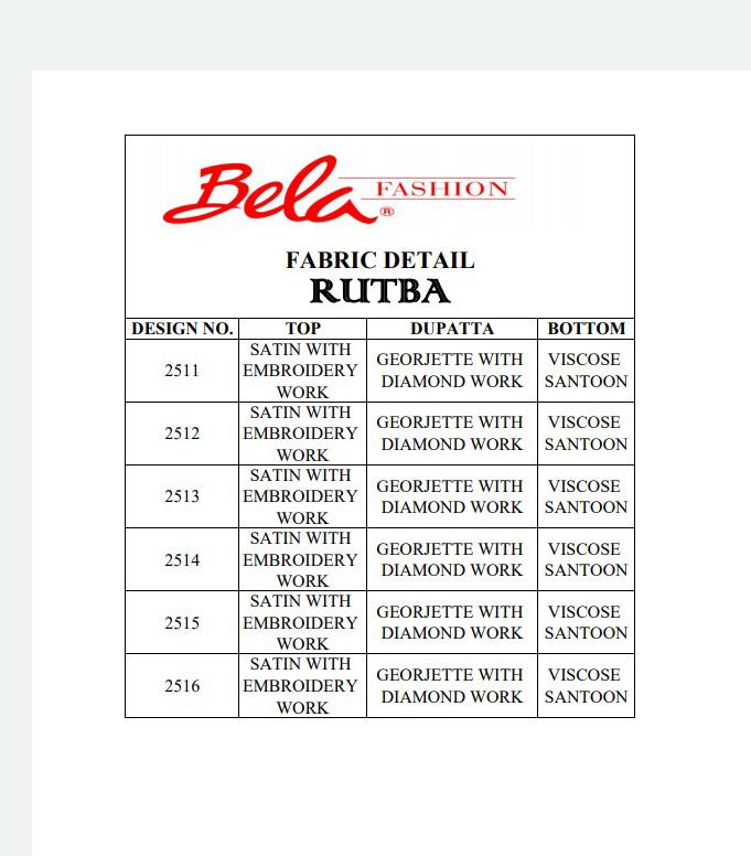 Rutba Series 2511 To 2516 By Bela Single Available Manufacturer Traders Surat