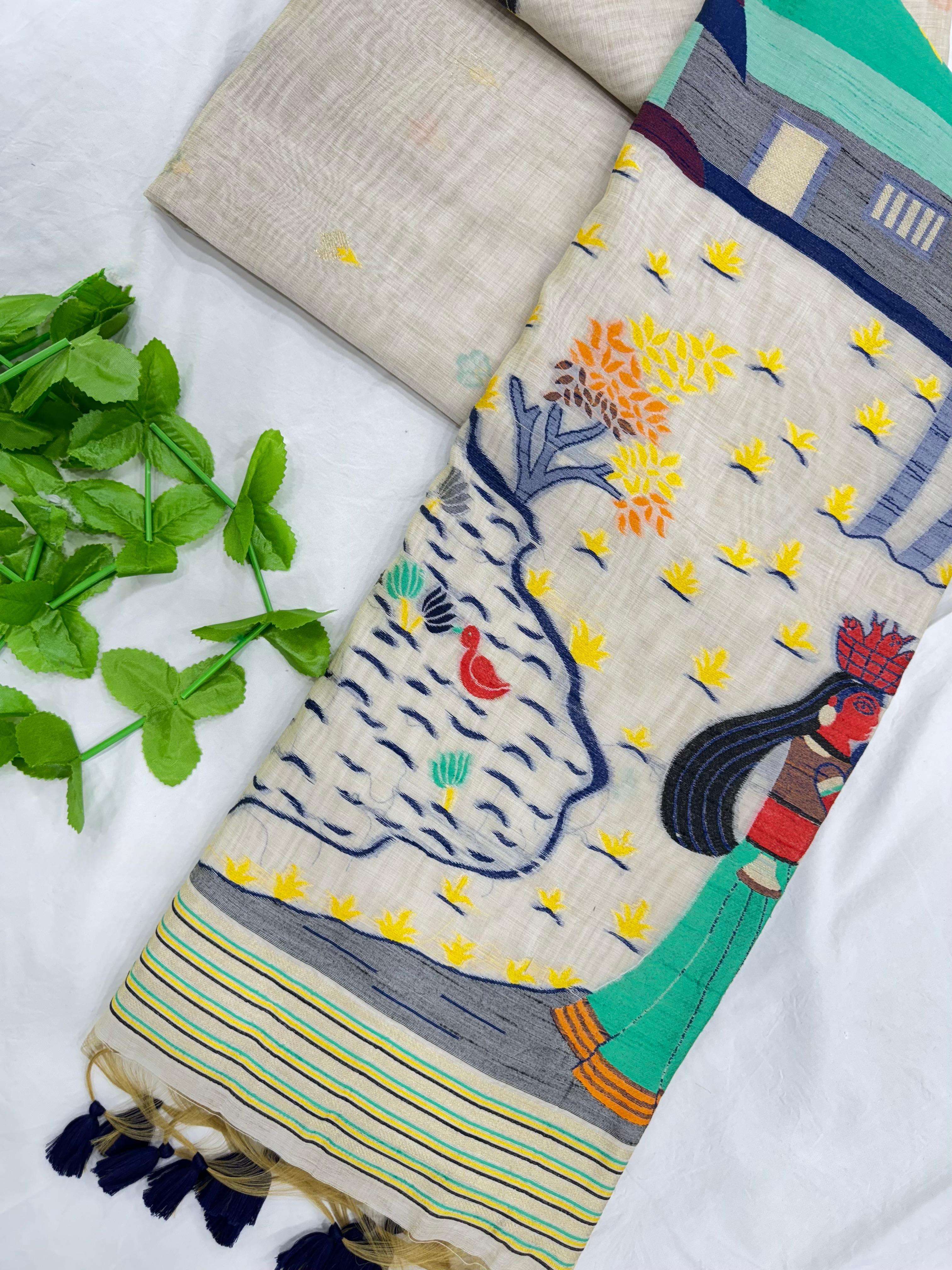 Rutrang🌹 Muga Cotton 250 – Jamdani Resham Weaving Saree