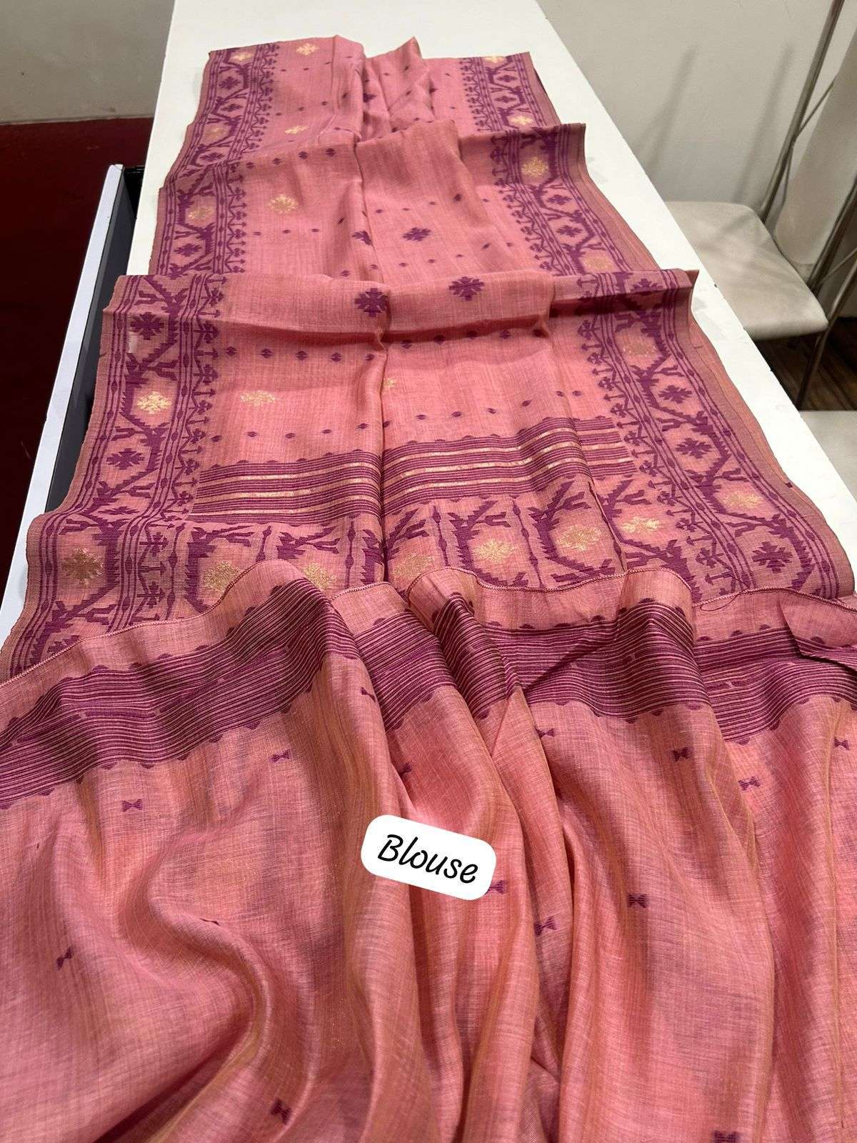 Elevate your ethnic wardrobe with Rutrang Premium Soft Jamdani in Muga Cotton. Crafted from premium soft Muga cotton, this saree features a graceful Jamdani concept with a contrast weaving border and all-over delicate woven butties, giving it a rich yet elegant look. Paired with a running blouse piece, it’s perfect for festive wear, casual elegance, and special occasions. ✔️ Premium soft Muga cotton fabric 📦 Ready Stock Available Book fast before it’s gone! 💖 |