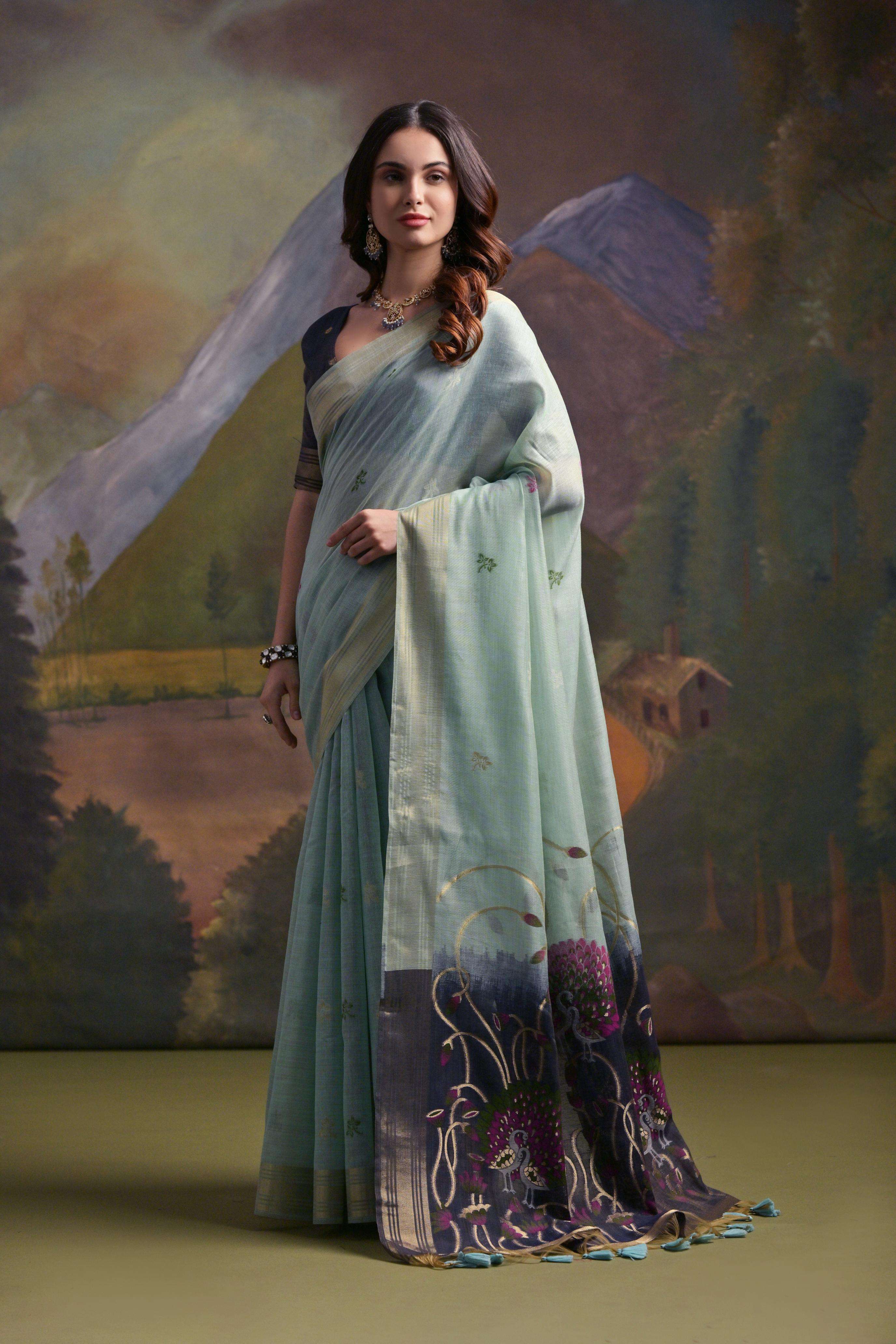 Rutrang ๐น Premium Soft Muga Silk Saree 406 | Peacock Resham Weaving with Zari Border