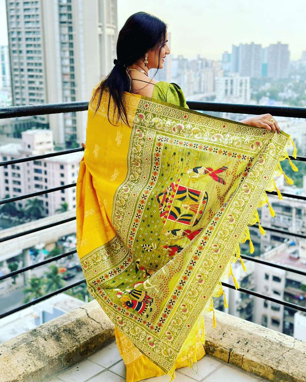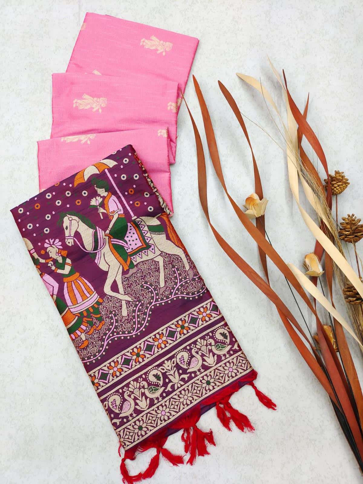 Rutrang🌹 Soft Raw Silk Two-Tone Weaving Saree with Antique Design