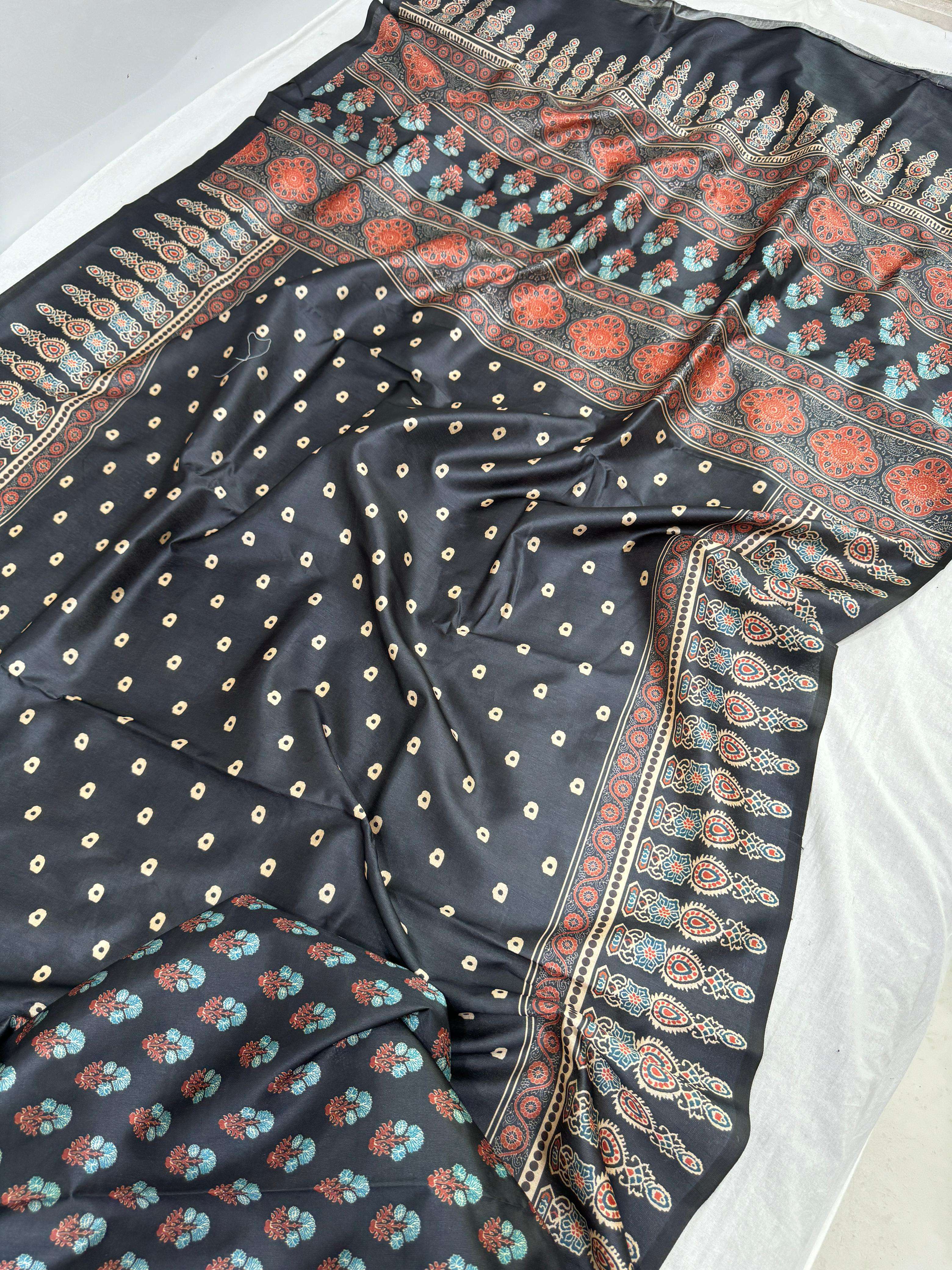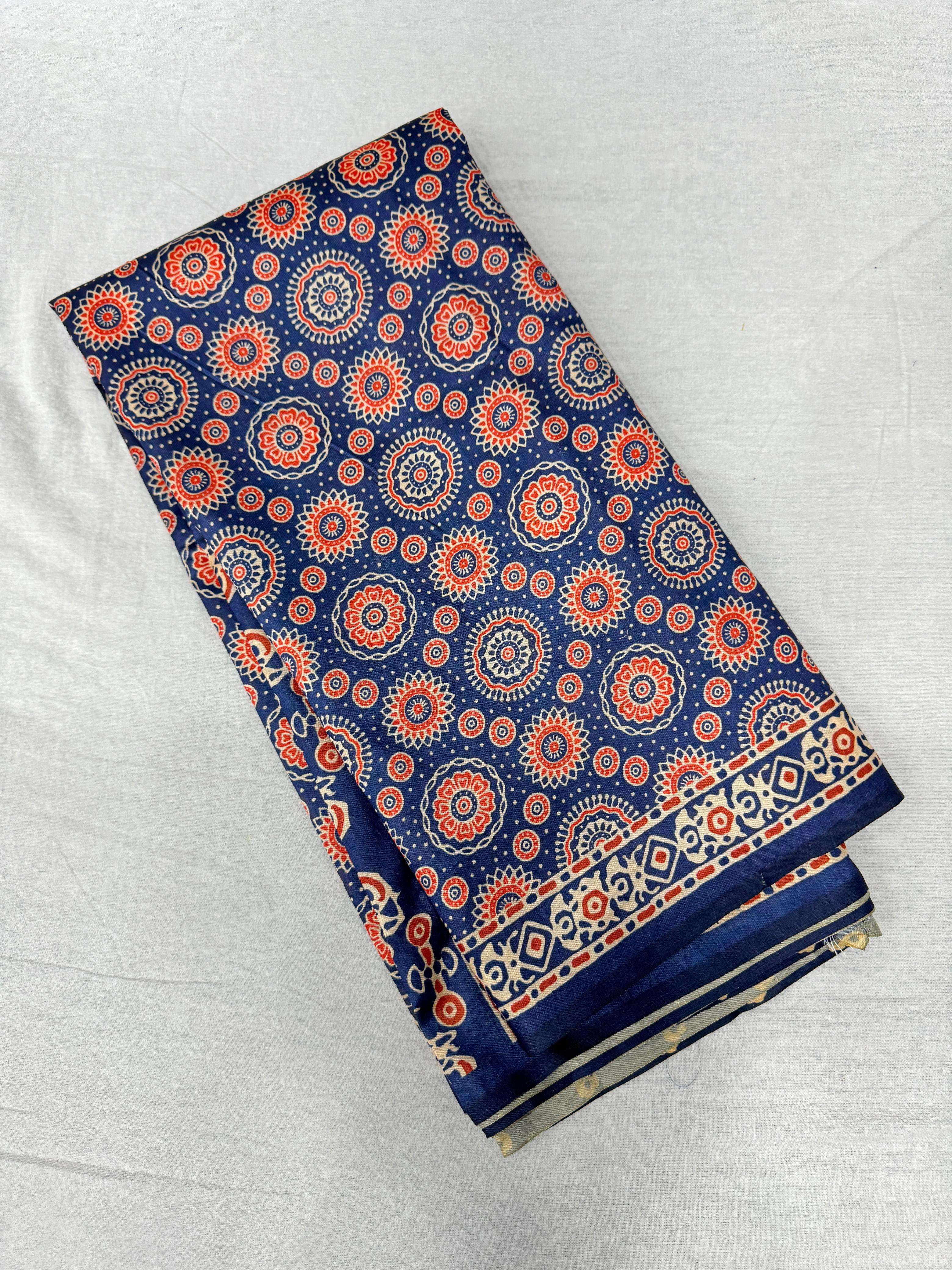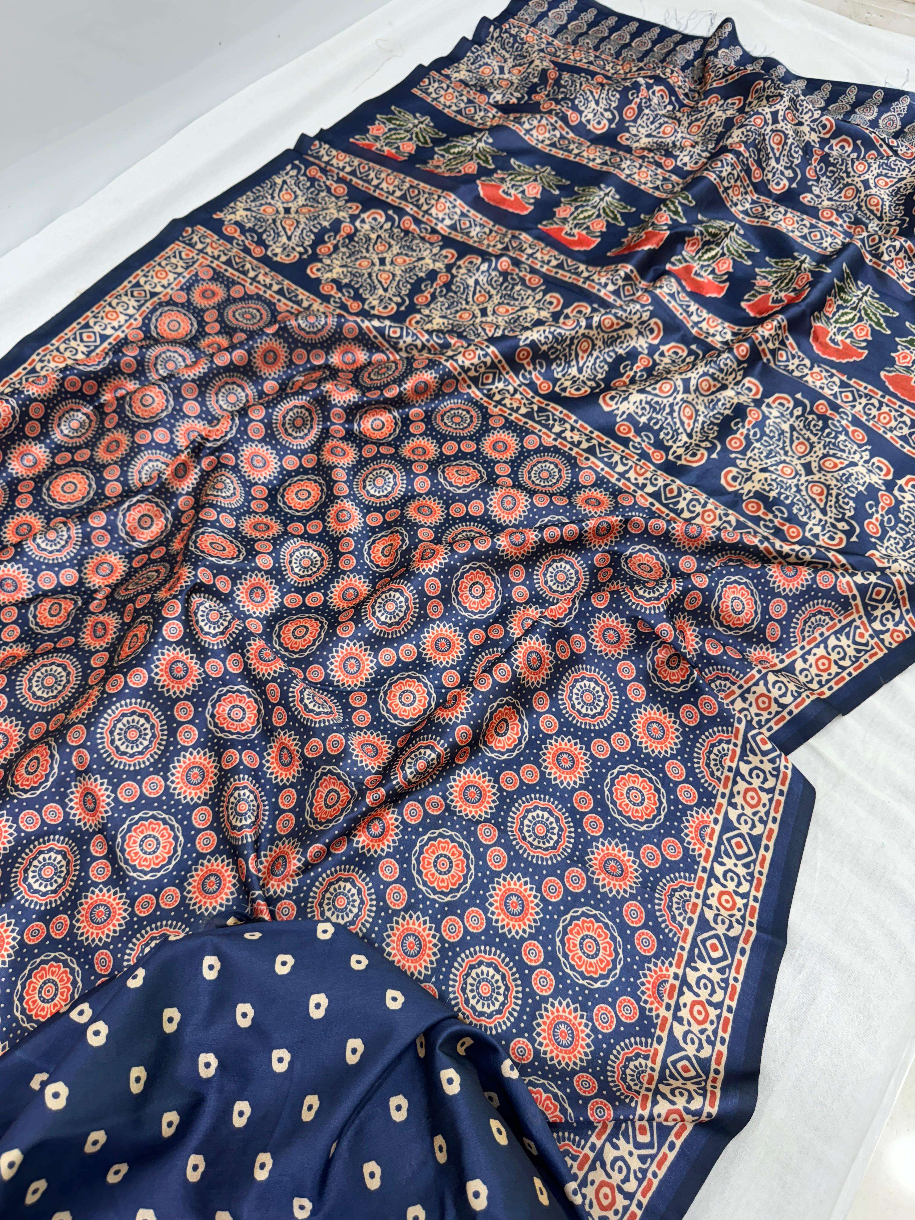 Rutrang VW Ajrakh – Elegant Ajrakh Print on Soft Tussar Silk Saree