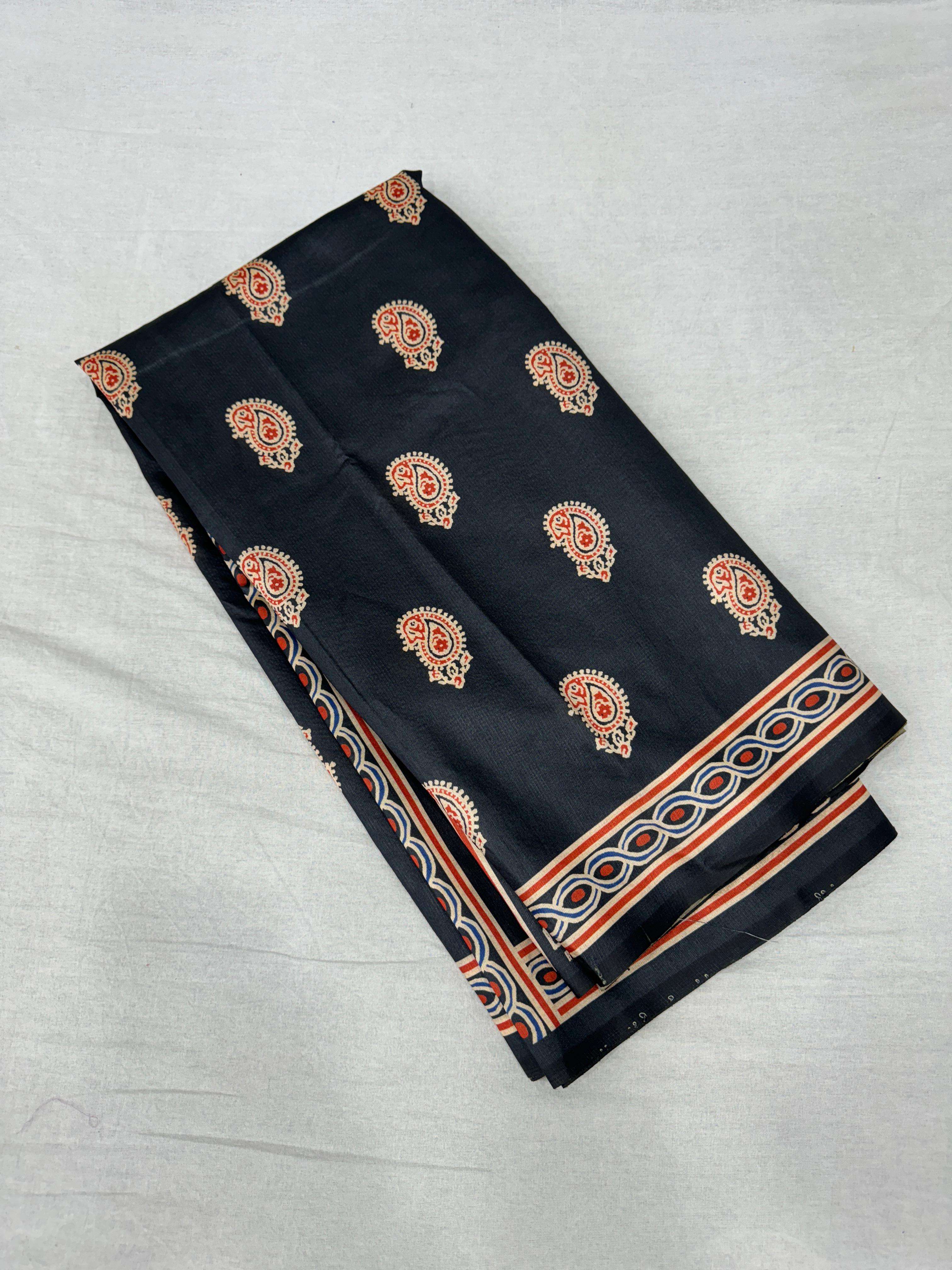 Presenting Rutrang VW Ajrakh, a stunning fusion of timeless tradition and refined elegance. Crafted in soft Tussar silk, this saree features a unique Ajrakh print that highlights rich heritage artistry. The saree is beautifully finished with a traditional pallu, adding a classic charm, and comes with a matching classic blouse piece. Perfect for festive occasions, cultural gatherings, and graceful day wear. ✨ Ready Stock Available |