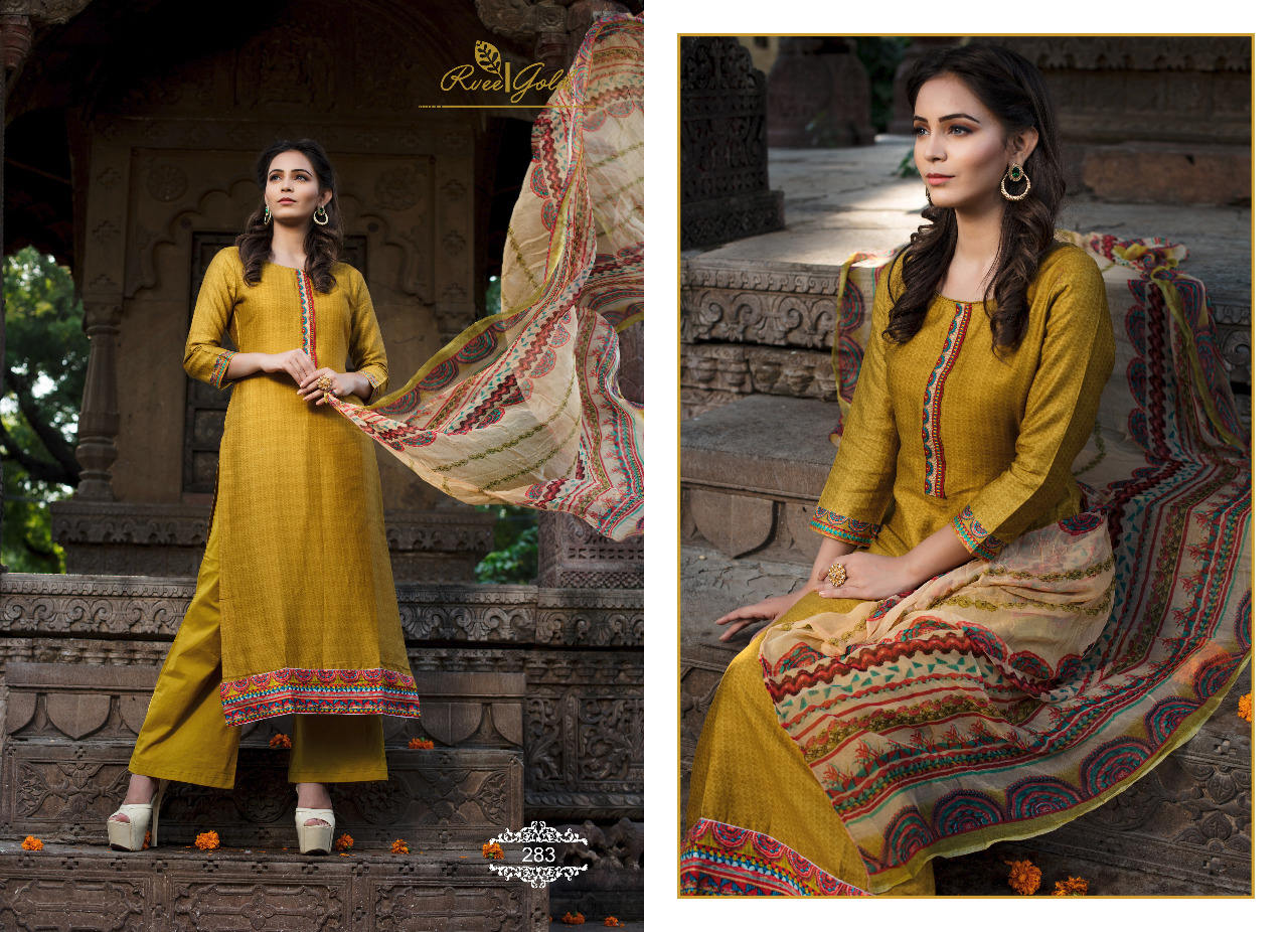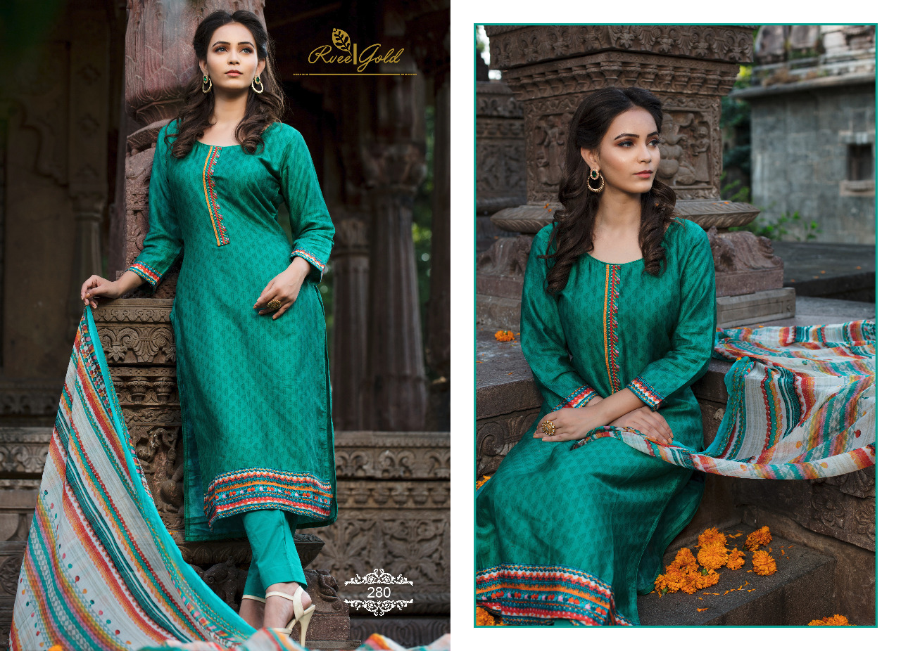 Buy Online Rvee Gold Earth 275 Series Jam Satin Print Emb Suits Saller 9 Pcs of Full Catalogue at Wholesale Price. Looking for Rvee Gold Earth 275 Series Jam Satin Print Emb Suits Saller Full Catalouge at Best Price? Buy Now Rvee Gold Earth 275 Series Jam Satin Print Emb Suits Saller at Wholesale Rate of Rs 10575 with Total 9 Pcs from authroized dealer and supplier of RVEE GOLD Brand. Cost of Each piece is just only Rs 1175 which is very low and affordable price to resale the product in your retail store ,This is Surat based Wholesale Supplier & Dealer of RVEE GOLD Brand. Click on Brand name to Know more about RVEE GOLD Brand's products.Call or Whatsapp on 9898838984 for booking or enquiry