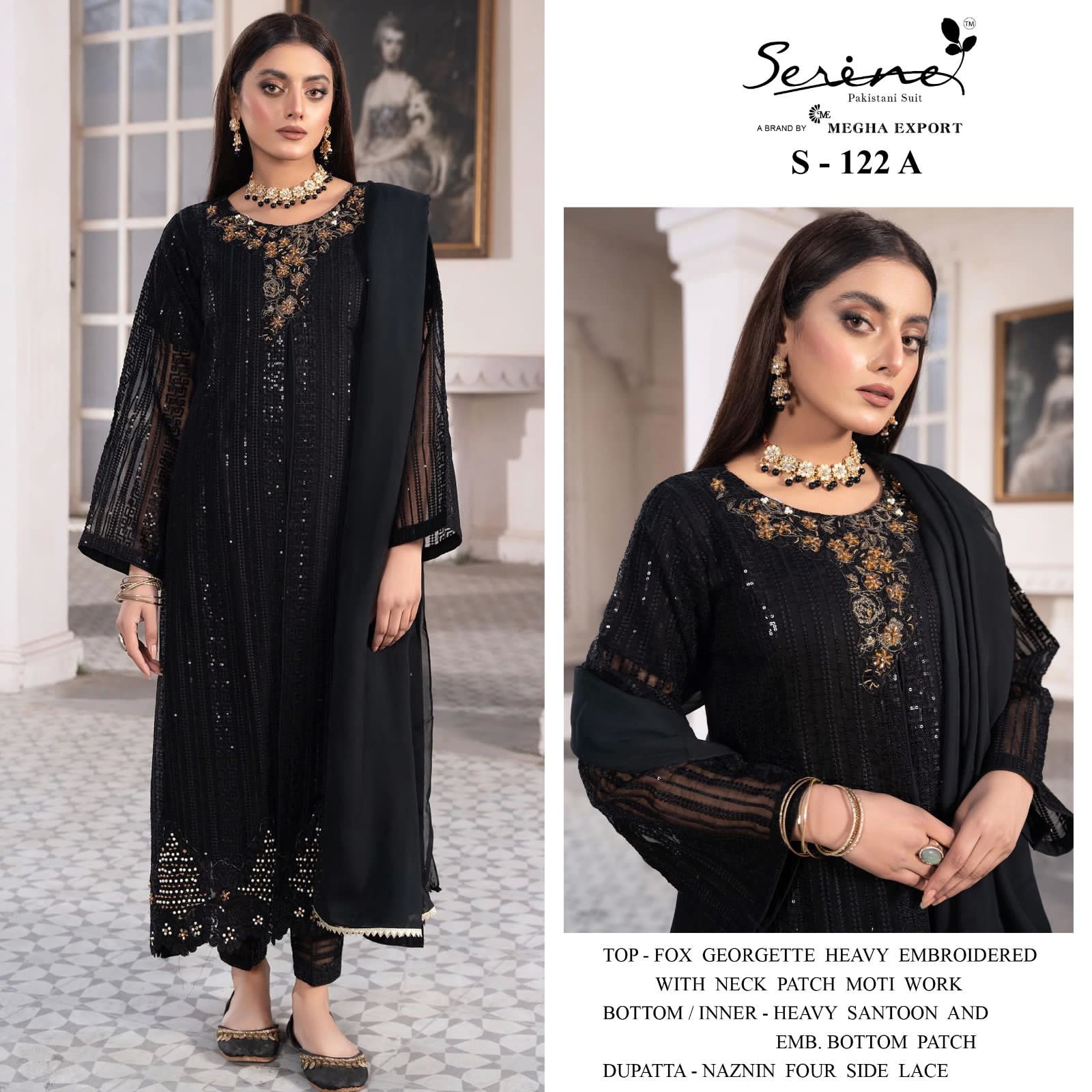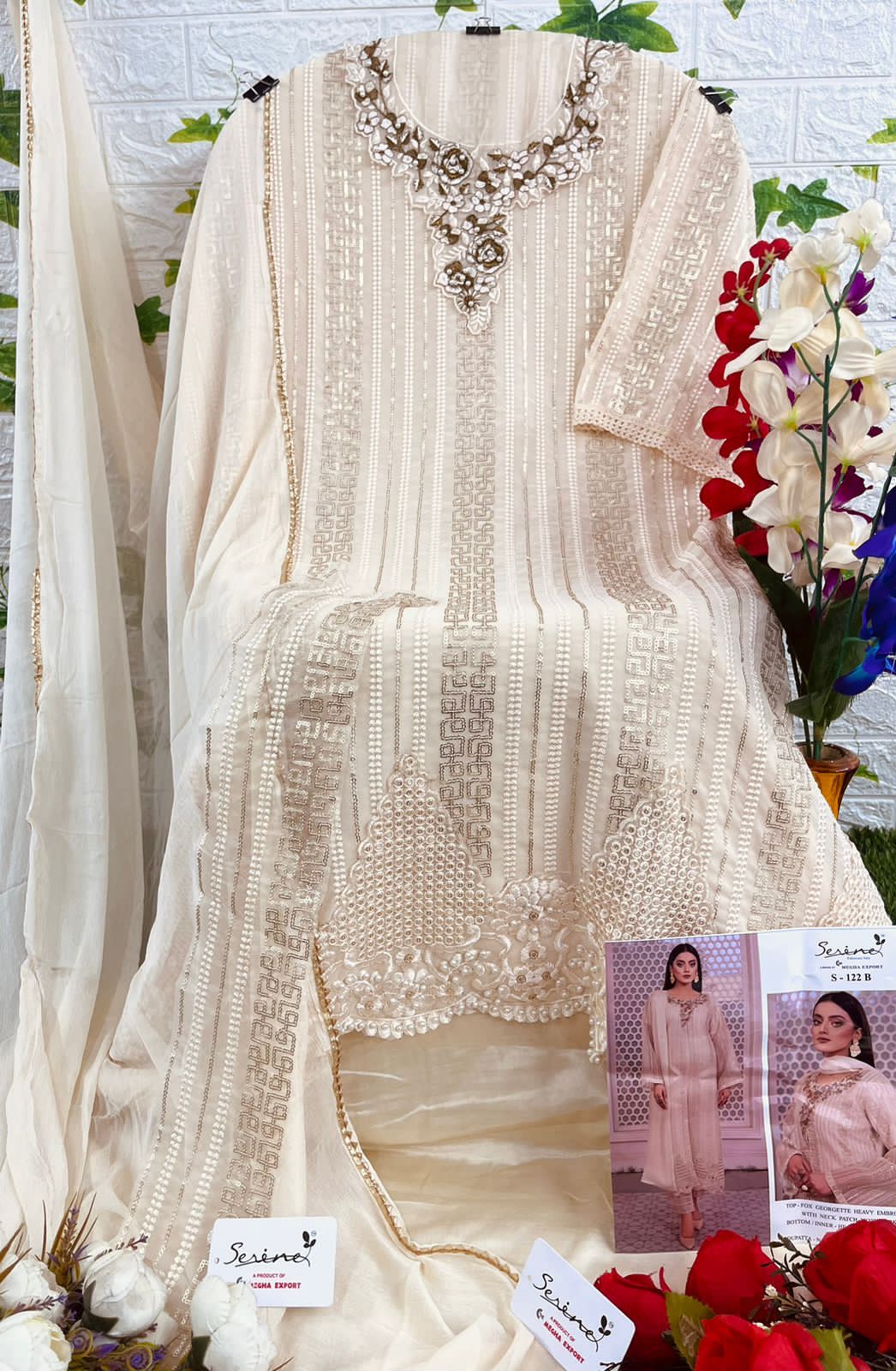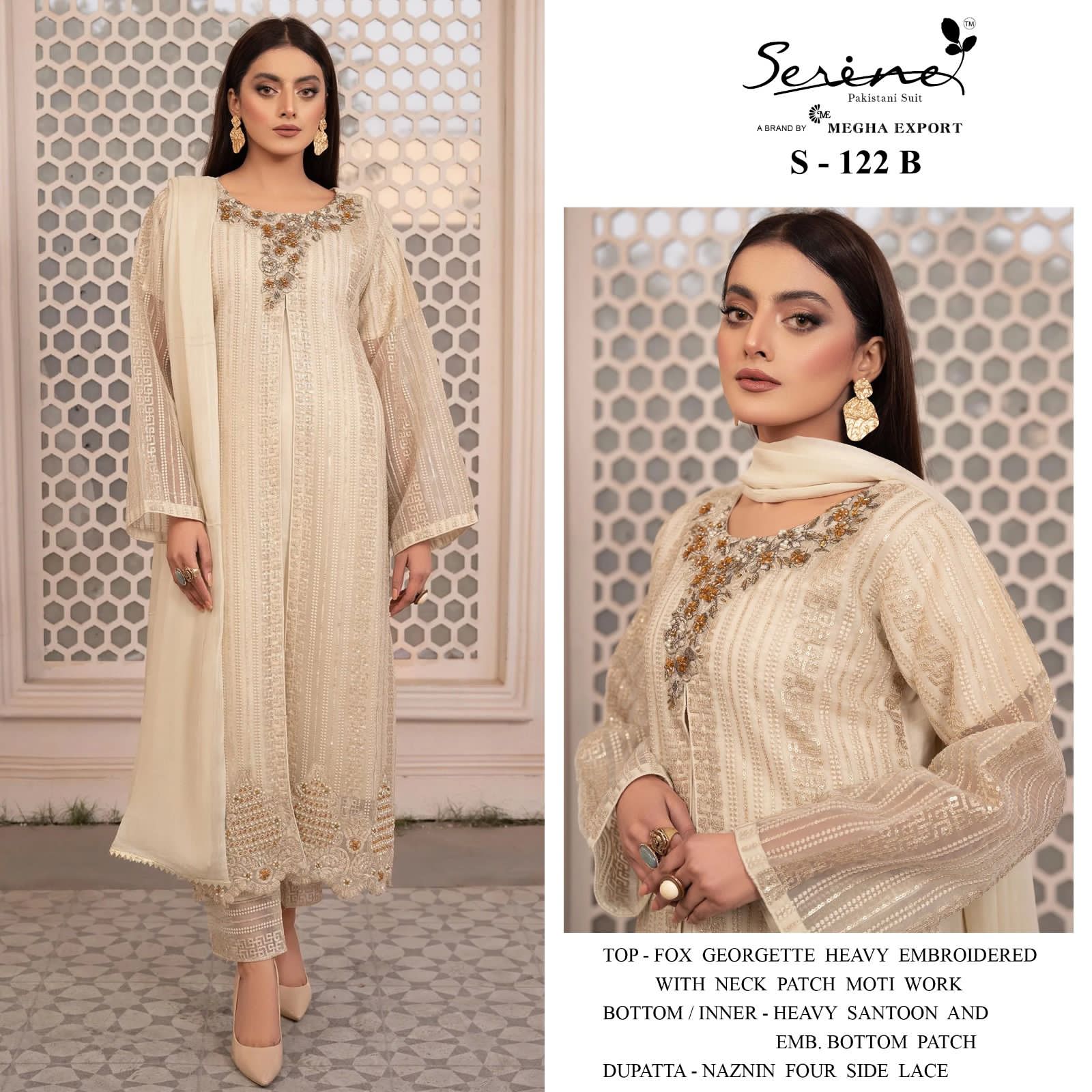 Buy Online S 122 Ab By Serine Georgette Pakistani Suits 2 Pcs of Full Catalogue at Wholesale Price. Looking for S 122 Ab By Serine Georgette Pakistani Suits Full Catalouge at Best Price? Buy Now S 122 Ab By Serine Georgette Pakistani Suits at Wholesale Rate of Rs 2398 with Total 2 Pcs from authroized dealer and supplier of Brand. Cost of Each piece is just only Rs 1199 which is very low and affordable price to resale the product in your retail store ,This is Surat based Wholesale Supplier & Dealer of Brand. Click on Brand name to Know more about Brand's products.Call or Whatsapp on 9898838984 for booking or enquiry