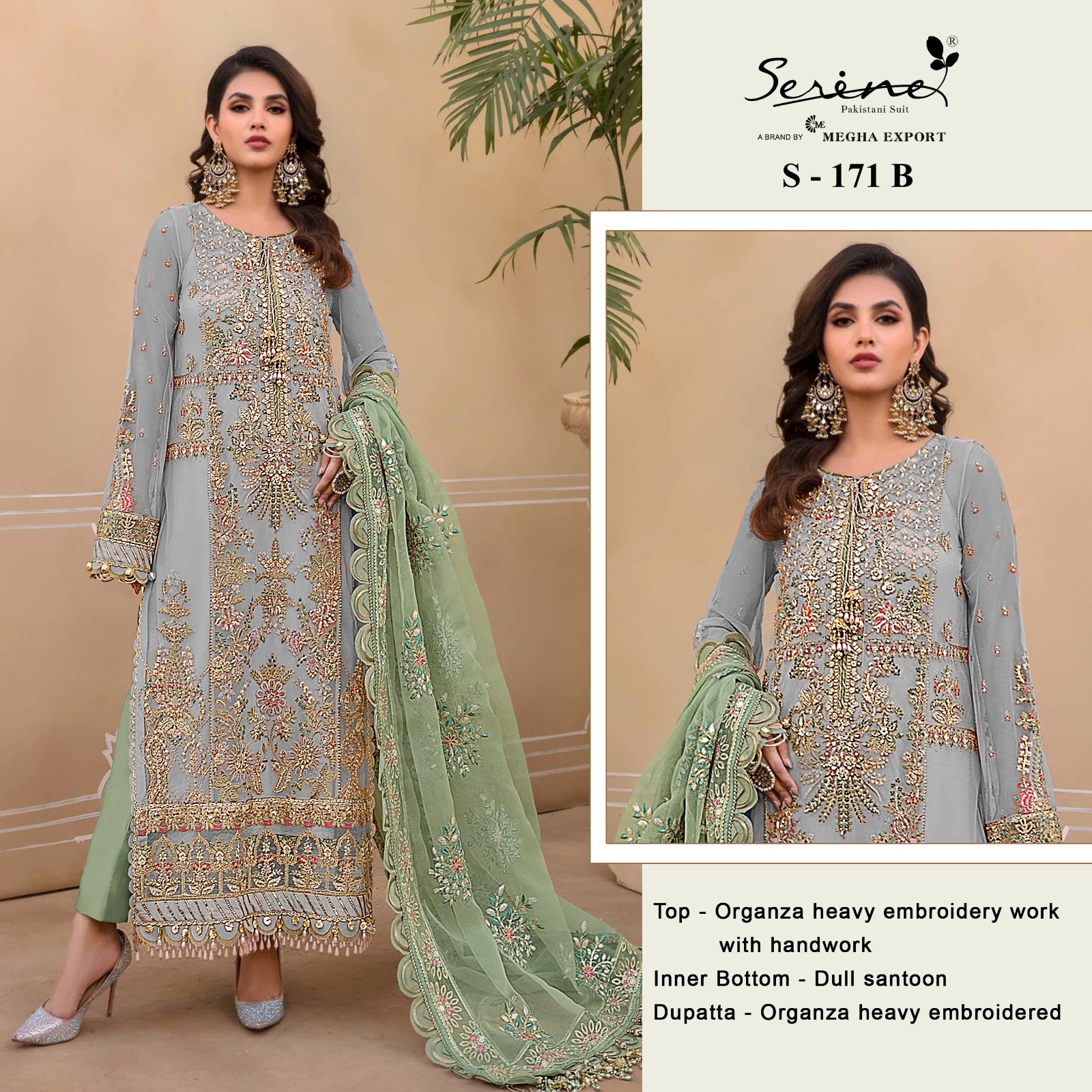 Buy Online S 171 By Serine Organza Embroidery Work Designer Suits 4 Pcs of Full Catalogue at Wholesale Price. Looking for S 171 By Serine Organza Embroidery Work Designer Suits Full Catalouge at Best Price? Buy Now S 171 By Serine Organza Embroidery Work Designer Suits at Wholesale Rate of Rs 5396 with Total 4 Pcs from authroized dealer and supplier of Brand. Cost of Each piece is just only Rs 1349 which is very low and affordable price to resale the product in your retail store ,This is Surat based Wholesale Supplier & Dealer of Brand. Click on Brand name to Know more about Brand's products.Call or Whatsapp on 9898838984 for booking or enquiry
