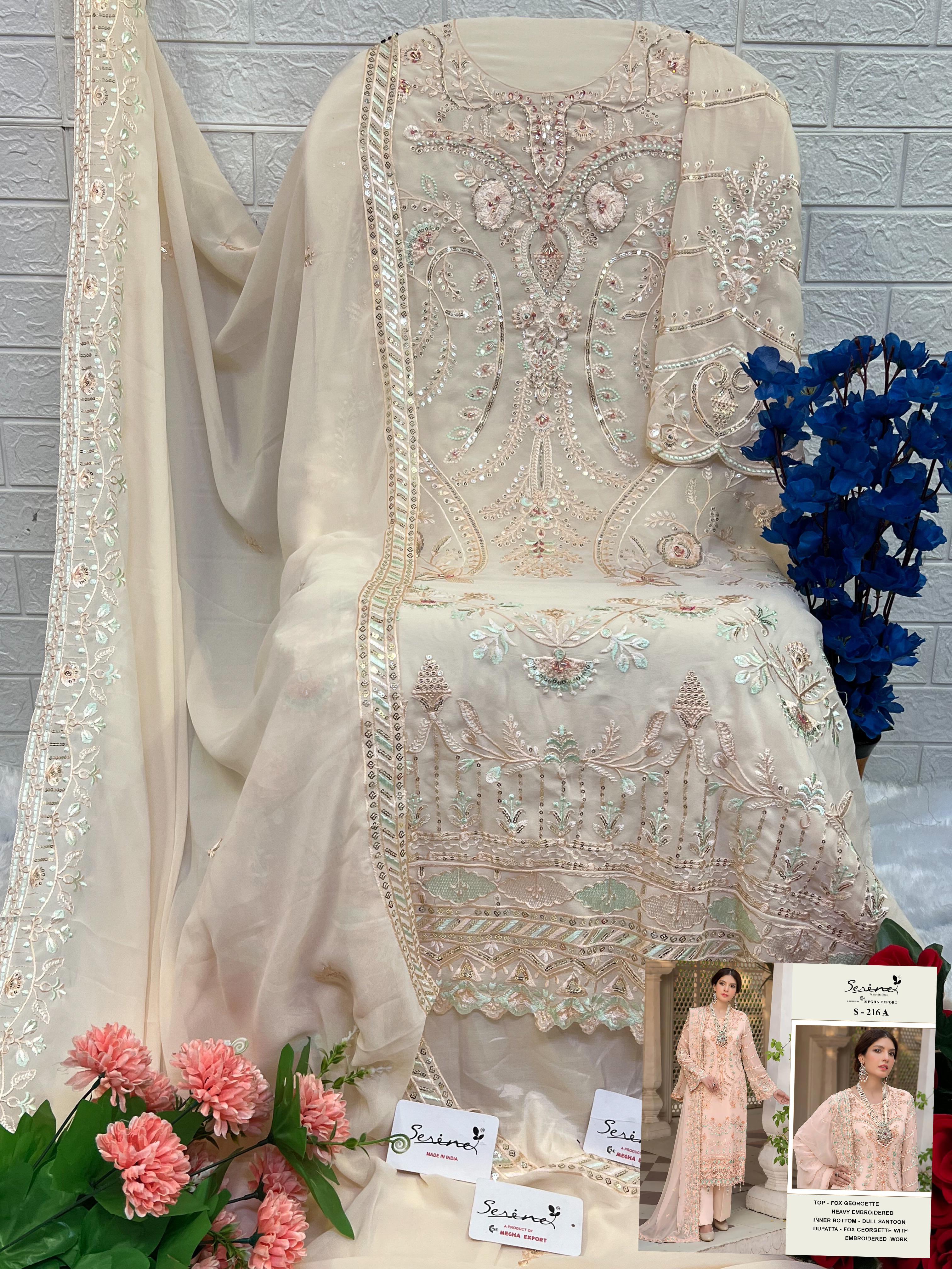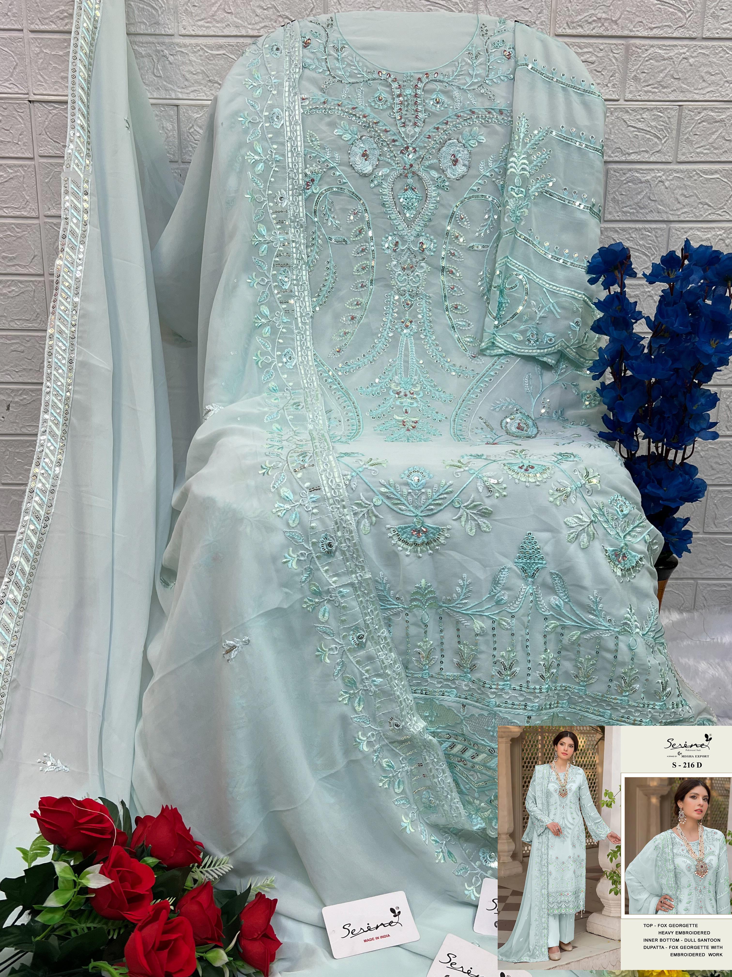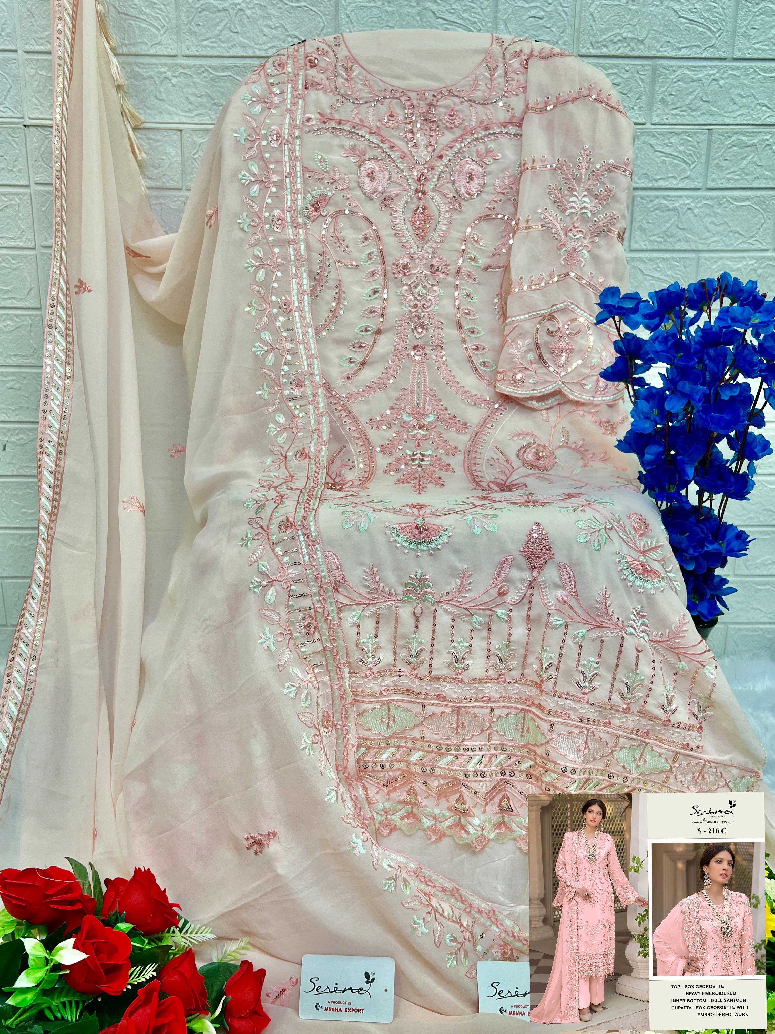 S 216 B To E By Serine Georgette Embroidered Hand Work Pakistani Concept