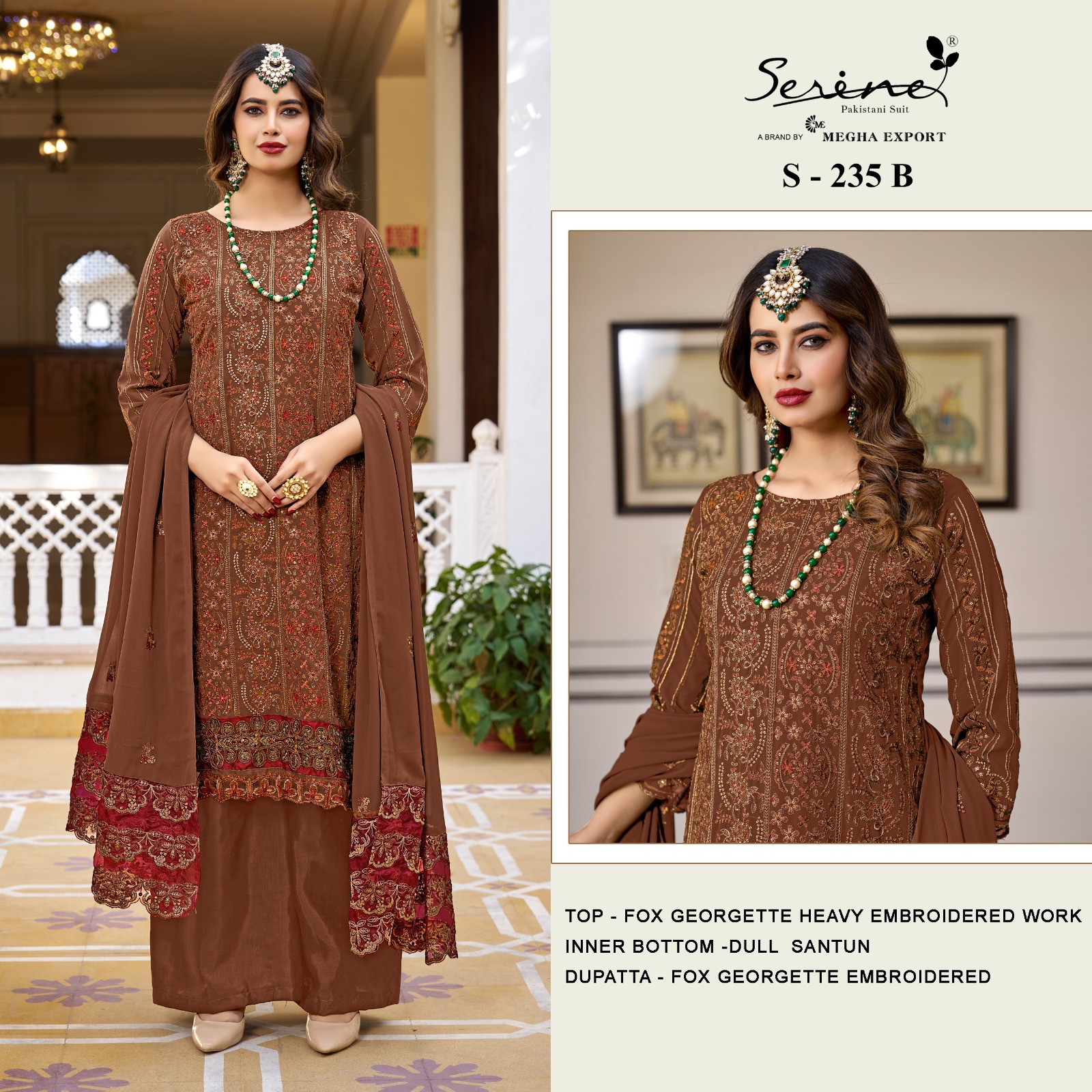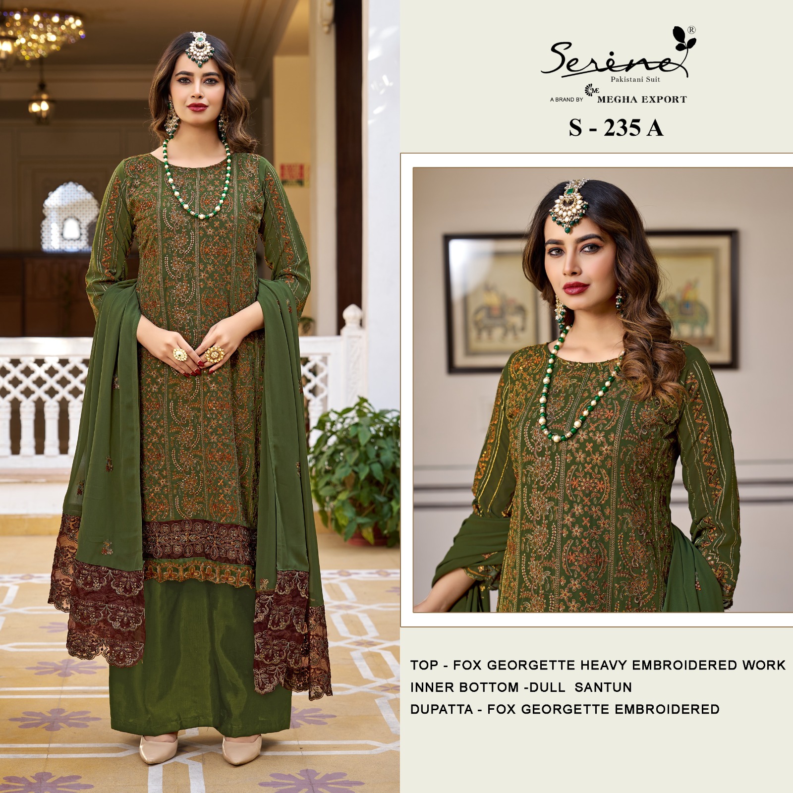 Buy Online S 235 A To D By Serine Georgette Pakistani Suits 4 Pcs of Full Catalogue at Wholesale Price. Looking for S 235 A To D By Serine Georgette Pakistani Suits Full Catalouge at Best Price? Buy Now S 235 A To D By Serine Georgette Pakistani Suits at Wholesale Rate of Rs 5596 with Total 4 Pcs from authroized dealer and supplier of Brand. Cost of Each piece is just only Rs 1399 which is very low and affordable price to resale the product in your retail store ,This is Surat based Wholesale Supplier & Dealer of Brand. Click on Brand name to Know more about Brand's products.Call or Whatsapp on 9898838984 for booking or enquiry
