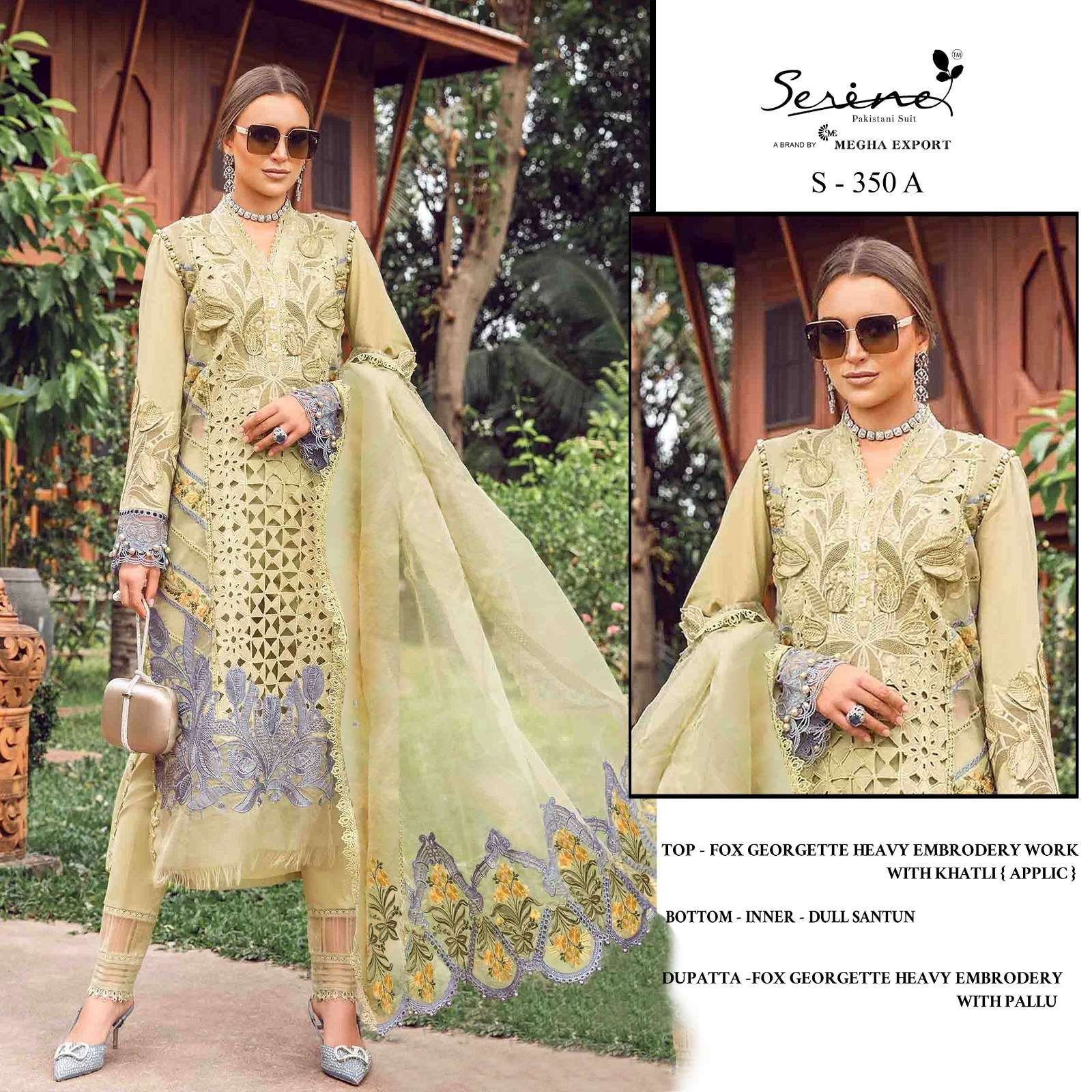 Buy Online S 350 BY SERINE EID COLLECTION 4 Pcs of Full Catalogue at Wholesale Price. Looking for S 350 BY SERINE EID COLLECTION Full Catalouge at Best Price? Buy Now S 350 BY SERINE EID COLLECTION at Wholesale Rate of Rs 5796 with Total 4 Pcs from authroized dealer and supplier of Serine Brand. Cost of Each piece is just only Rs 1449 which is very low and affordable price to resale the product in your retail store ,This is Surat based Wholesale Supplier & Dealer of Serine Brand. Click on Brand name to Know more about Serine Brand's products.Call or Whatsapp on 9898838984 for booking or enquiry