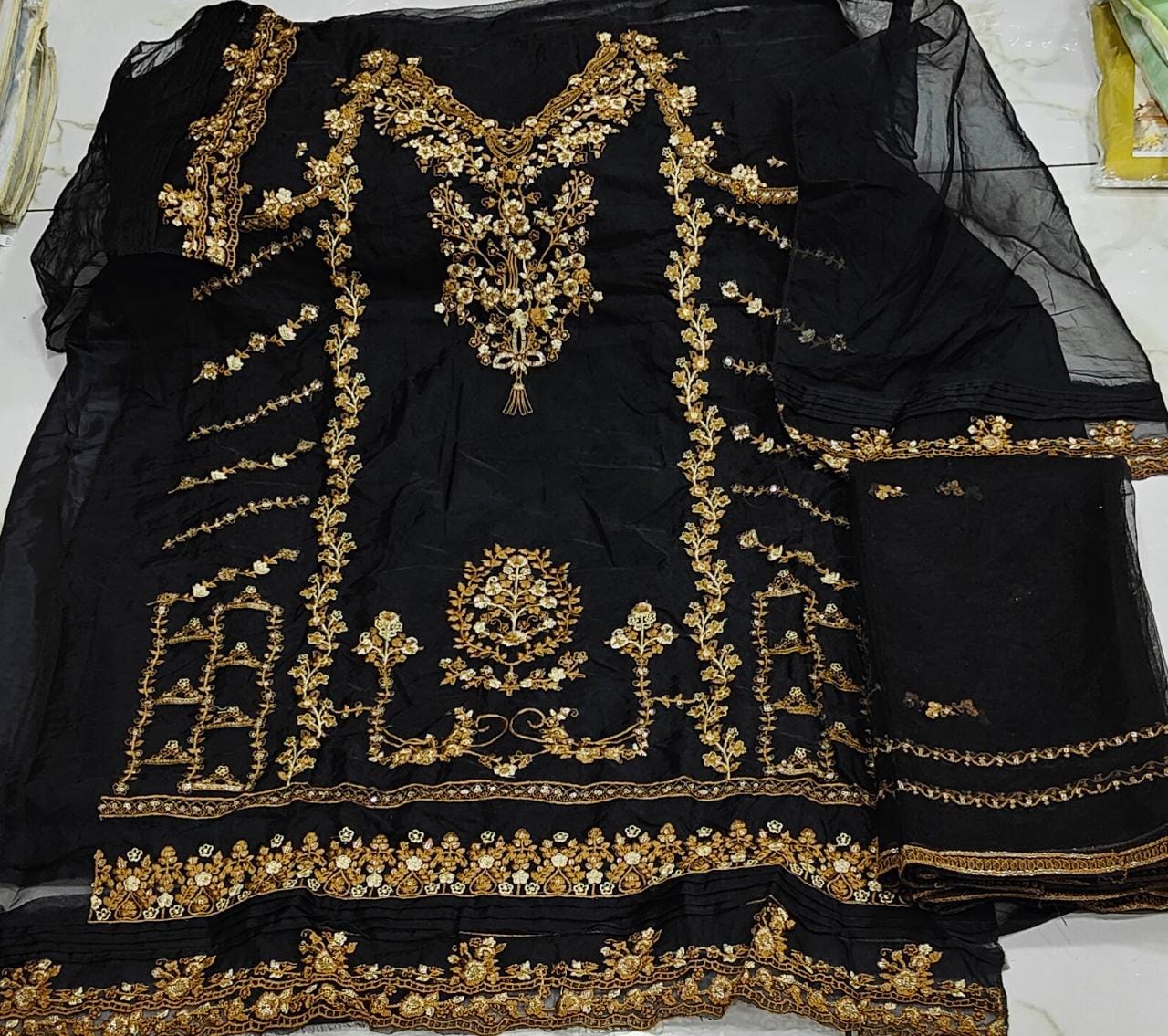 Shree fab present S 763 - black colour Top organza with embroidery Duptta net with embroidery Bottam inner santoon Rate -1050/- Gst ship extra 100+ SINGLE |