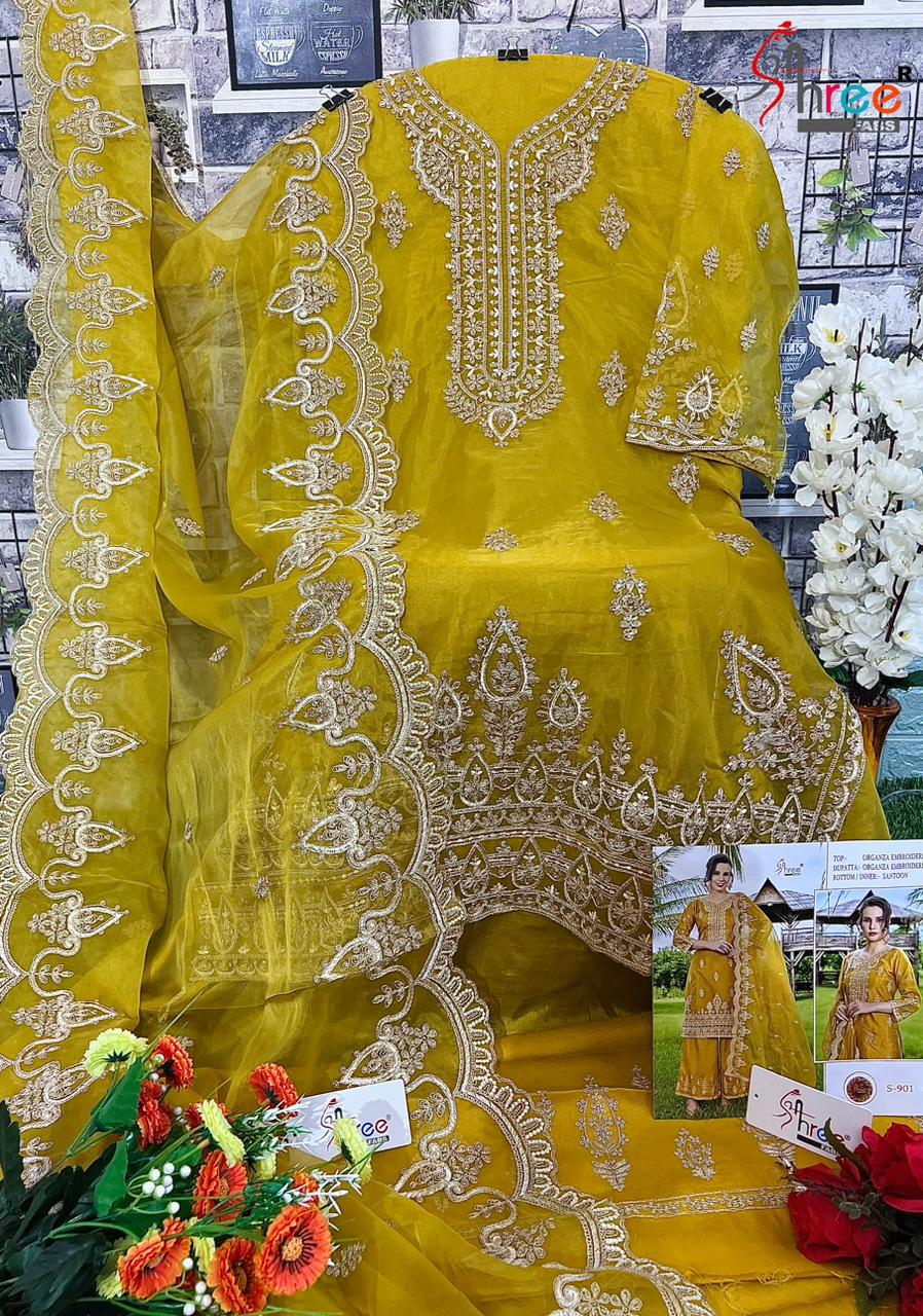 DESIGN NO.- S 901 & 902 FABRICS Top: heavy organza with heavy embroidery Bottom: dull Santoon(inner) Dupatta *: organza * with embroidery Rate *~ 1150/- * Special pouch packing* Note - bottam fancy self embroidery* shree fab surat 100+ SINGLE |