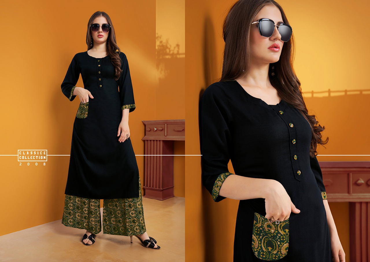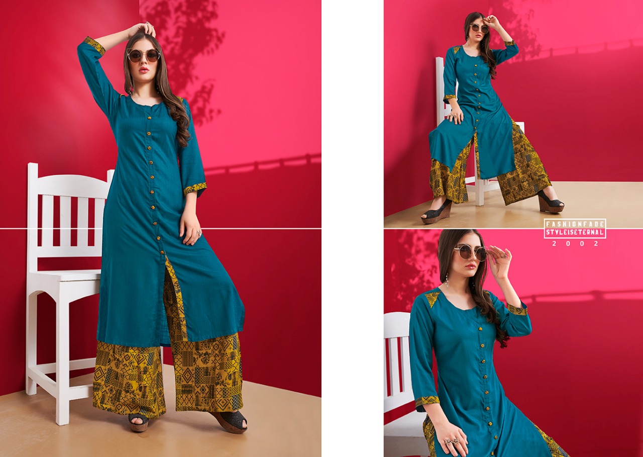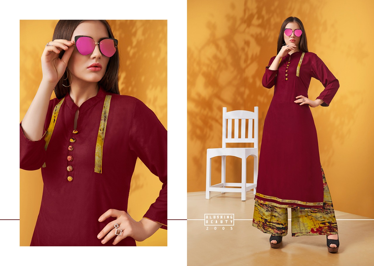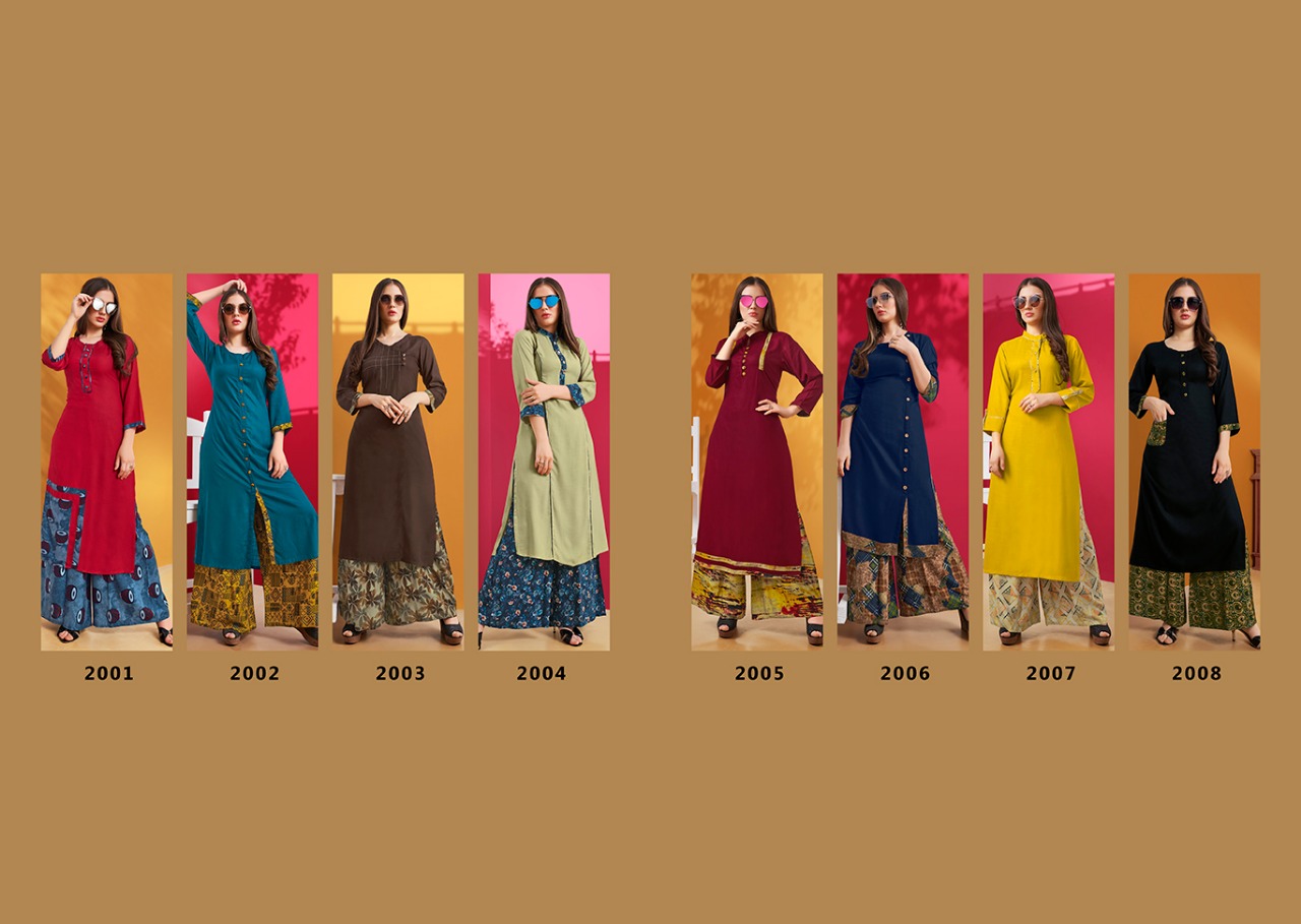 Buy Online S More Baleno Vol 2 2001 Series Designer Reyon Kurti With Plazzo Catlog Wholesale Dealer Surat 8 Pcs of Full Catalogue at Wholesale Price. Looking for S More Baleno Vol 2 2001 Series Designer Reyon Kurti With Plazzo Catlog Wholesale Dealer Surat Full Catalouge at Best Price? Buy Now S More Baleno Vol 2 2001 Series Designer Reyon Kurti With Plazzo Catlog Wholesale Dealer Surat at Wholesale Rate of Rs 5600 with Total 8 Pcs from authroized dealer and supplier of S MORE FASHION Brand. Cost of Each piece is just only Rs 700 which is very low and affordable price to resale the product in your retail store ,This is Surat based Wholesale Supplier & Dealer of S MORE FASHION Brand. Click on Brand name to Know more about S MORE FASHION Brand's products.Call or Whatsapp on 9898838984 for booking or enquiry