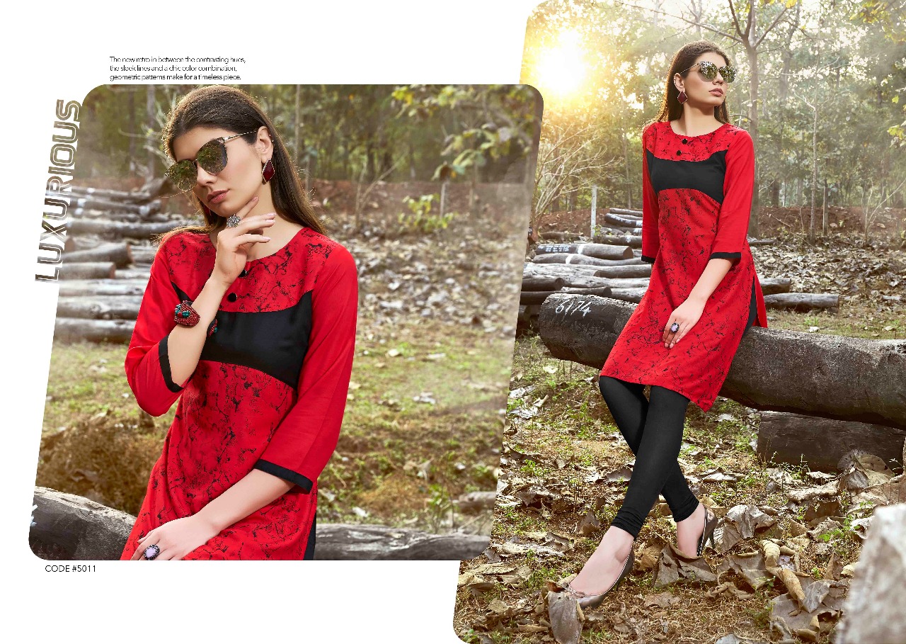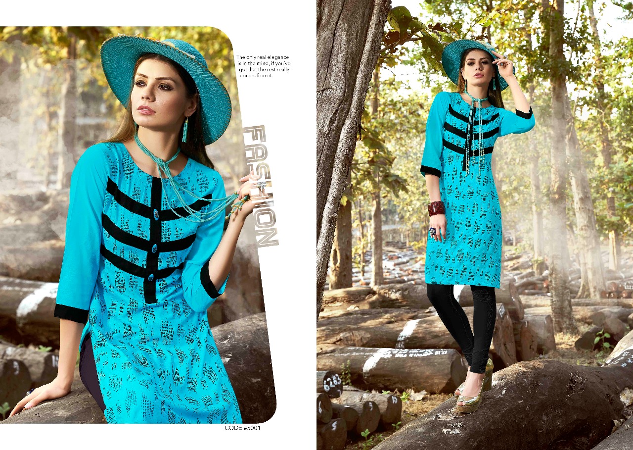 S More Z Black Vol 5 5001 Series Rayon Printed Kurti Saller