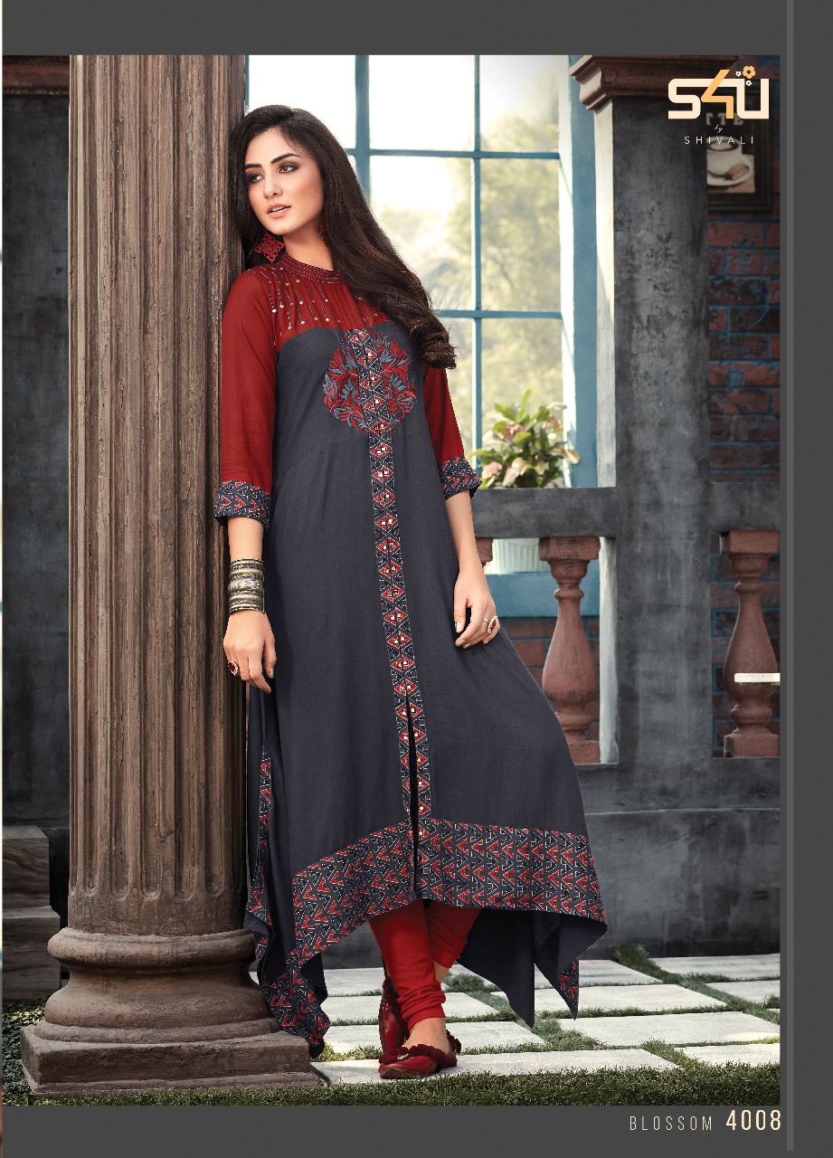 S4u Blossom Vol 4 4001 Series Fancy Kurties Catalog Supplier
