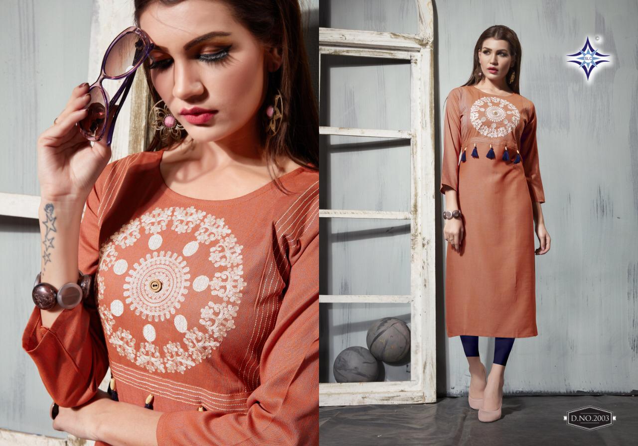 Saachi Vol 2 By Slc Sai Latest Creation 2001 Series Fancy Reyon Kurti Catlog Wholesaler Surat