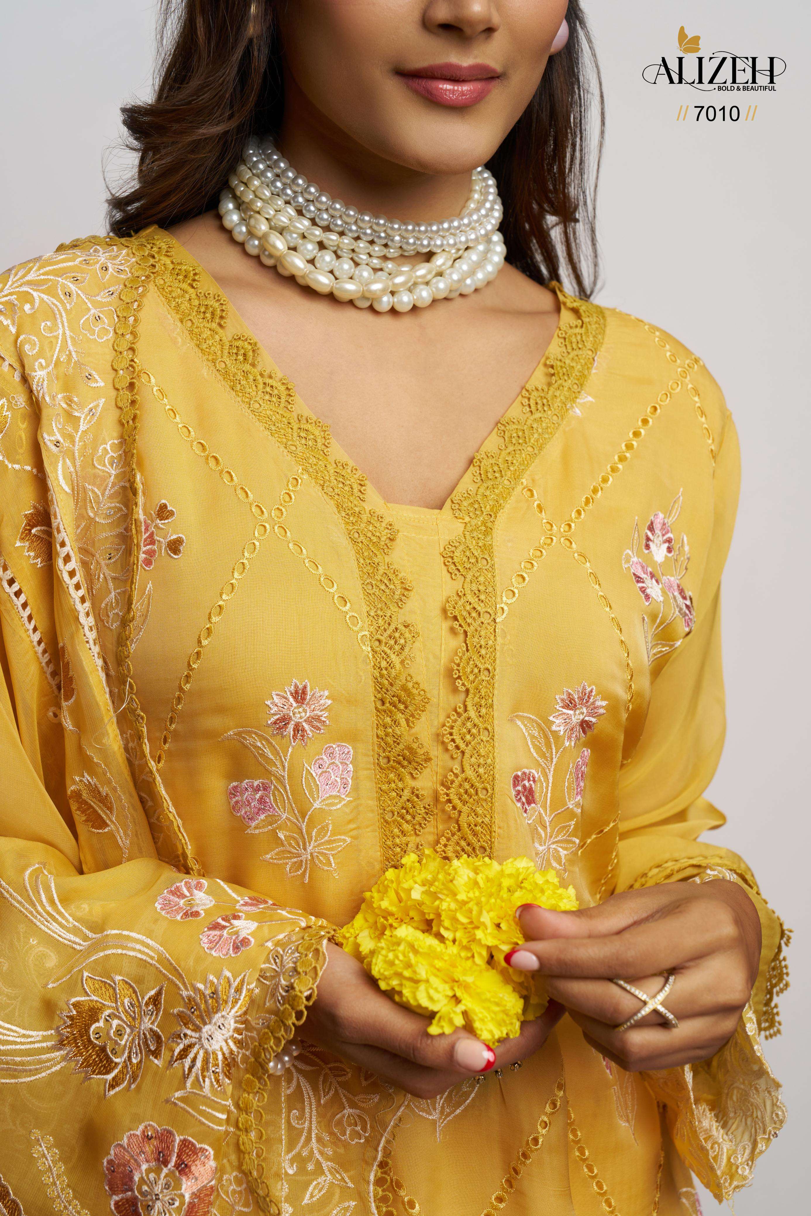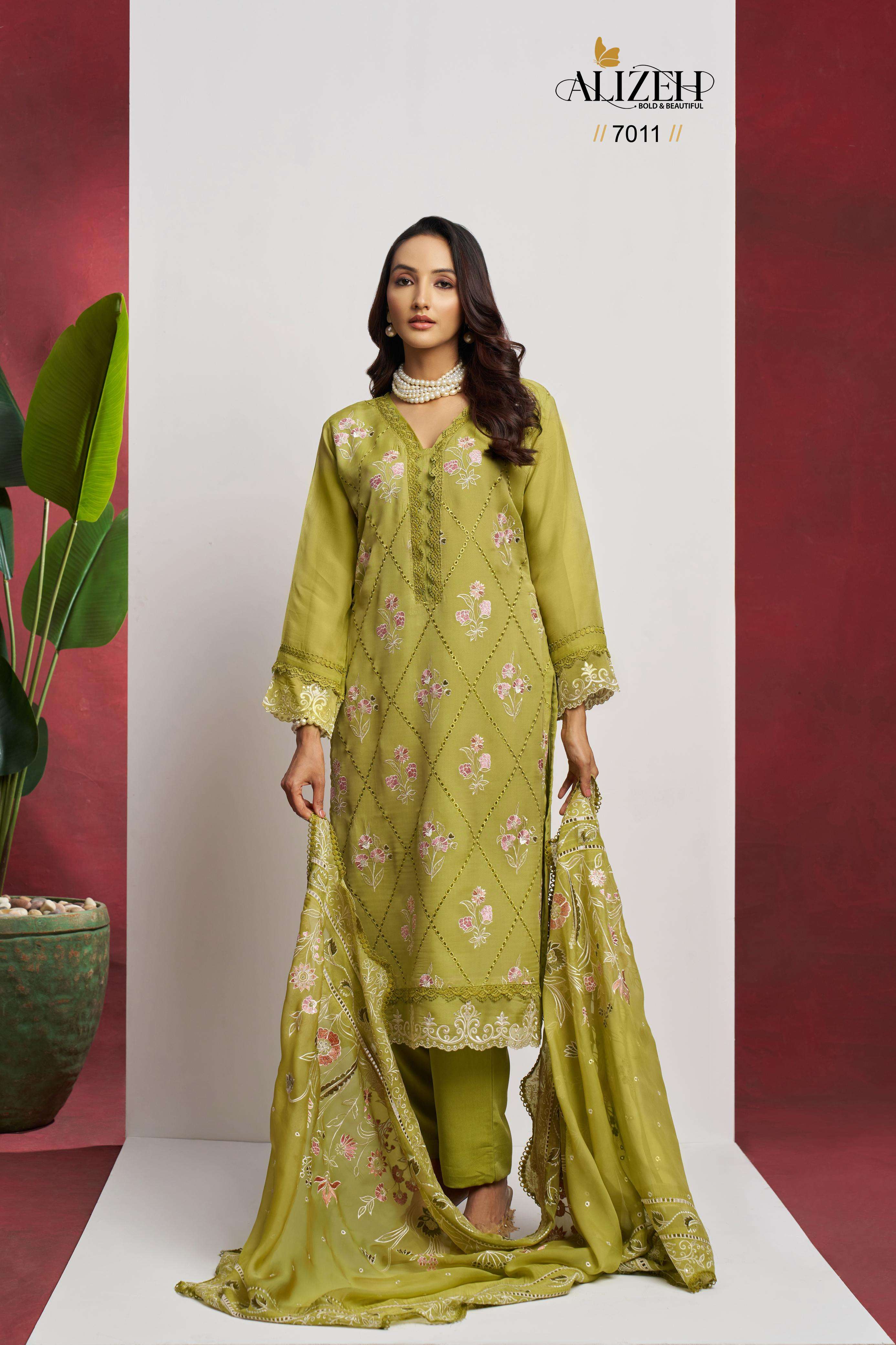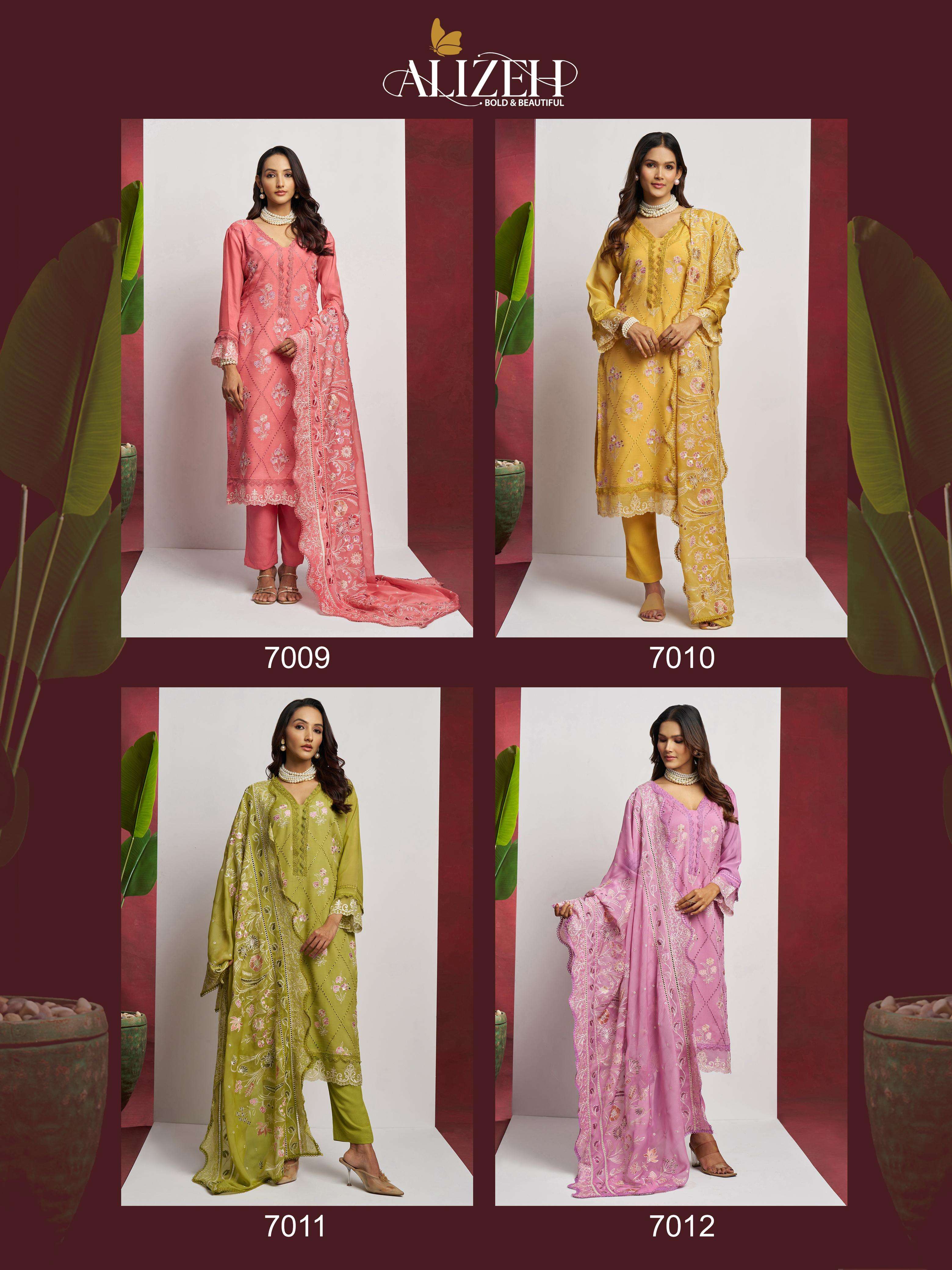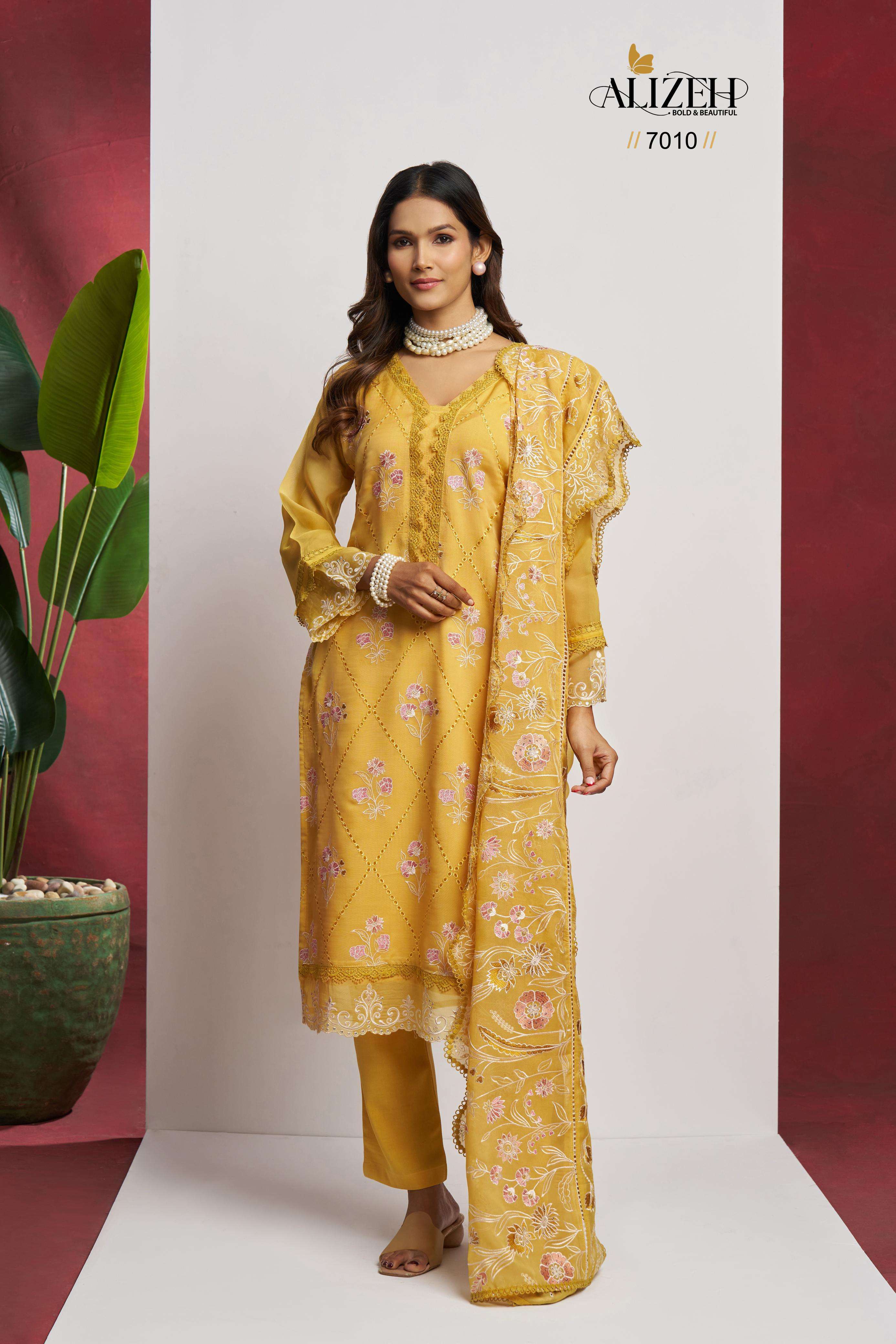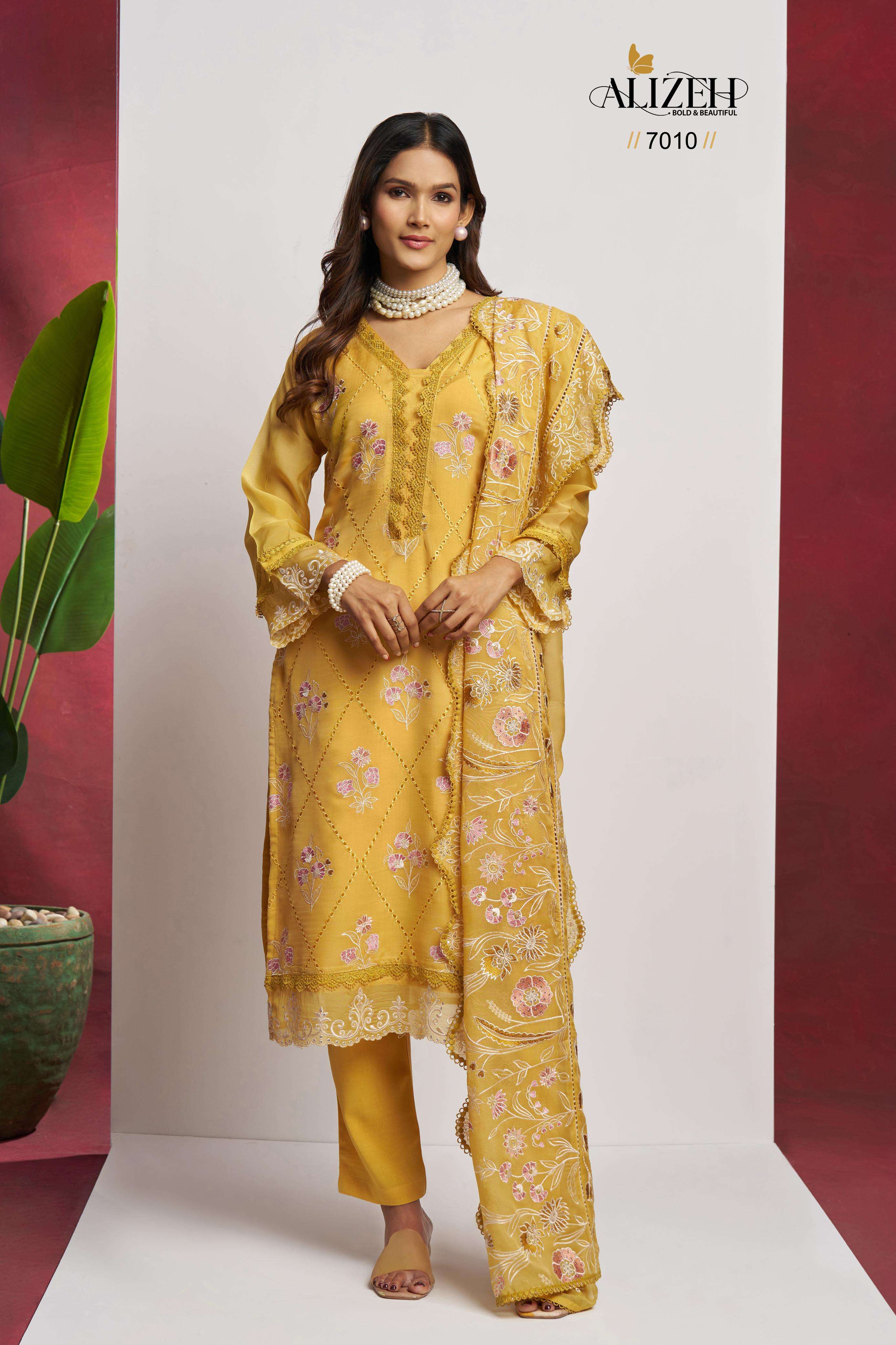 Buy Online SAADGI by Alizeh Ethnic Wear organza suit collection manufacturer surat 4 Pcs of Full Catalogue at Wholesale Price. Looking for SAADGI by Alizeh Ethnic Wear organza suit collection manufacturer surat Full Catalouge at Best Price? Buy Now SAADGI by Alizeh Ethnic Wear organza suit collection manufacturer surat at Wholesale Rate of Rs 9180 with Total 4 Pcs from authroized dealer and supplier of Alizeh Official Brand. Cost of Each piece is just only Rs 2295 which is very low and affordable price to resale the product in your retail store ,This is Surat based Wholesale Supplier & Dealer of Alizeh Official Brand. Click on Brand name to Know more about Alizeh Official Brand's products.Call or Whatsapp on 9898838984 for booking or enquiry