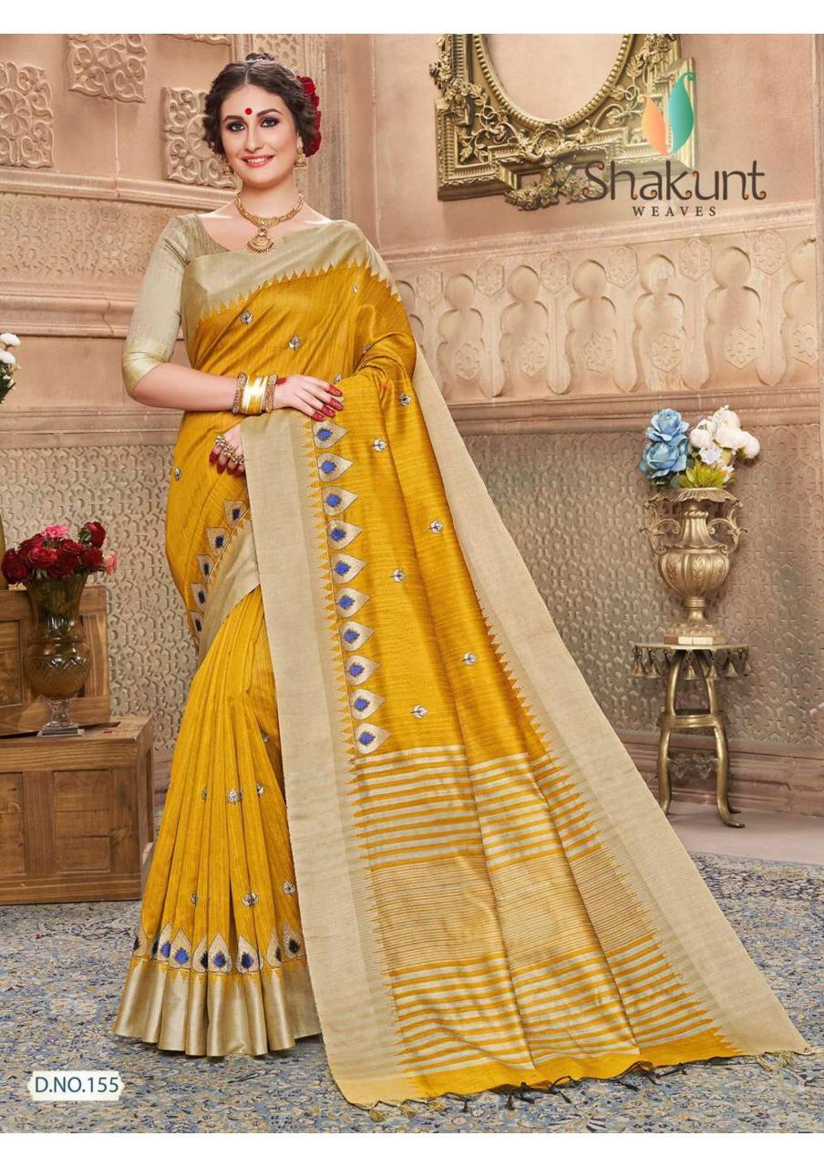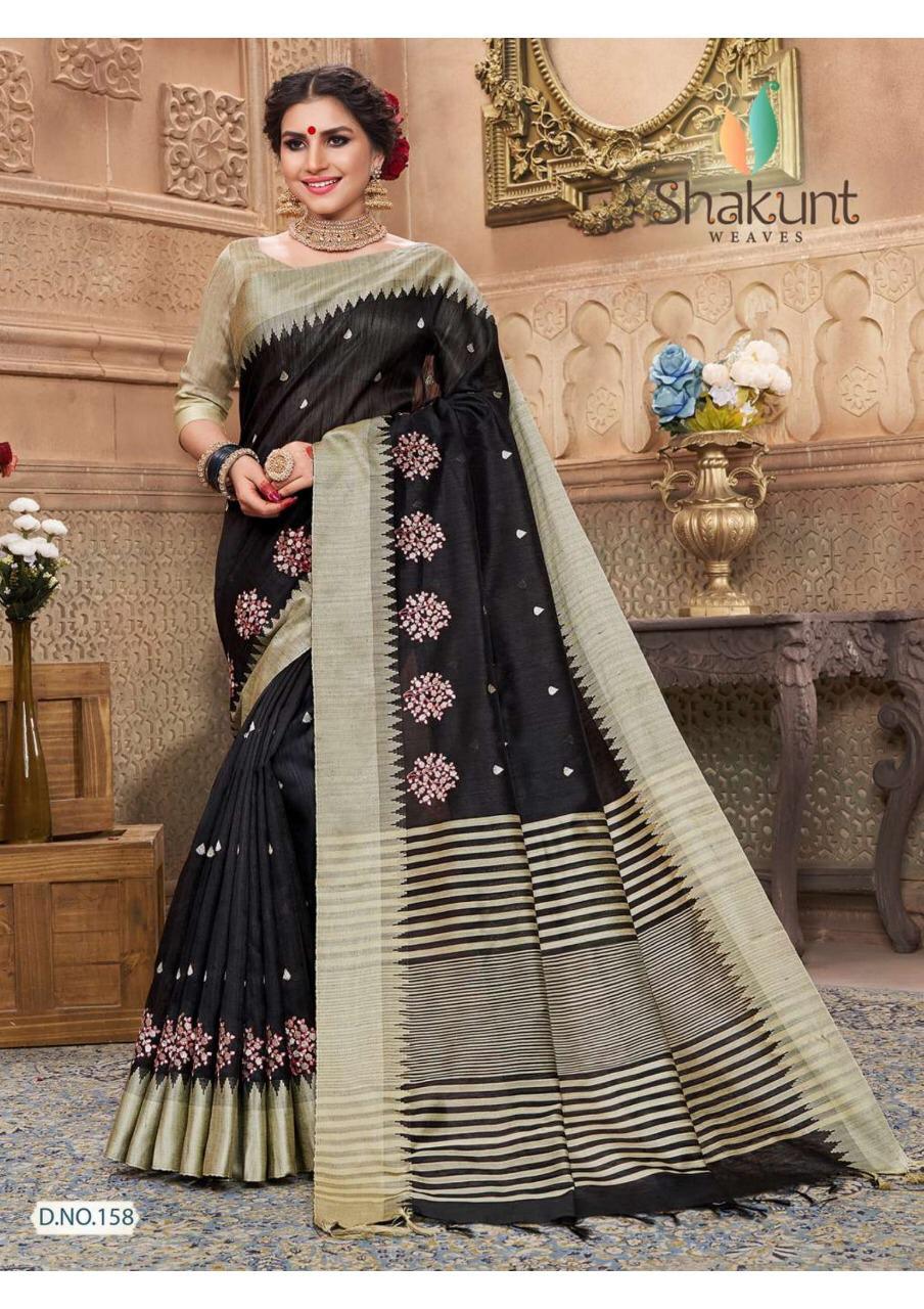 Brand - SHAKUNT. Catlog name - SAADHVI . Rate -904 per pcs . Fabric- Weavin silk Fabric. Set To Set . GST 5 Percent Extra. Delivery 2 days |