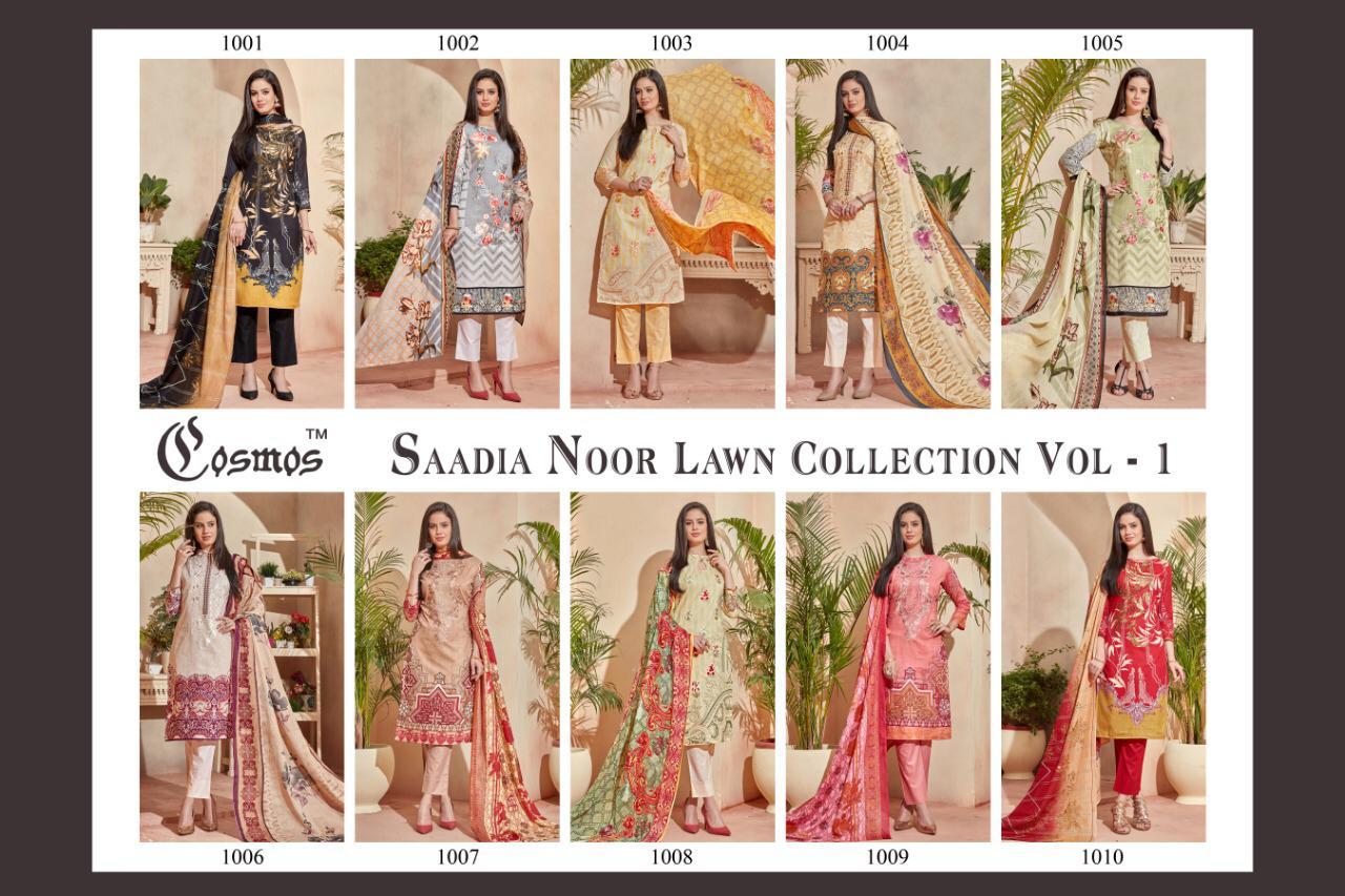 Saadia Noor Lawn Collection Vol 1 By Cosmos Lawn Cotton Printed With Self Embroidery Pakistani Suits Wholesale Supplier Gujarat