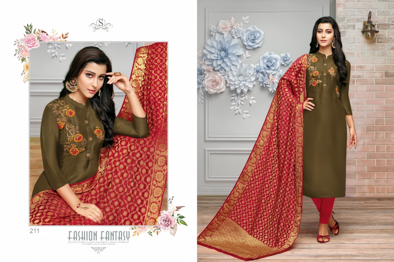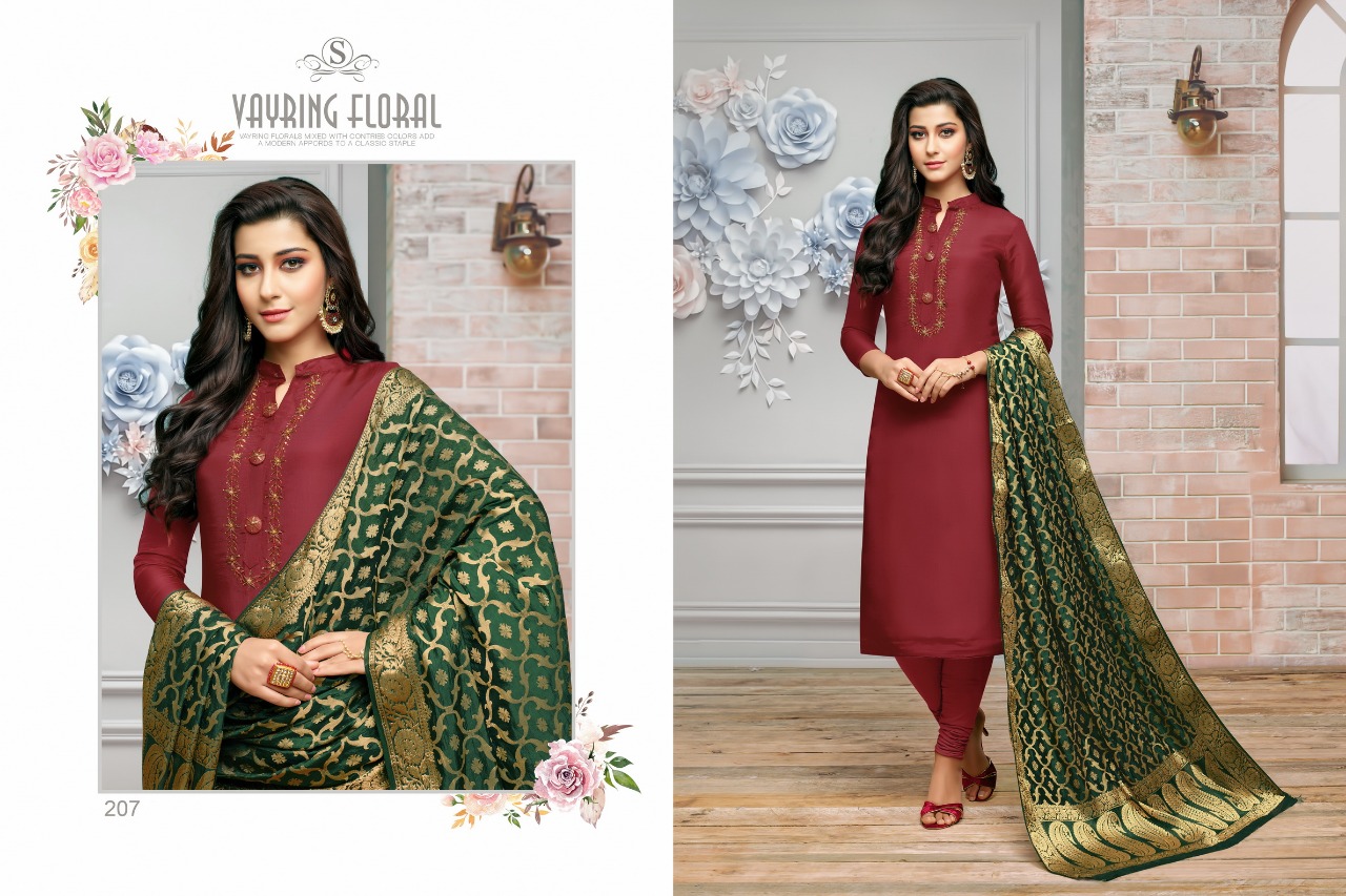 *(MAHI SILK CATALOGUE)* *Description* *?Name:-SAAHO*? *(Mahi silk)* *?Top:- mahi silk with Embrodery work* *?Bottom:-dull sntoon* *?Dupatta:- Banarsi * ? *Design:- 6pcs* ? *Rate:- 850/-* Set to set *Regards* *SAMAIRA FASHION* SURAT |