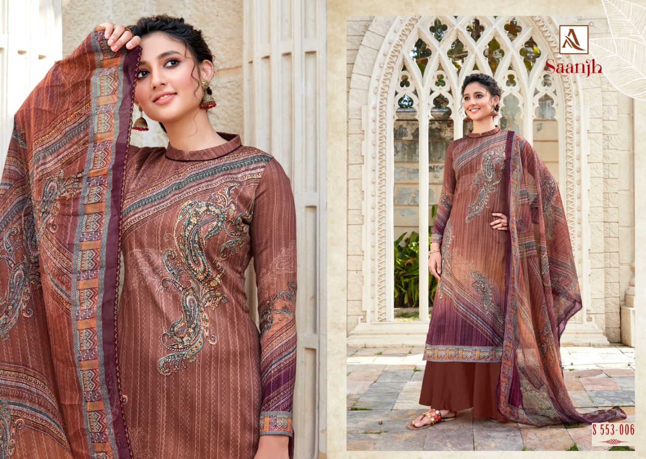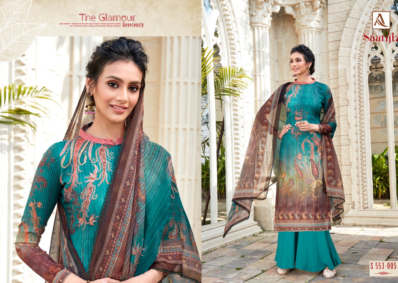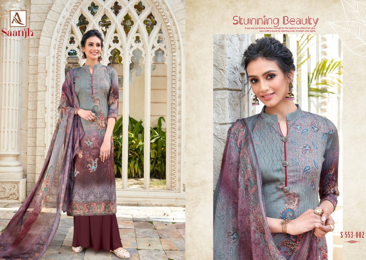 Buy Online Saanjh By Alok Suit Single Available Manufacturer And Exporter Surat 10 Pcs of Full Catalogue at Wholesale Price. Looking for Saanjh By Alok Suit Single Available Manufacturer And Exporter Surat Full Catalouge at Best Price? Buy Now Saanjh By Alok Suit Single Available Manufacturer And Exporter Surat at Wholesale Rate of Rs 5990 with Total 10 Pcs from authroized dealer and supplier of Brand. Cost of Each piece is just only Rs 599 which is very low and affordable price to resale the product in your retail store ,This is Surat based Wholesale Supplier & Dealer of Brand. Click on Brand name to Know more about Brand's products.Call or Whatsapp on 9898838984 for booking or enquiry